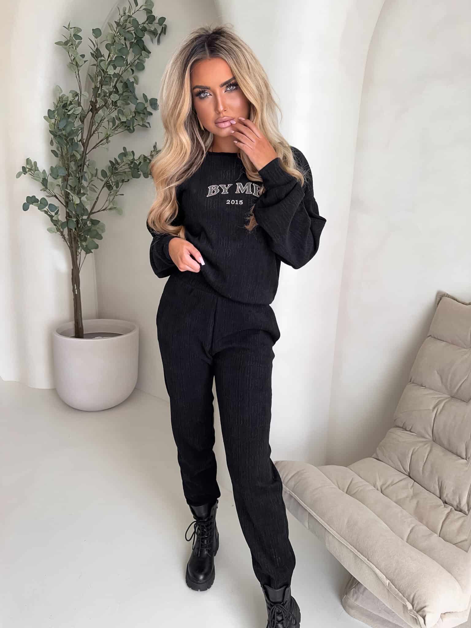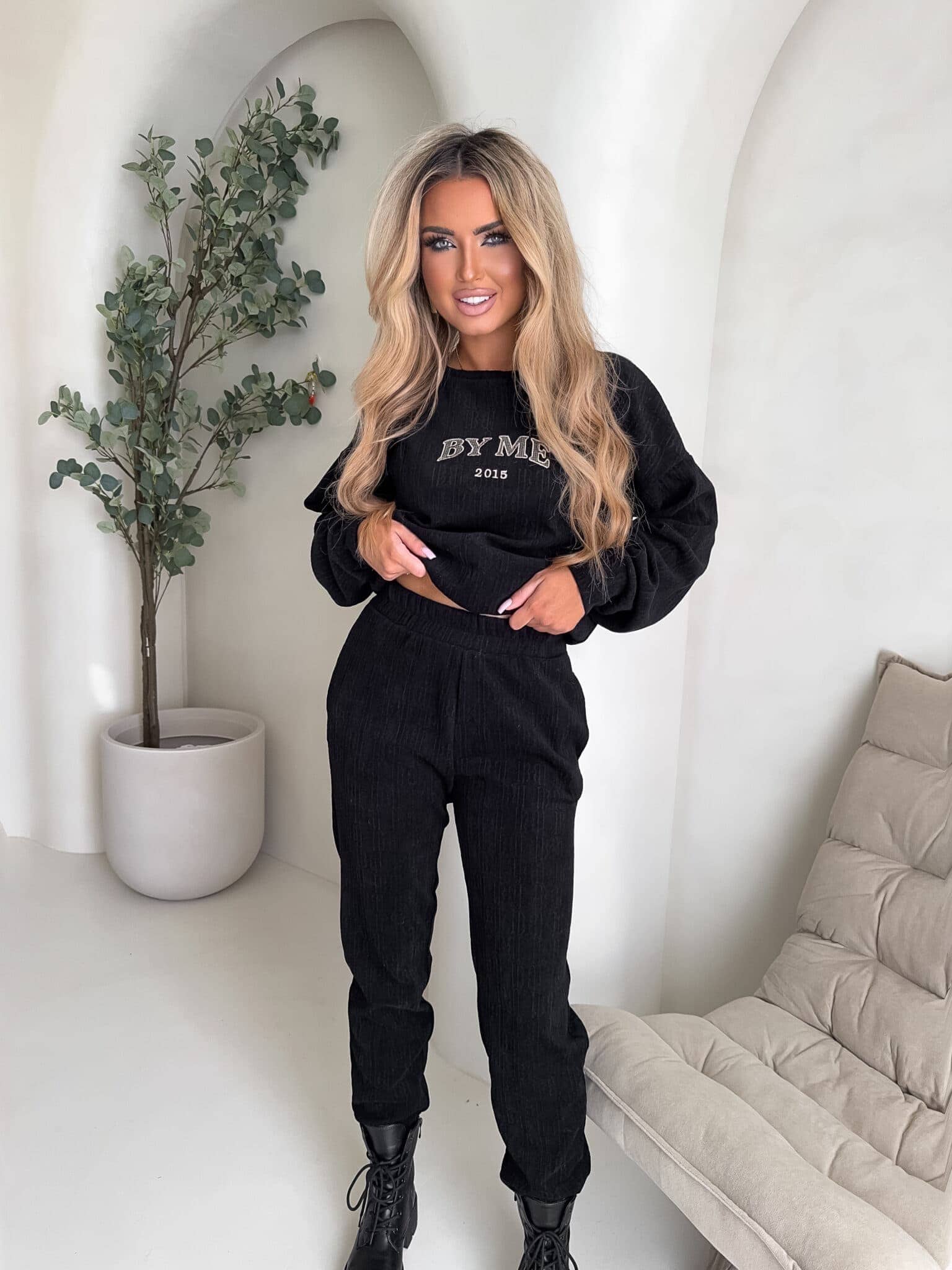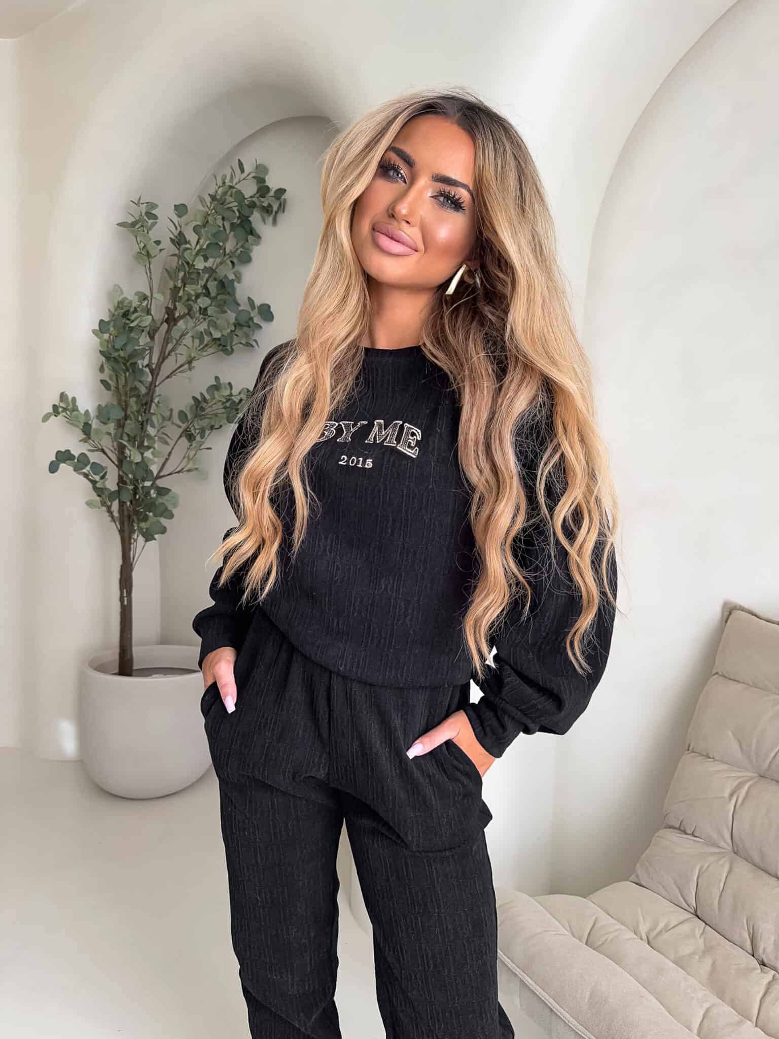 Komplet BARIO składający się z bluzy o luźnym kroju, z długim rękawem. Spodnie mają gumki na nogawkach i w pasie oraz dwie wbudowane kieszenie. Z logowaniem na bluzie.