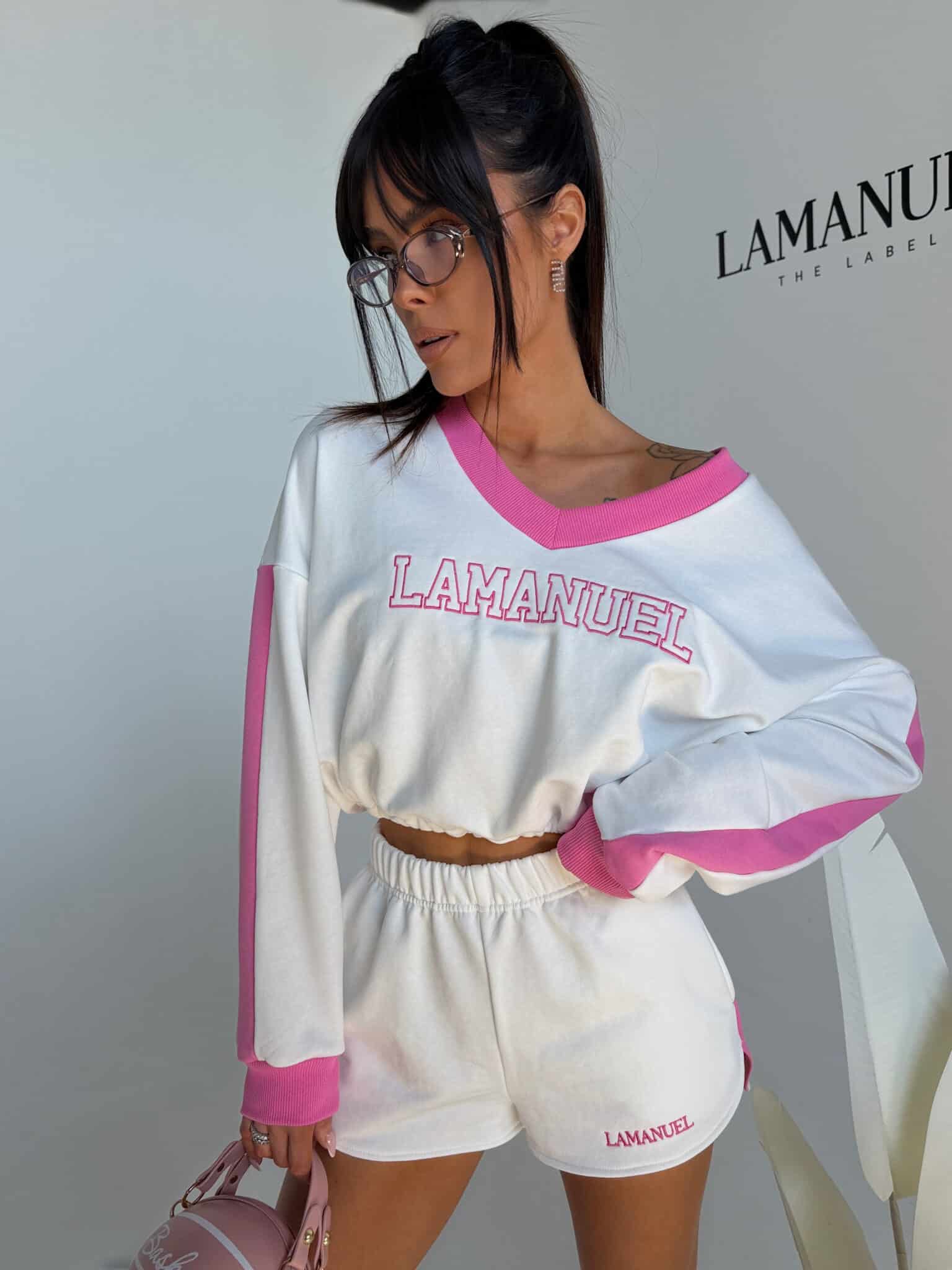 Swobodny komplet w nowoczesnym, sportowym klimacie. Góra o luźnej formie daje naturalny luz, a możliwość regulacji pozwala zmienić jej charakter i lekko zaznaczyć sylwetkę. Asymetrycznie układający się dekolt przyciąga uwagę i dodaje stylizacji subtelnej lekkości. Kontrastowe detale przełamują prostotę i nadają całości wyrazistości. Szorty z miękką, elastyczną talią zapewniają wygodę przez cały dzień, jednocześnie zachowując estetyczny, dopracowany wygląd. Idealna propozycja na codzienny look z charakterem.Skład: 90% bawełna 10% poliester