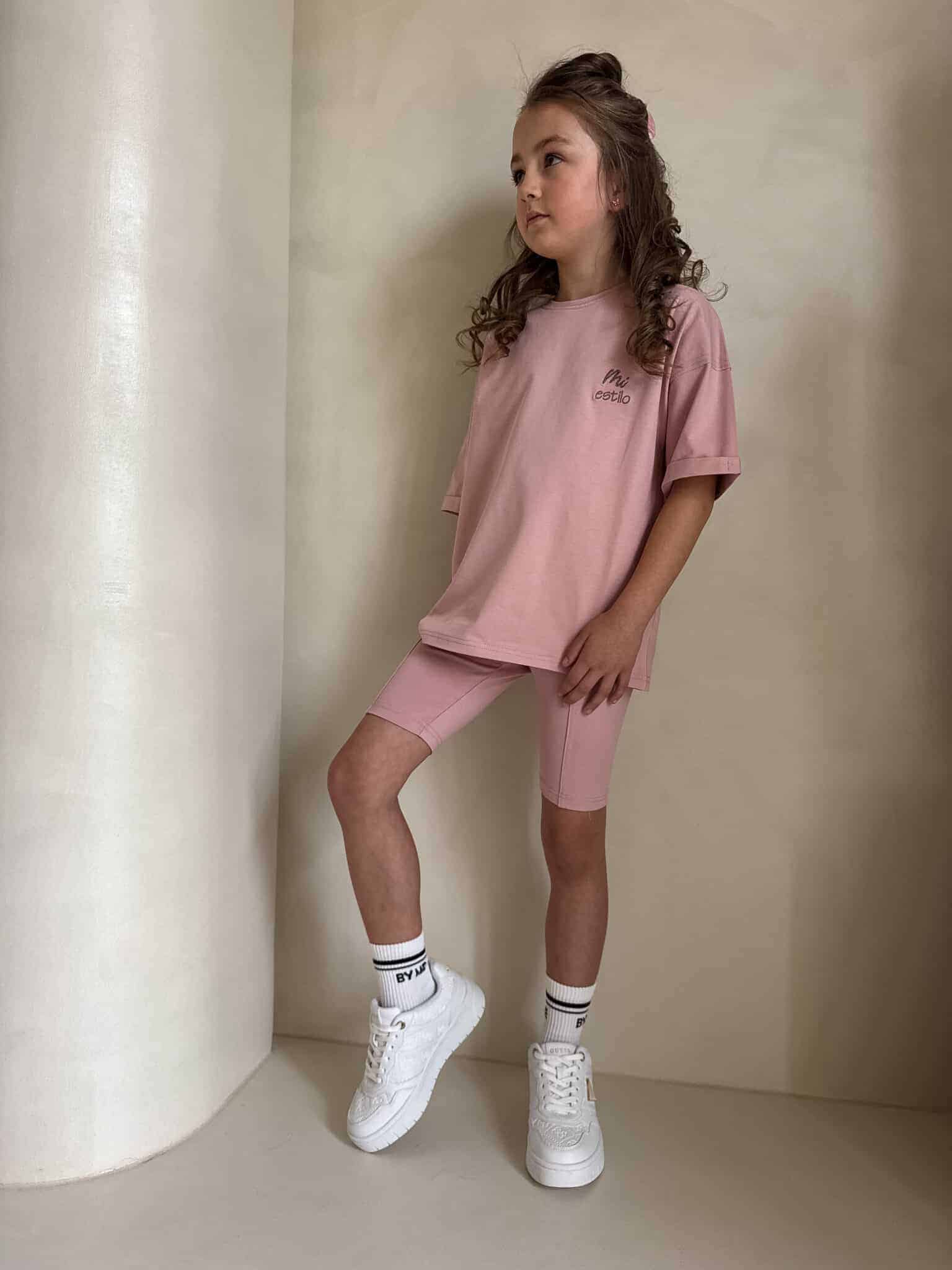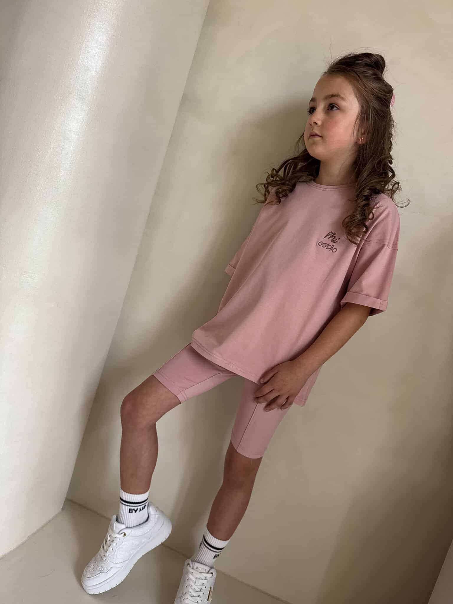 Wygodny i stylowy komplet dziecięcy, idealny na co dzień! W skład zestawu wchodzi bluzka z krótkim rękawem oraz kolarki. Miękki, przyjemny w dotyku materiał zapewnia komfort noszenia. Świetny wybór – do szkoły, na spacer czy zabawę!