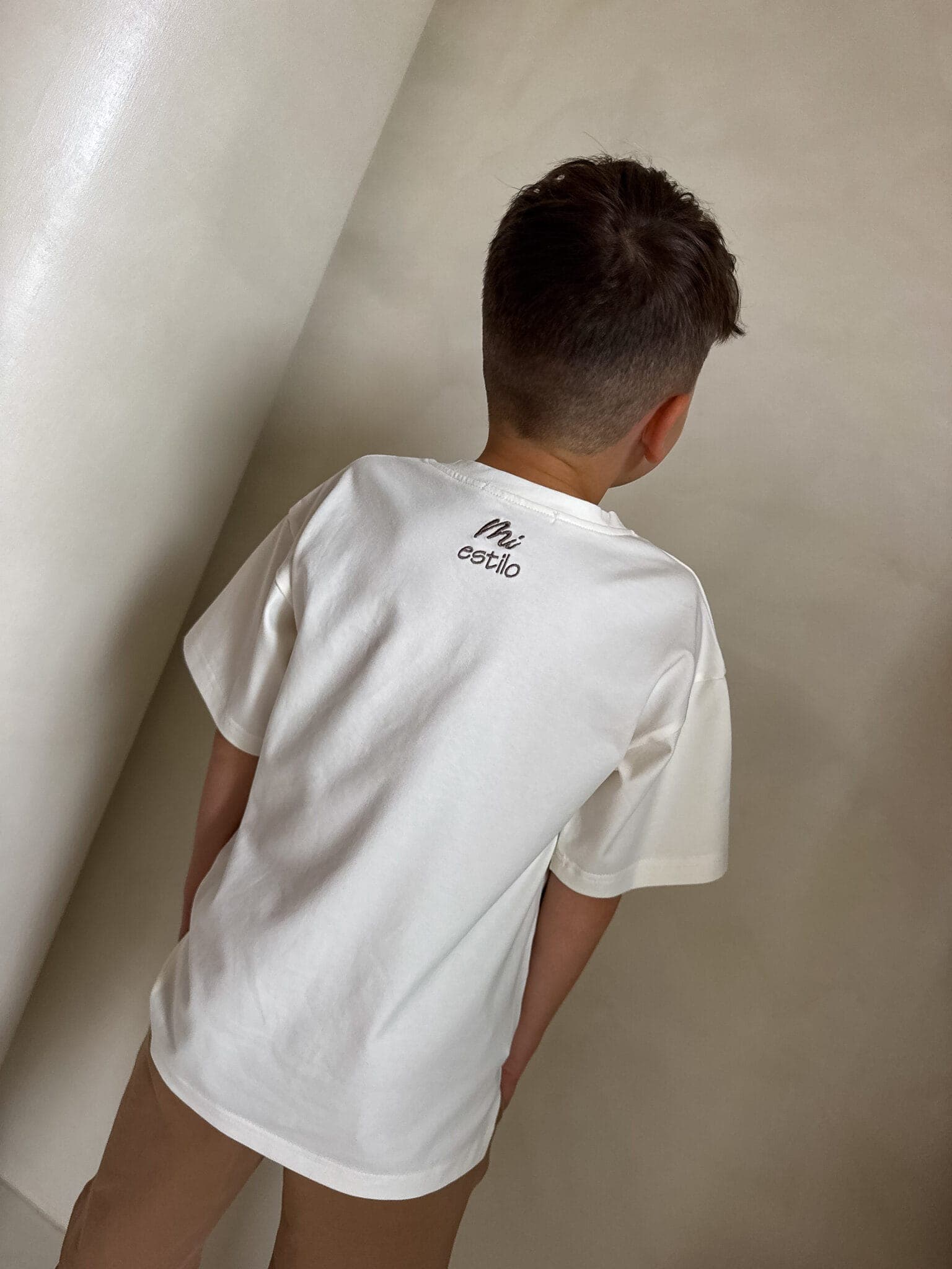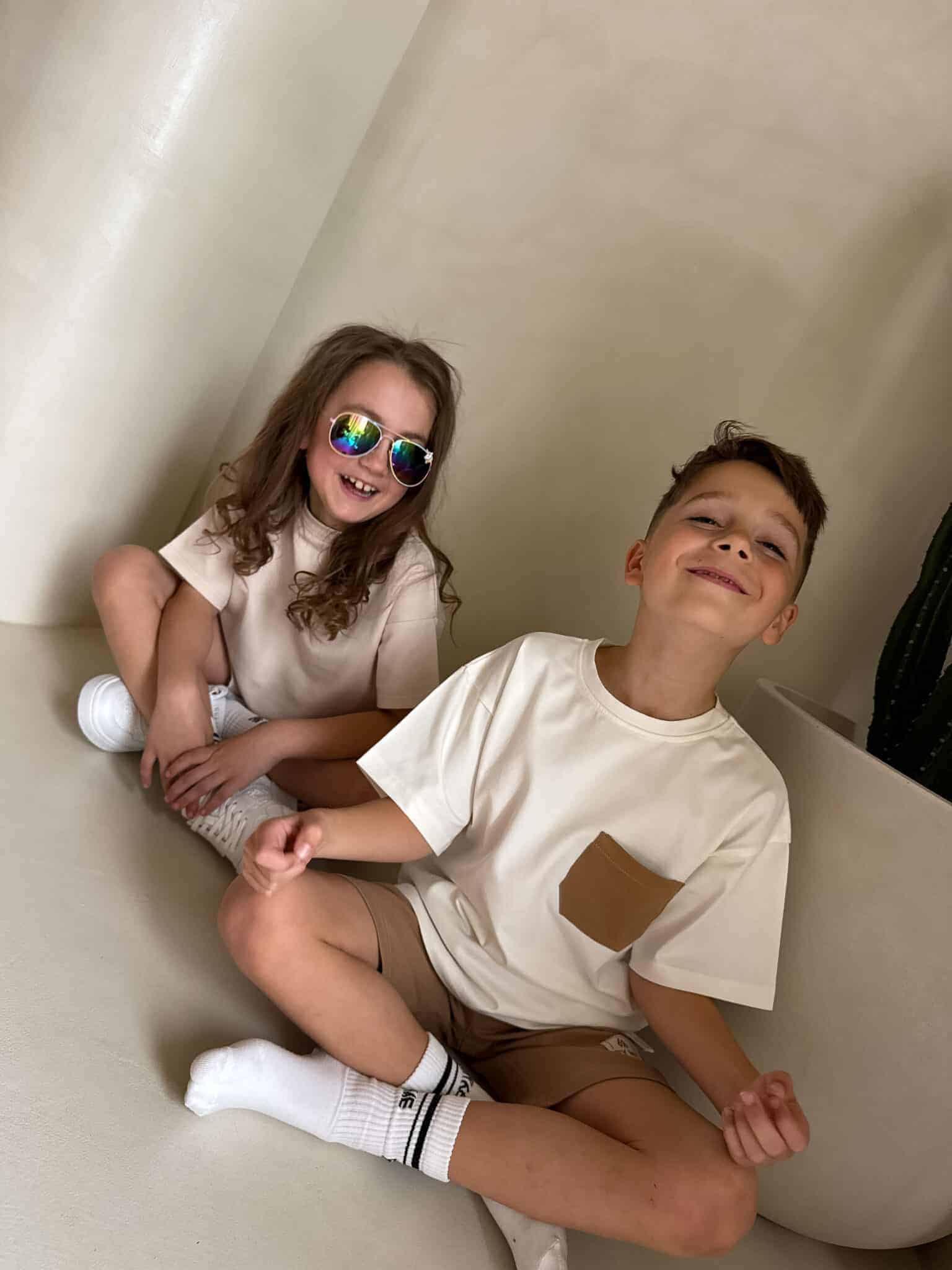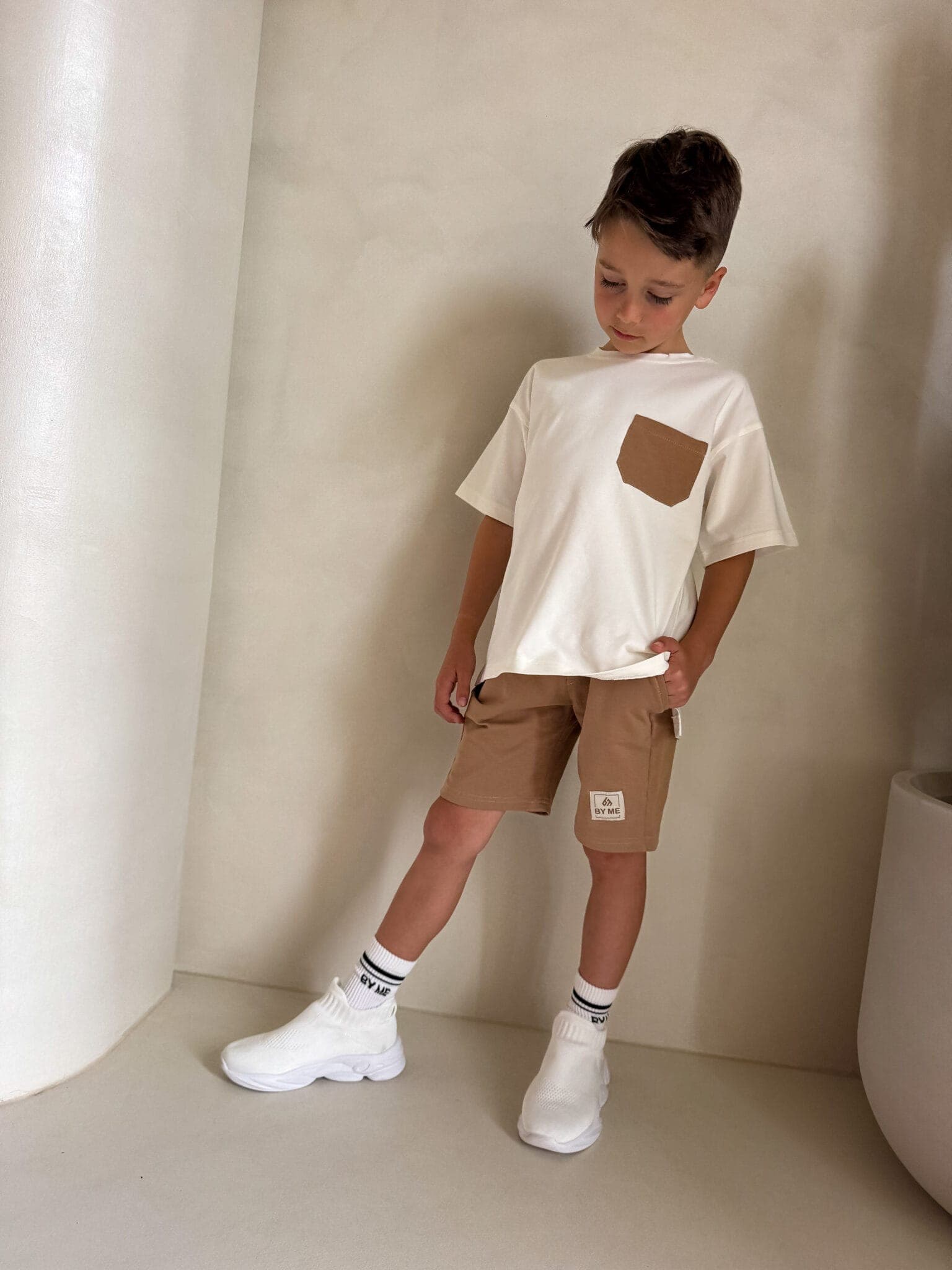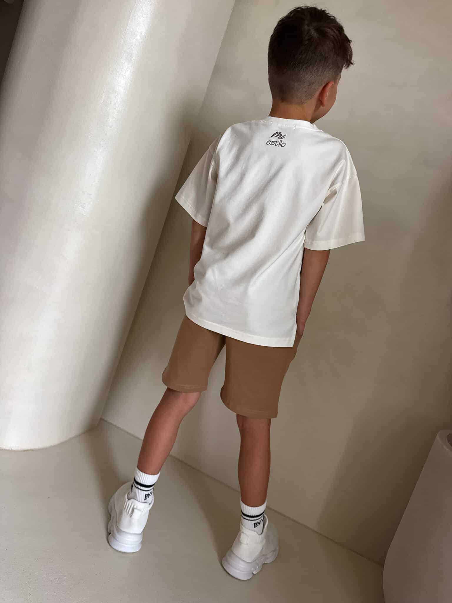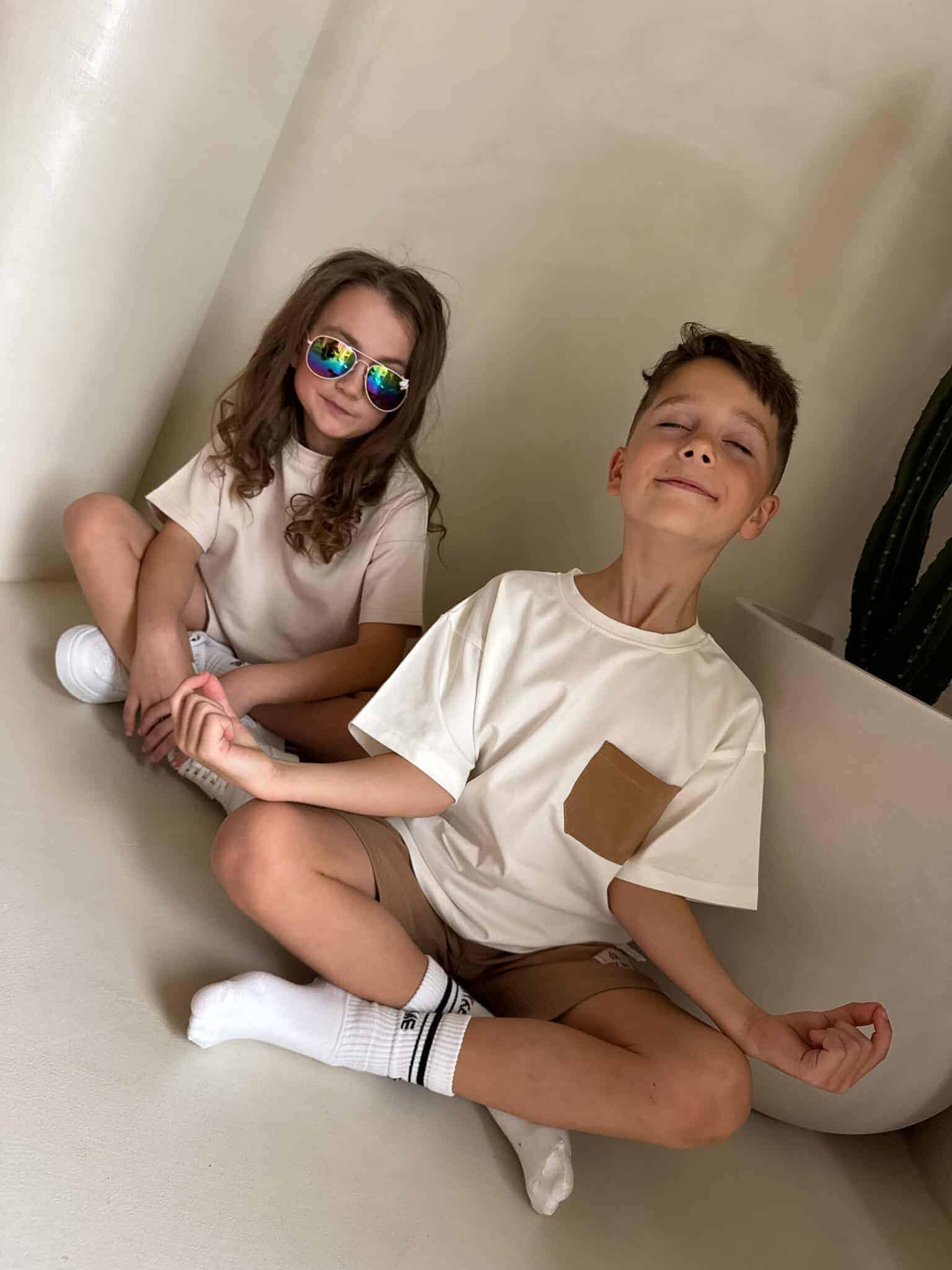 Wygodny i stylowy komplet dziecięcy, idealny na co dzień! W skład zestawu wchodzi bluzka z krótkim rękawem oraz krótkie spodenki. Miękki, przyjemny w dotyku materiał zapewnia komfort noszenia. Świetny wybór – do szkoły, na spacer czy zabawę!