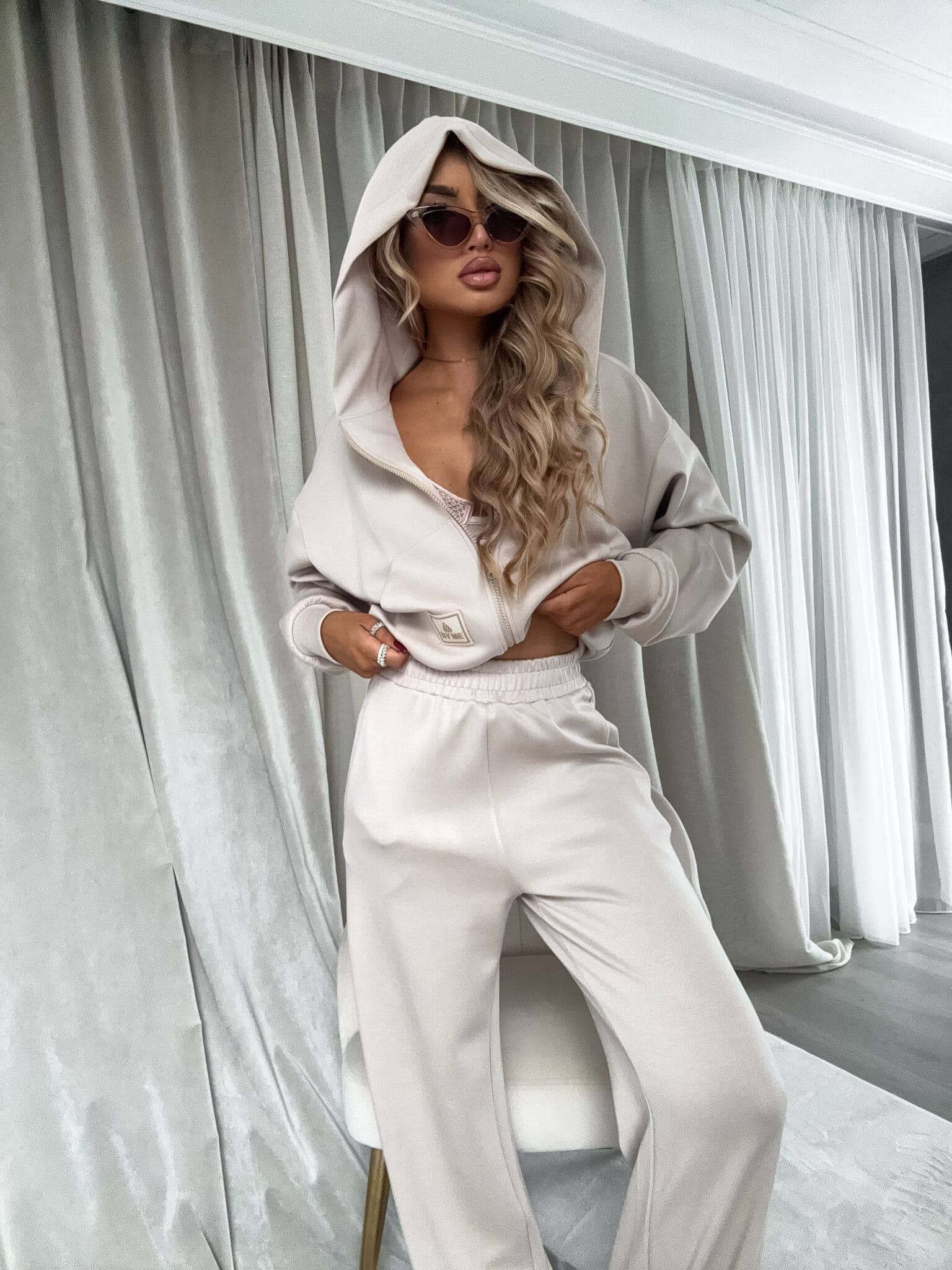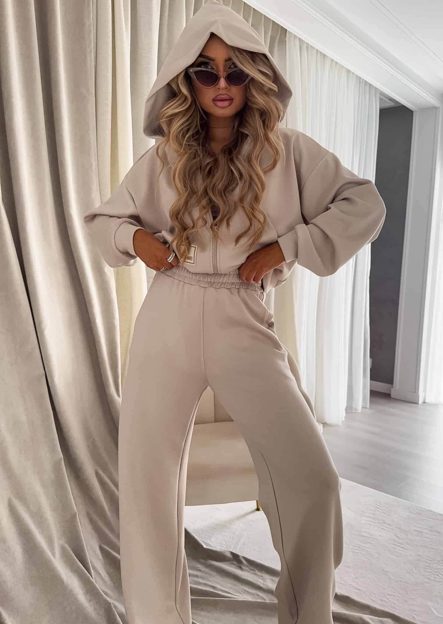 Wygodny komplet dresowy składający się z bluzy i spodni. Bluza zapinana na zamek, z długimi rękawami i lekkim, oversize’owym krojem. Wyposażona w praktyczny kaptur oraz logowaną naszywkę na przodzie, która dodaje charakteru i podkreśla stylowy detal.