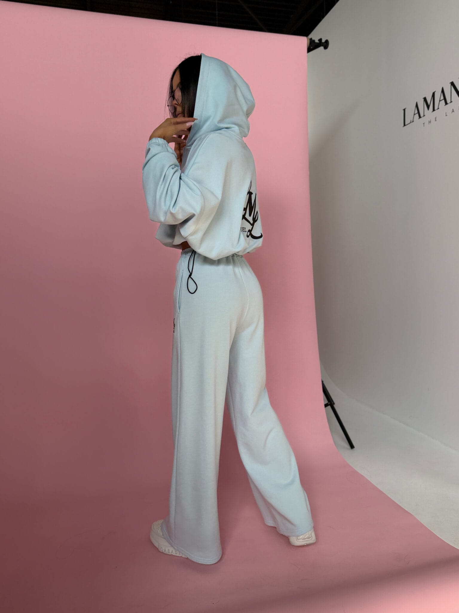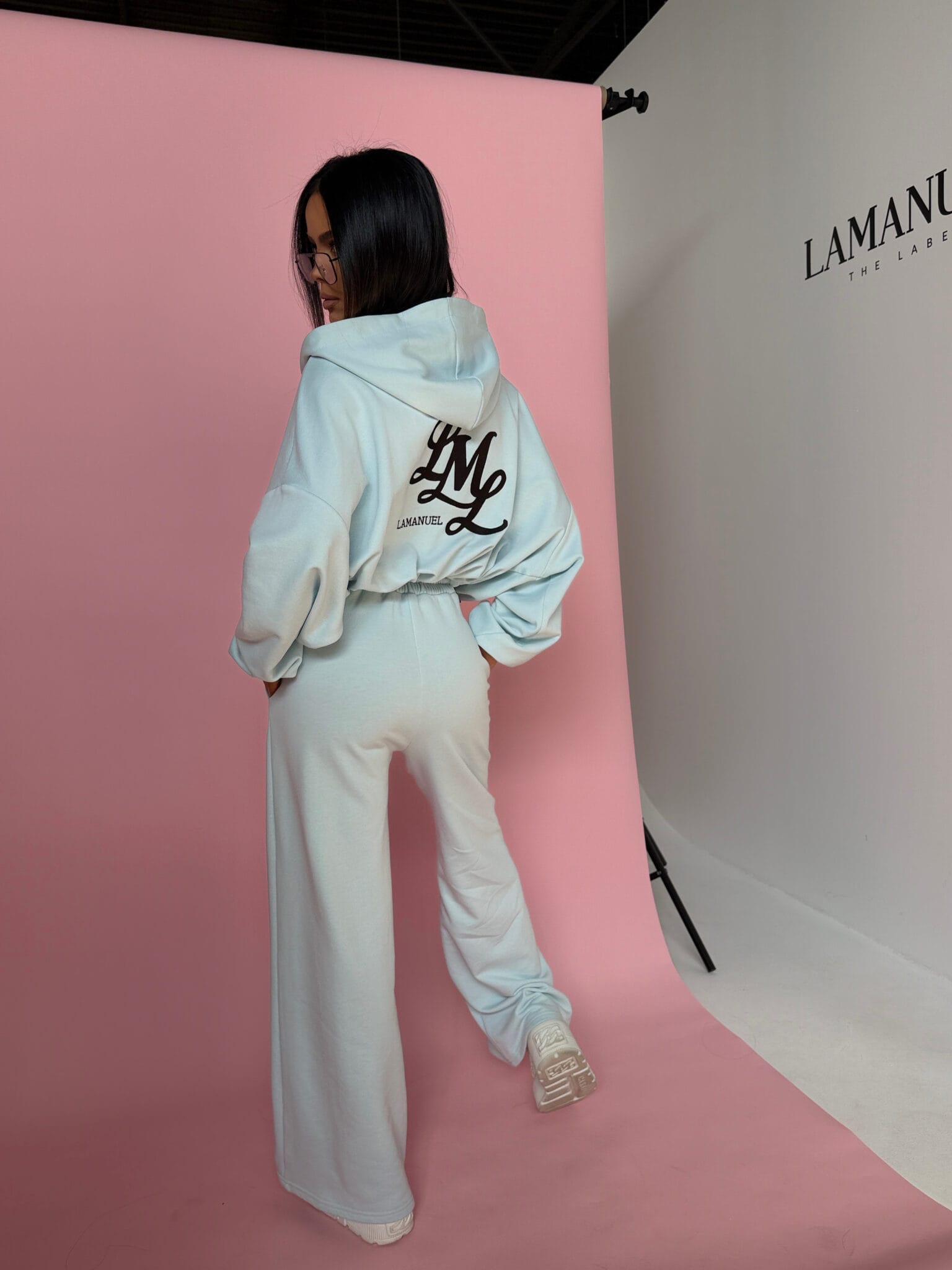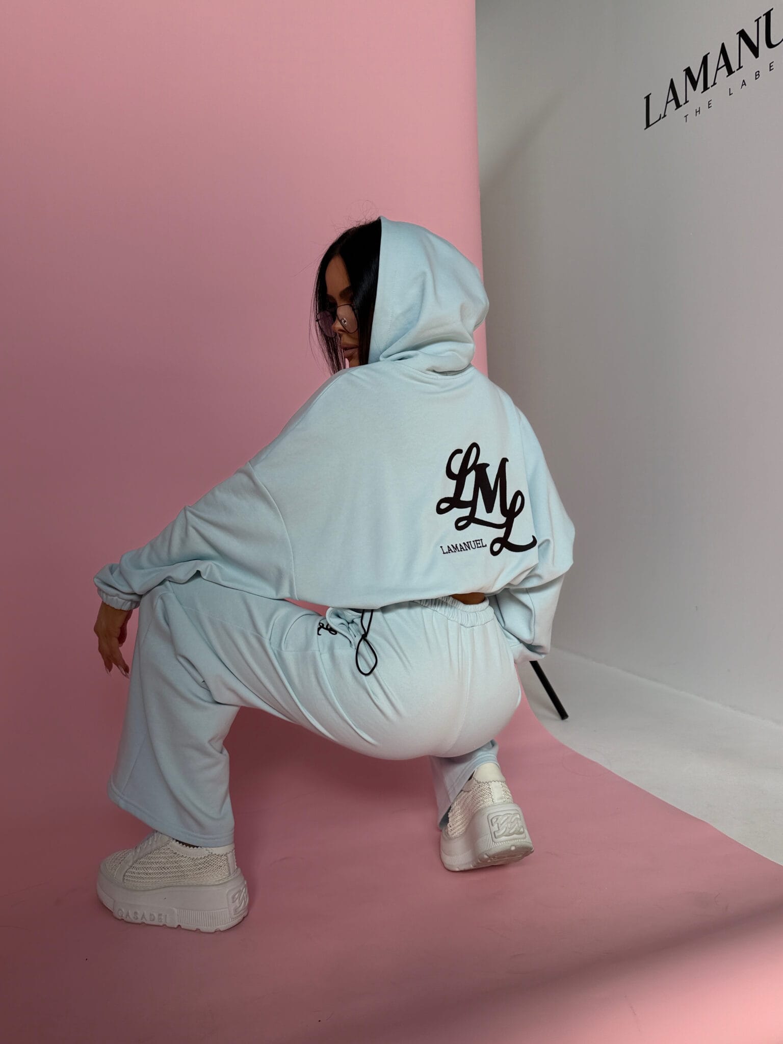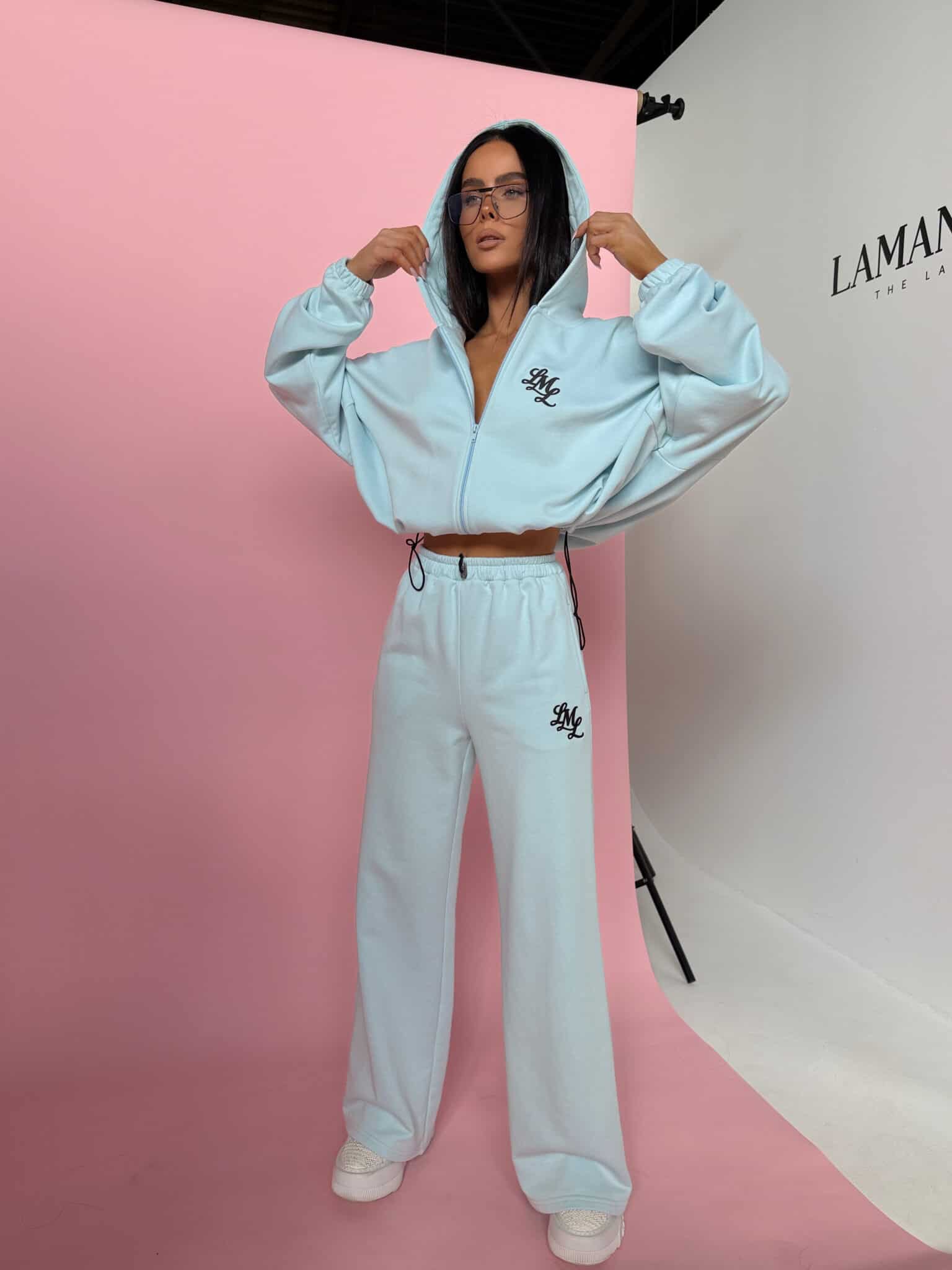 Komplet dresowy o luźnym, oversize’owym kroju. Bluza z kapturem zapinana na zamek, z obniżoną linią ramion i regulacją dołu, która pozwala dopasować fason. Spodnie z szeroką nogawką, gumą w pasie i swobodnym krojem, który dobrze układa się na sylwetce. Na przodzie subtelne haftowane logo, na plecach duży, wyrazisty nadruk. Model tworzy spójny, nowoczesny look idealny do codziennych stylizacji i kompletów.Skład: 90% bawełna 10% poliester