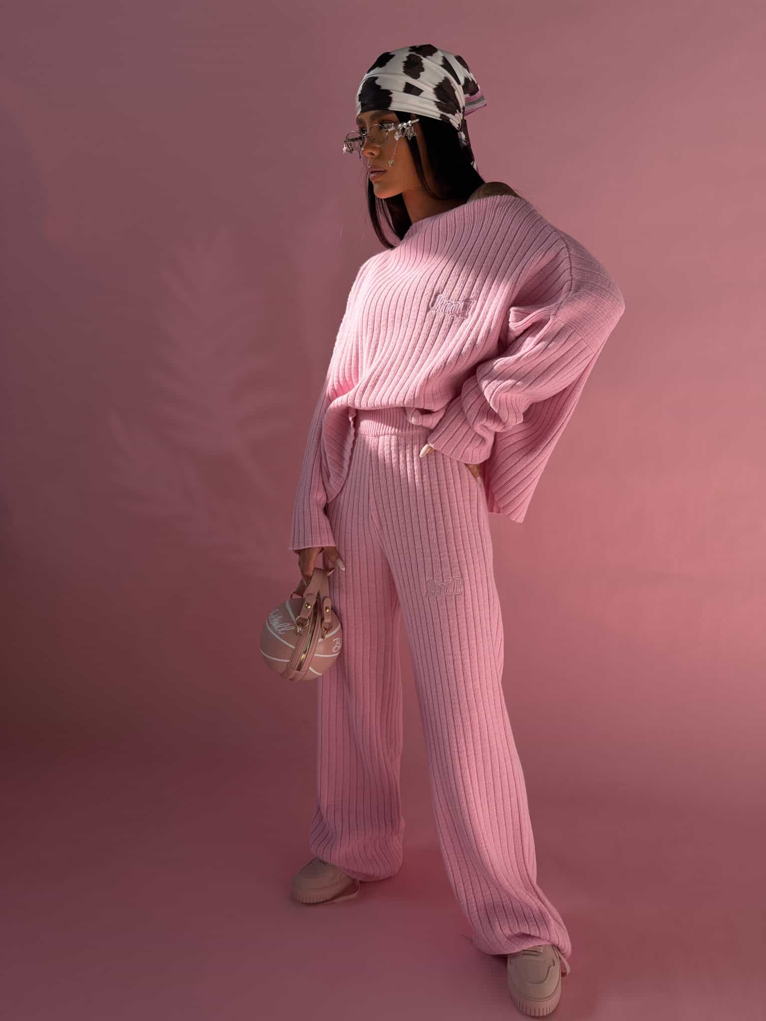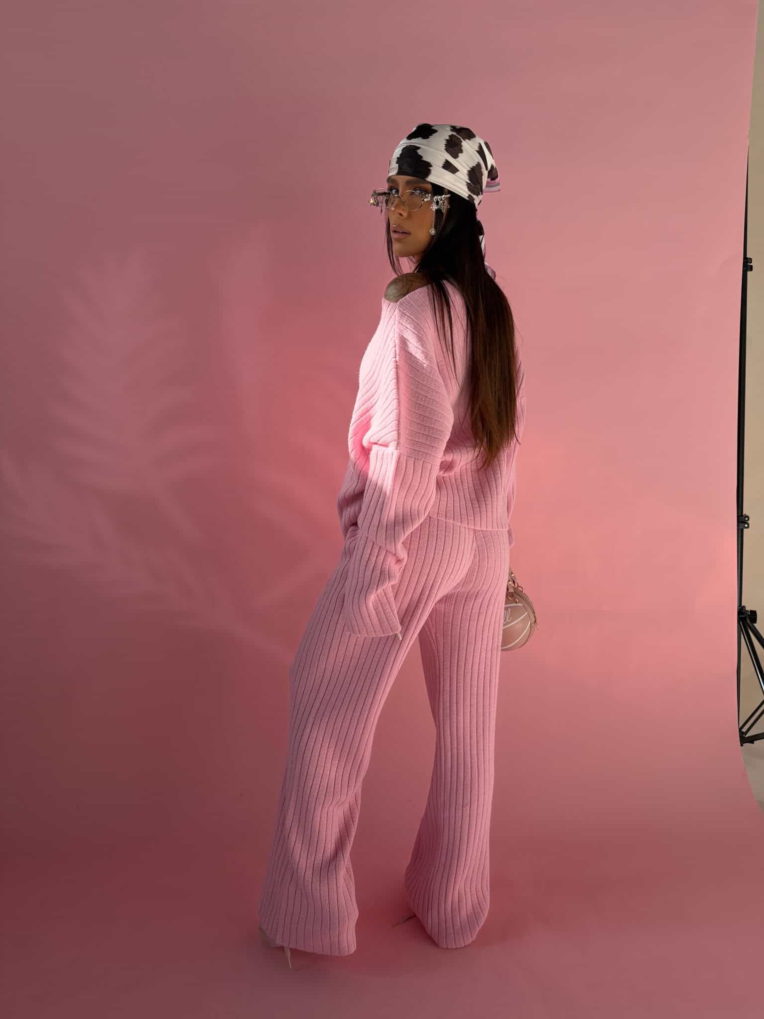 Nasz kultowy komplet wraca w nowych kolorach i z nowym haftem. Charakterystyczna prążkowana struktura pięknie buduje sylwetkę i nadaje całości wyrazistości. Dzianina jest miękka, sprężysta i otulająca, wygląda szlachetnie i trzyma formę. Sweter ma szeroką, mocną linię z obszernymi rękawami, które nadają mu modowego charakteru. Spodnie z wysokim stanem i prostą nogawką wydłużają proporcje i podkreślają talię. To model, który daje mocny, elegancki efekt bez przesady i dokładnie za to go kochacie.Skład: 85% akryl 15% nylon