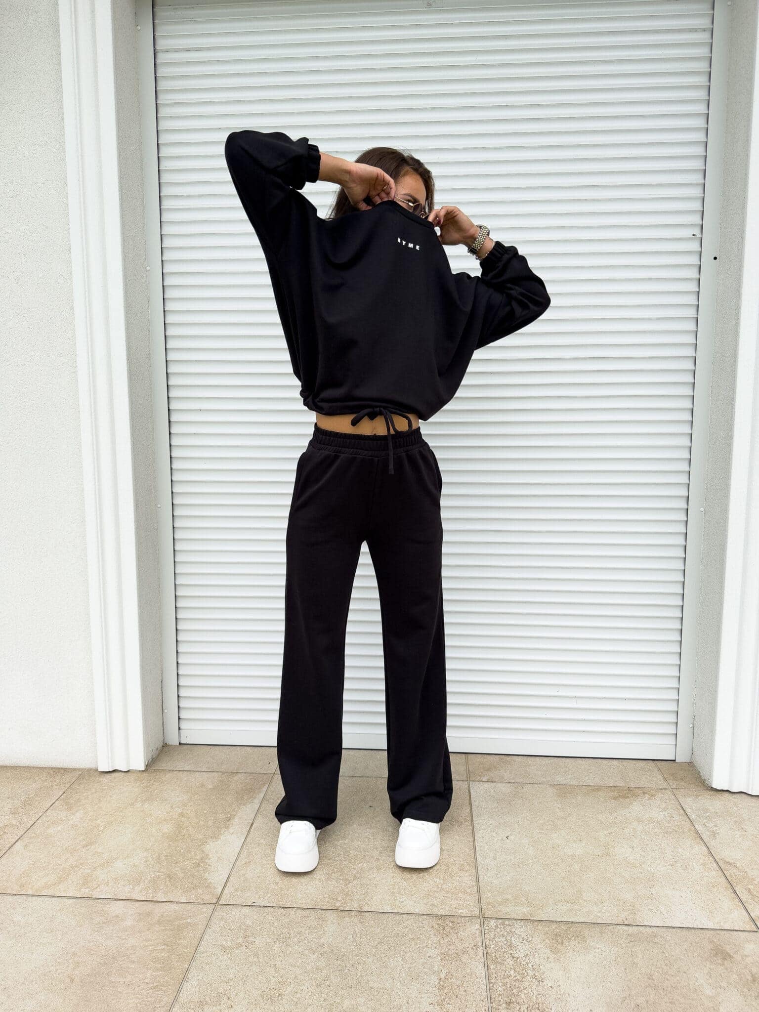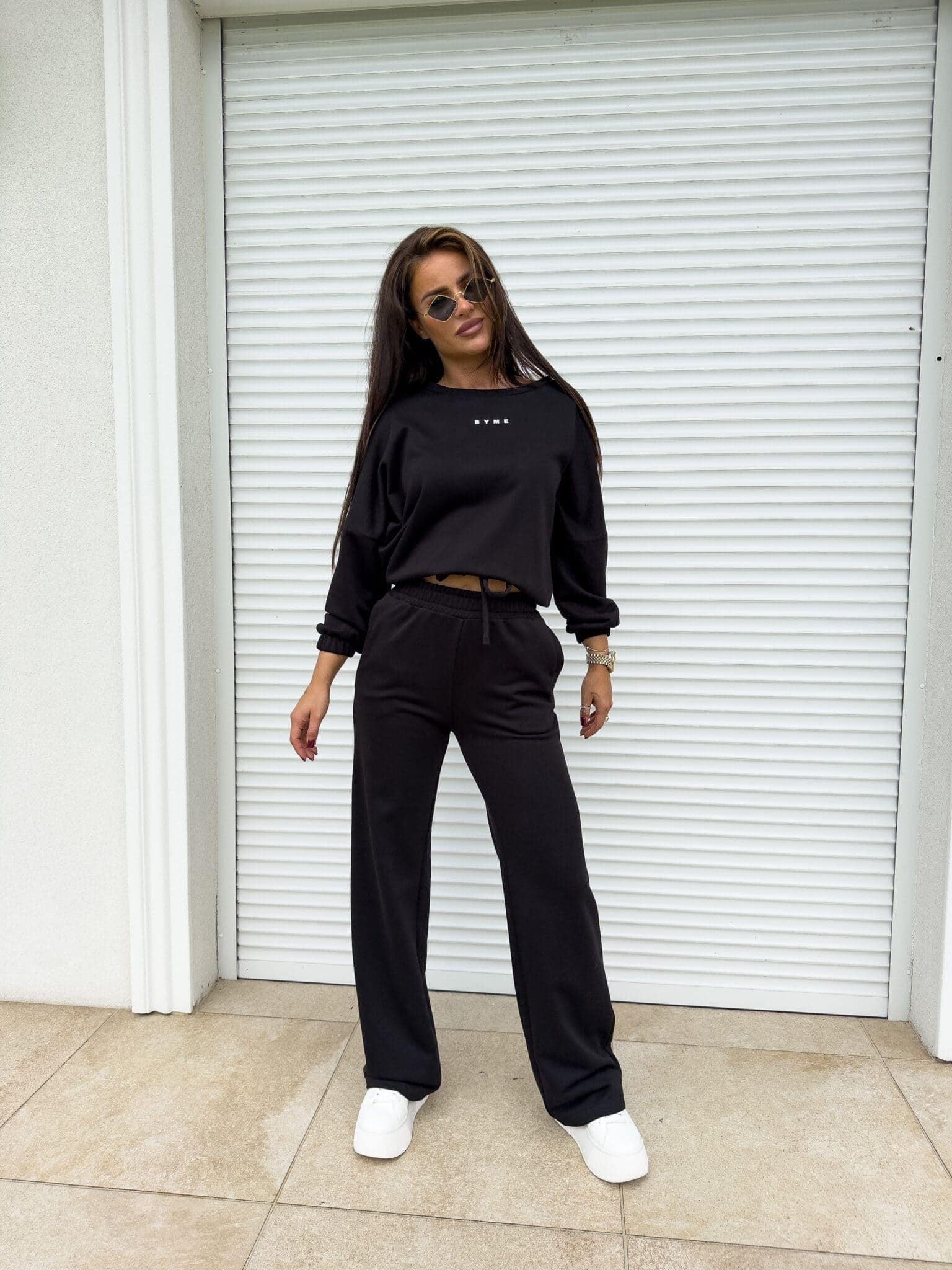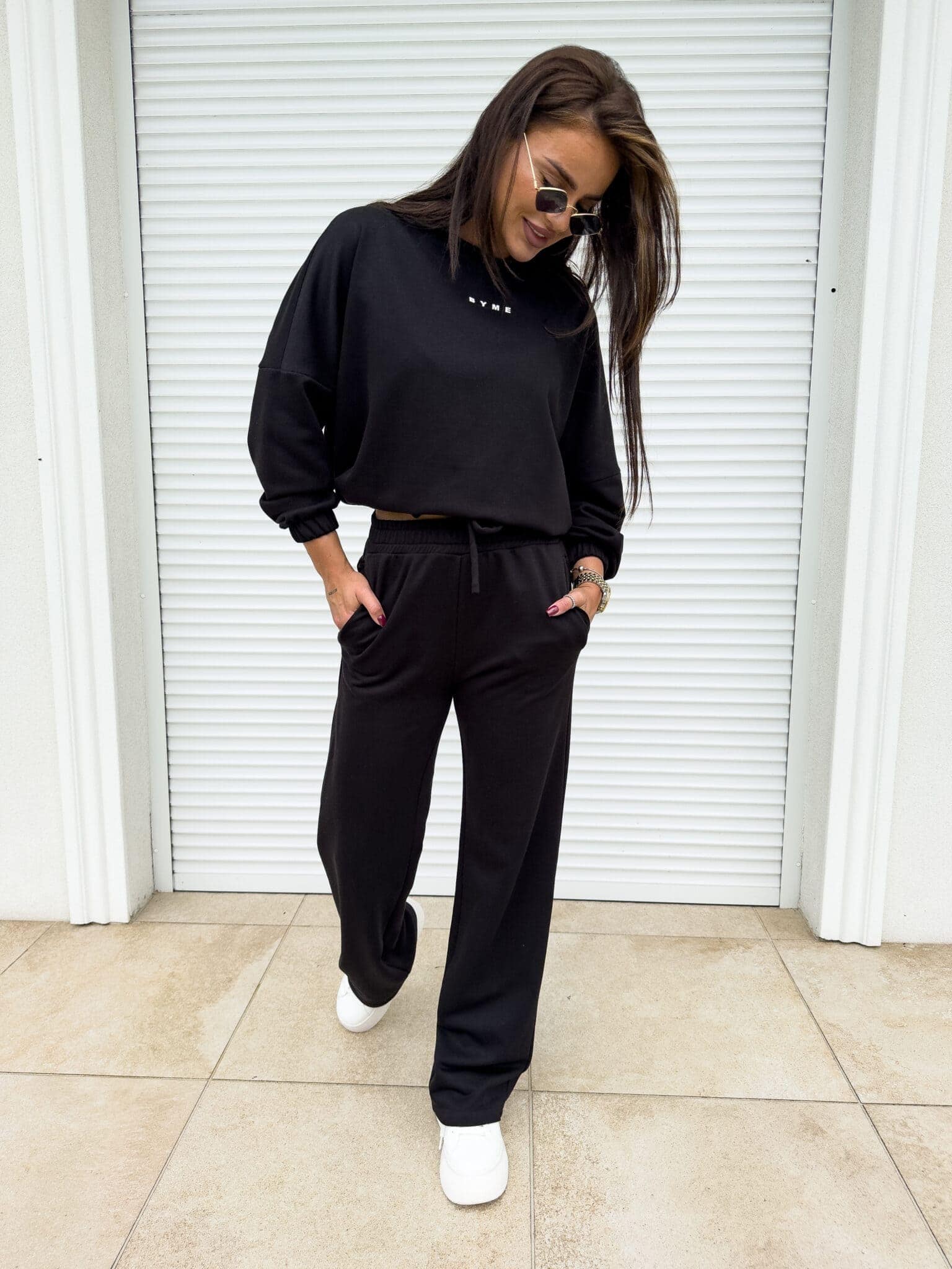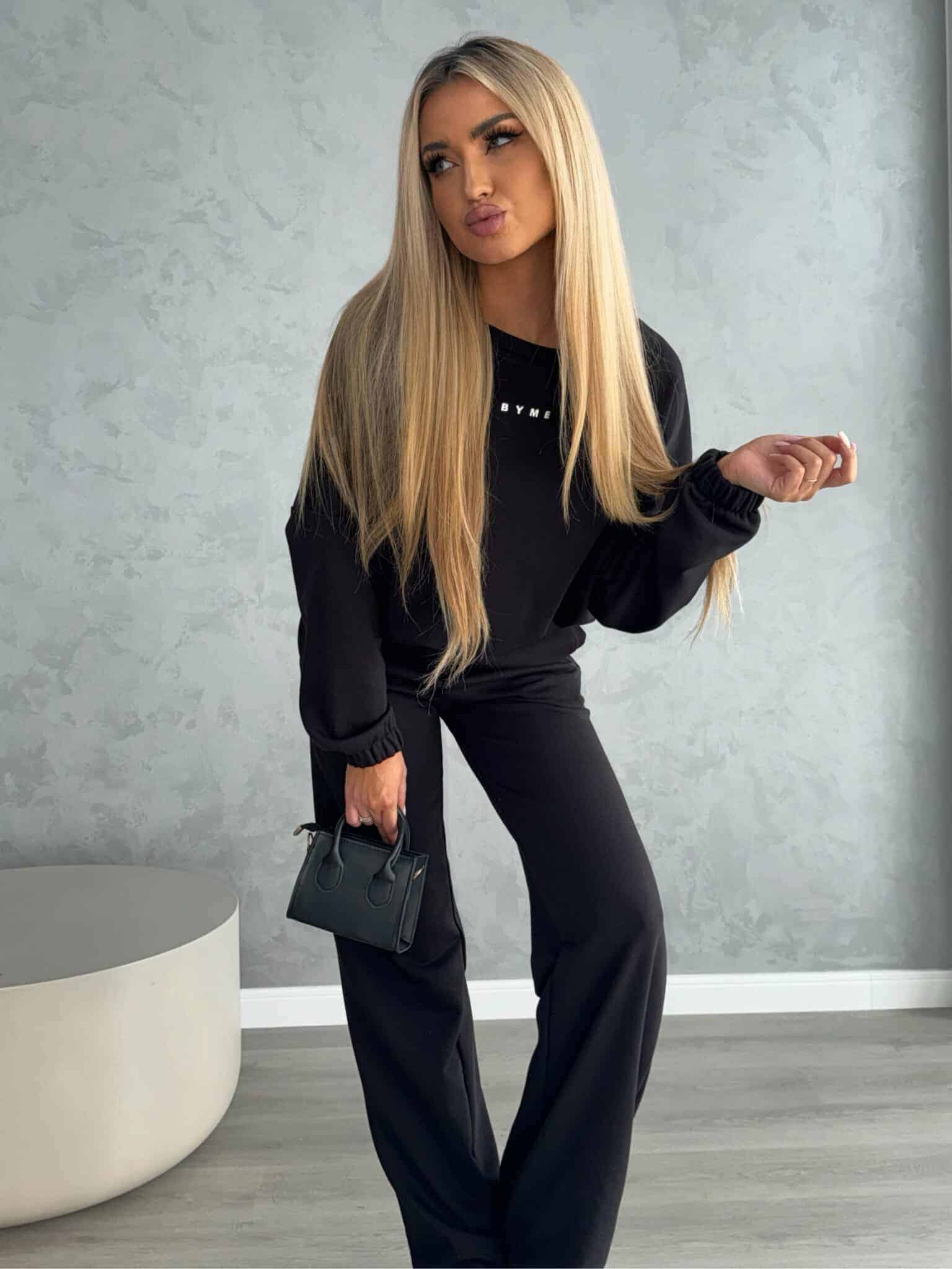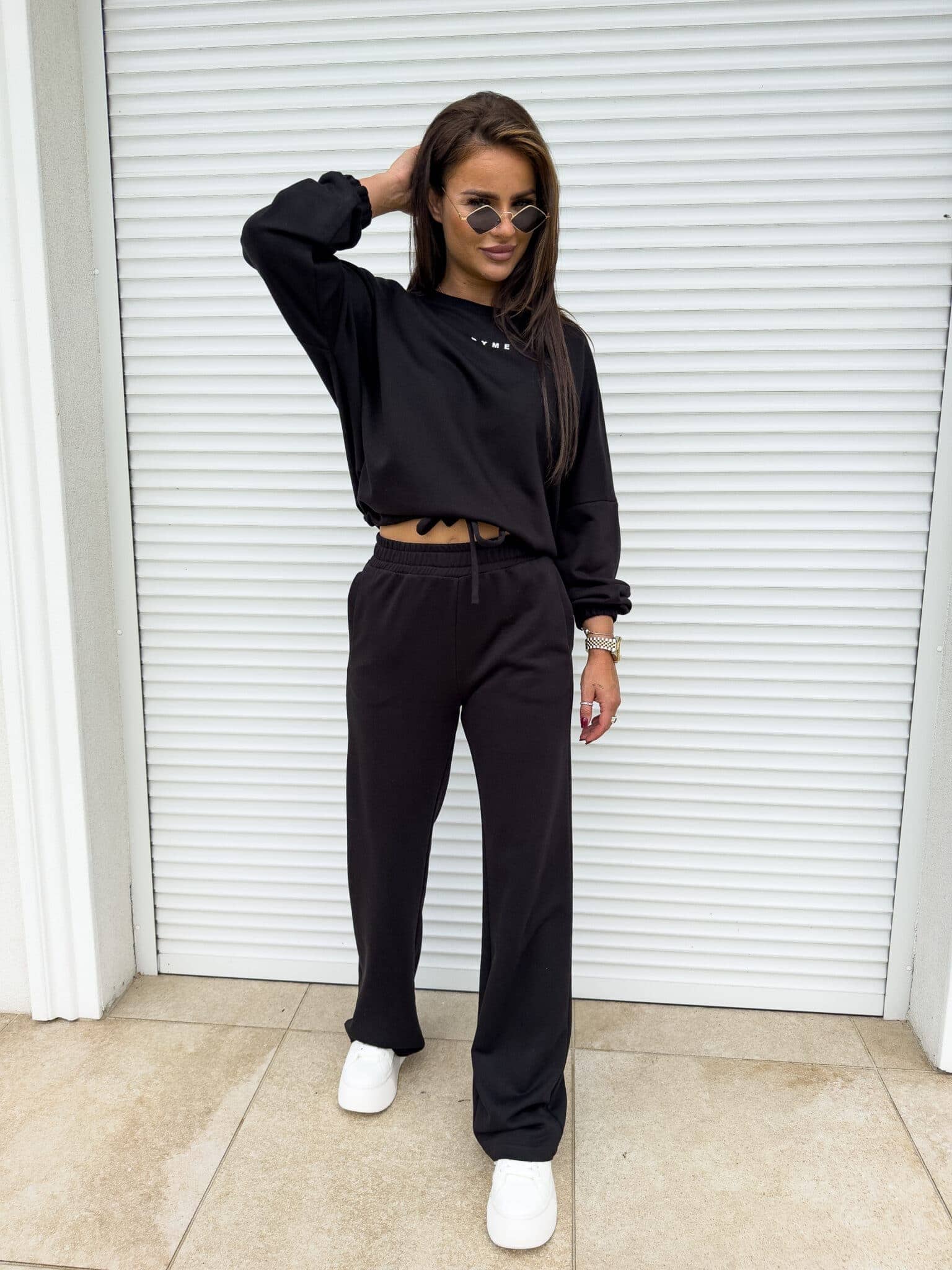 Komplet Sydney składający się z bluzy i spodni. Bluza o prostym, luźnym kroju, z długim rękawem zakończonym gumą. Szerokie spodnie z gumką w pasie