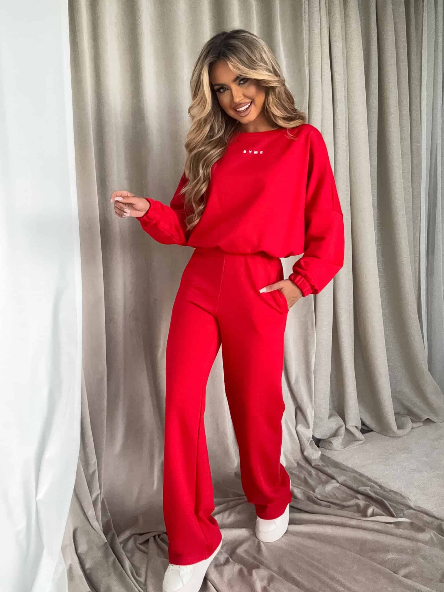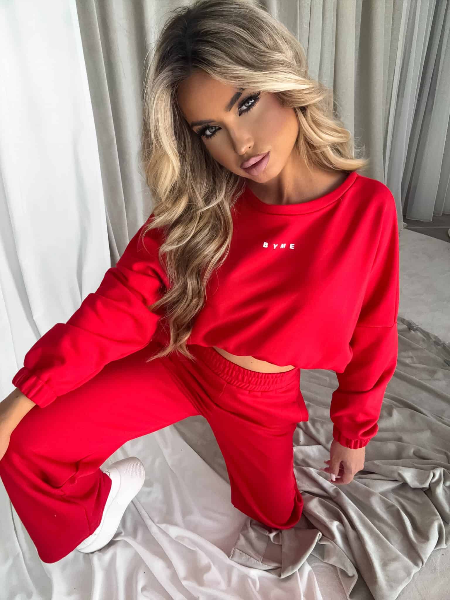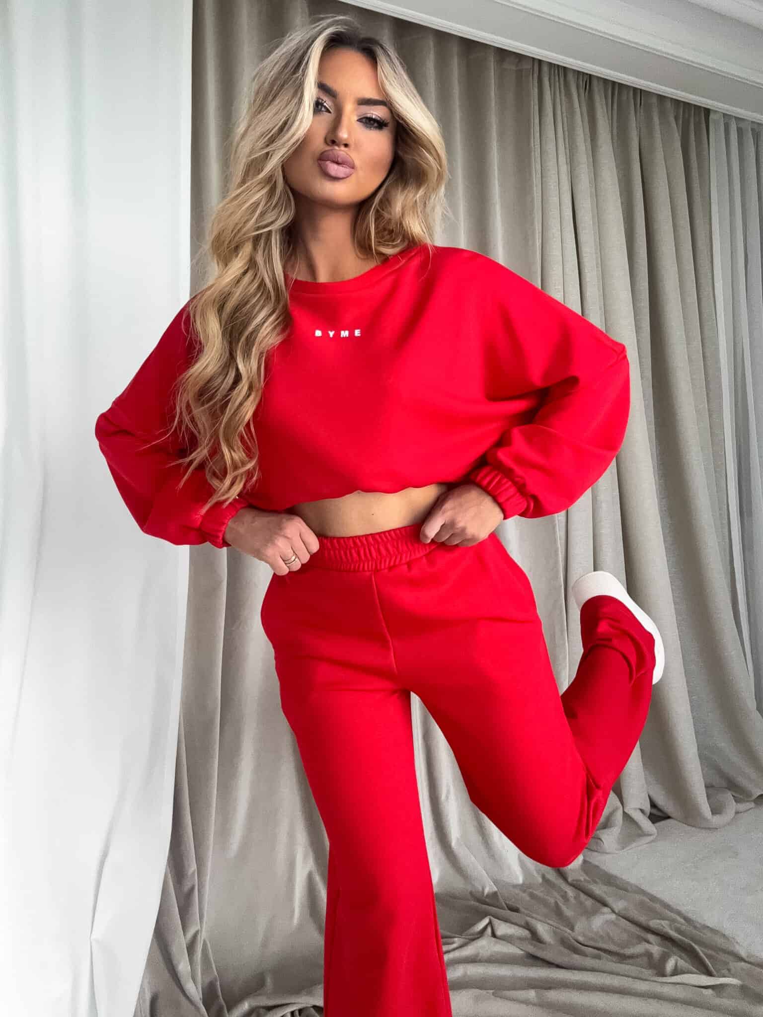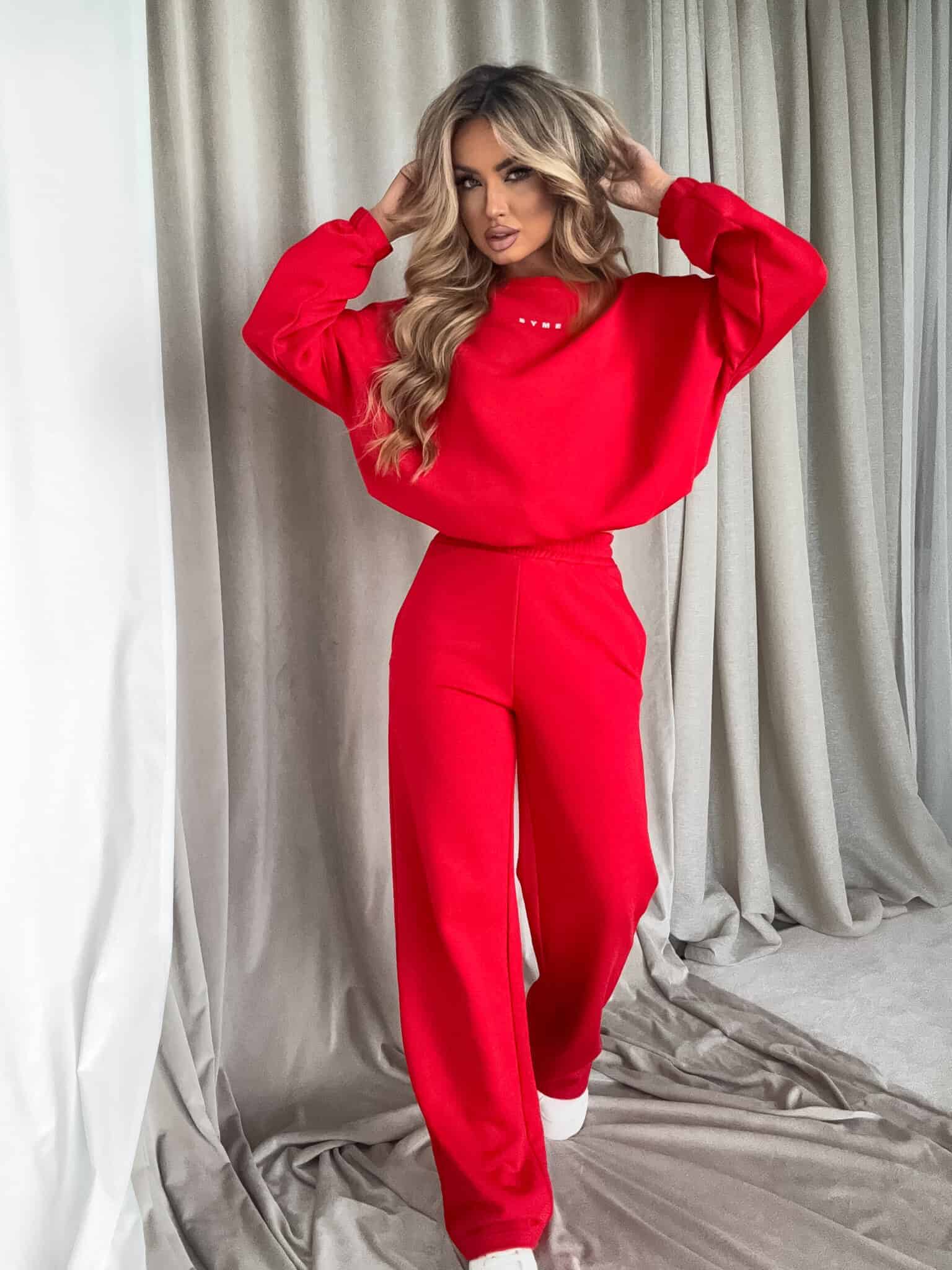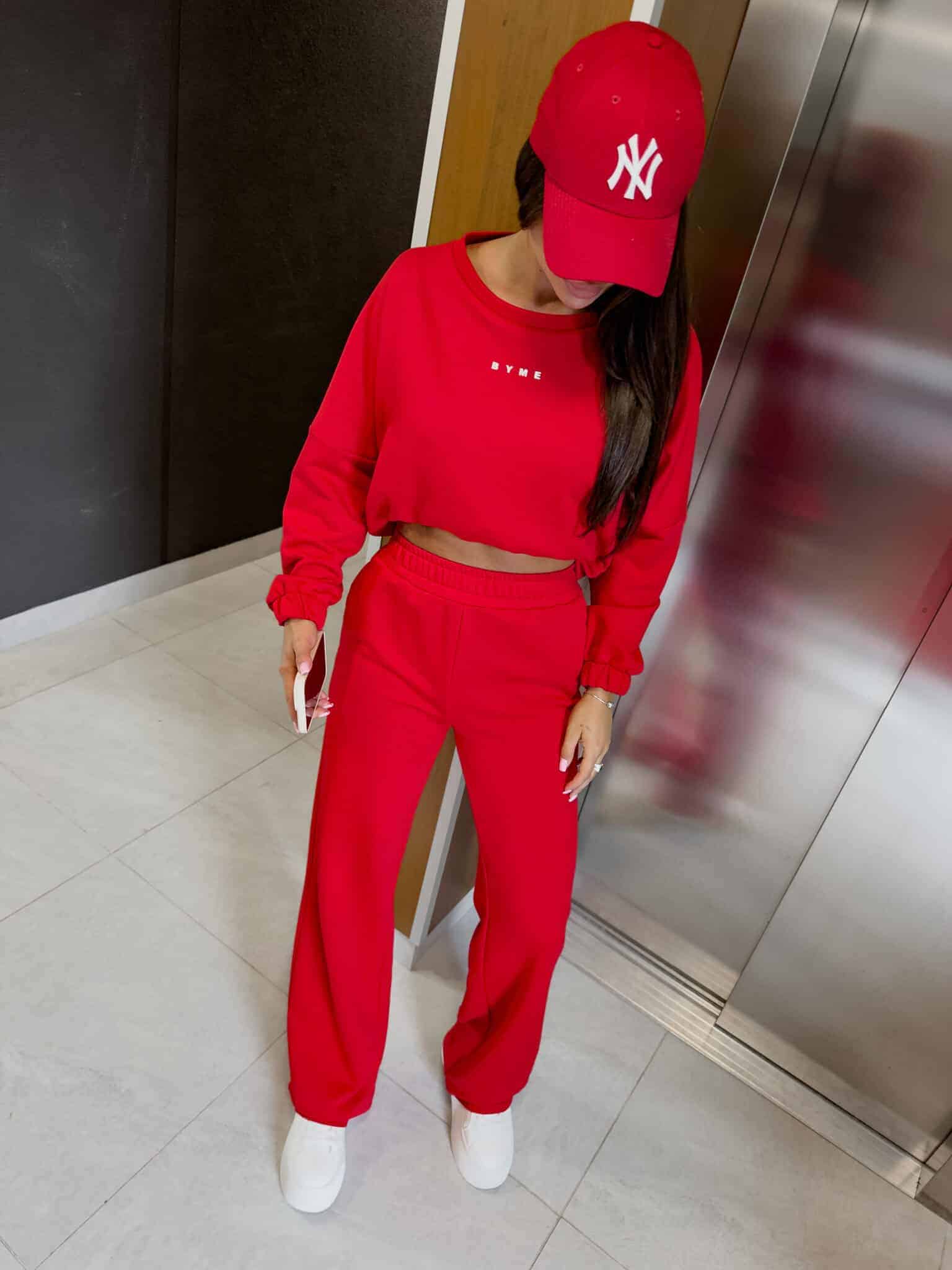 Komplet Sydney składający się z bluzy i spodni. Bluza o prostym, luźnym kroju, z długim rękawem zakończonym gumą. Szerokie spodnie z gumką w pasie