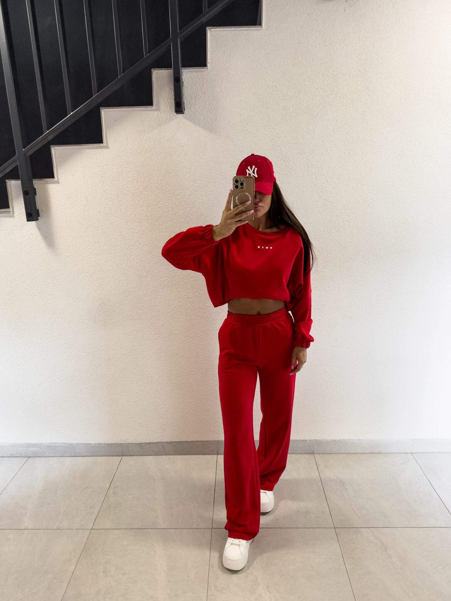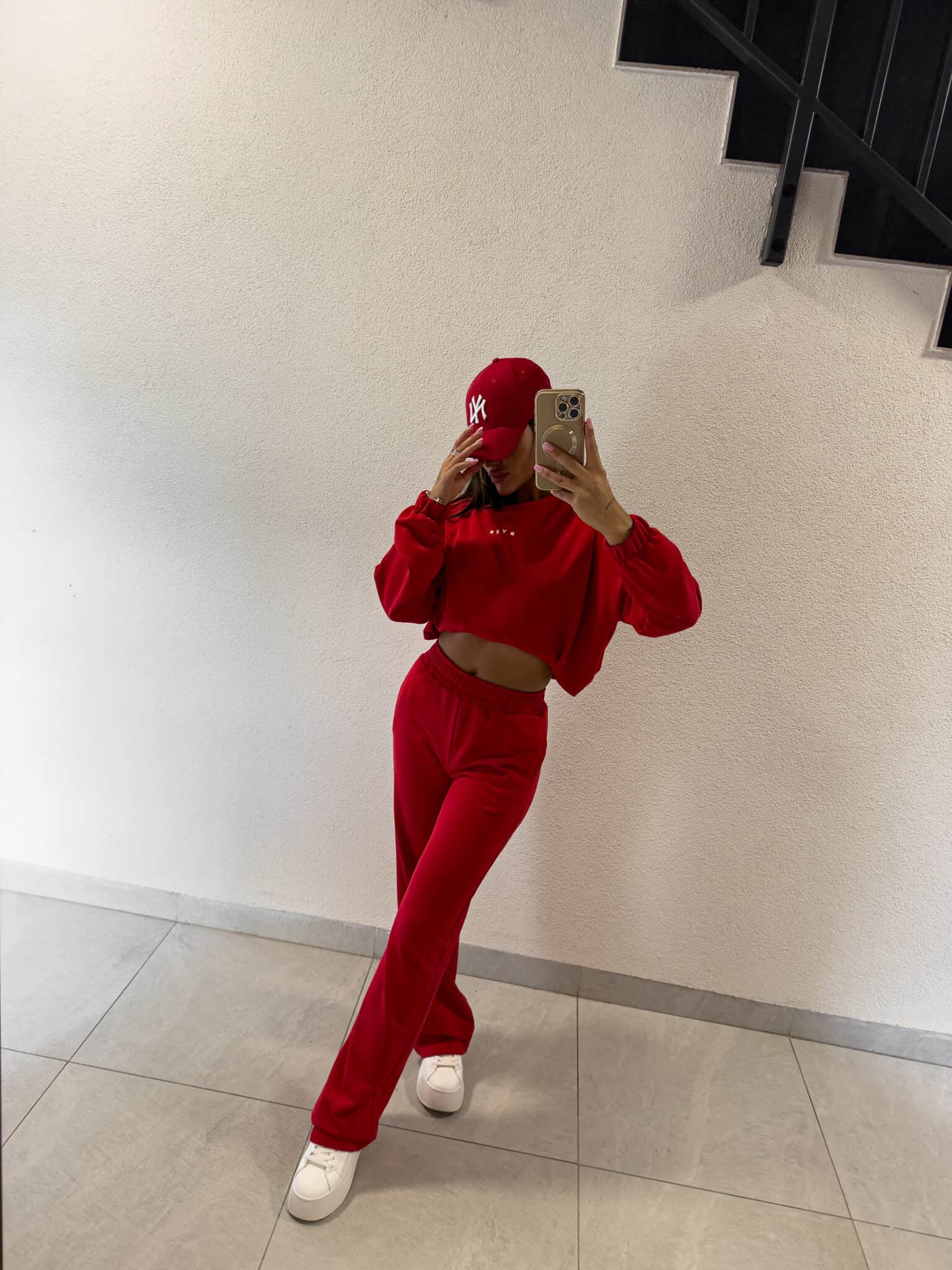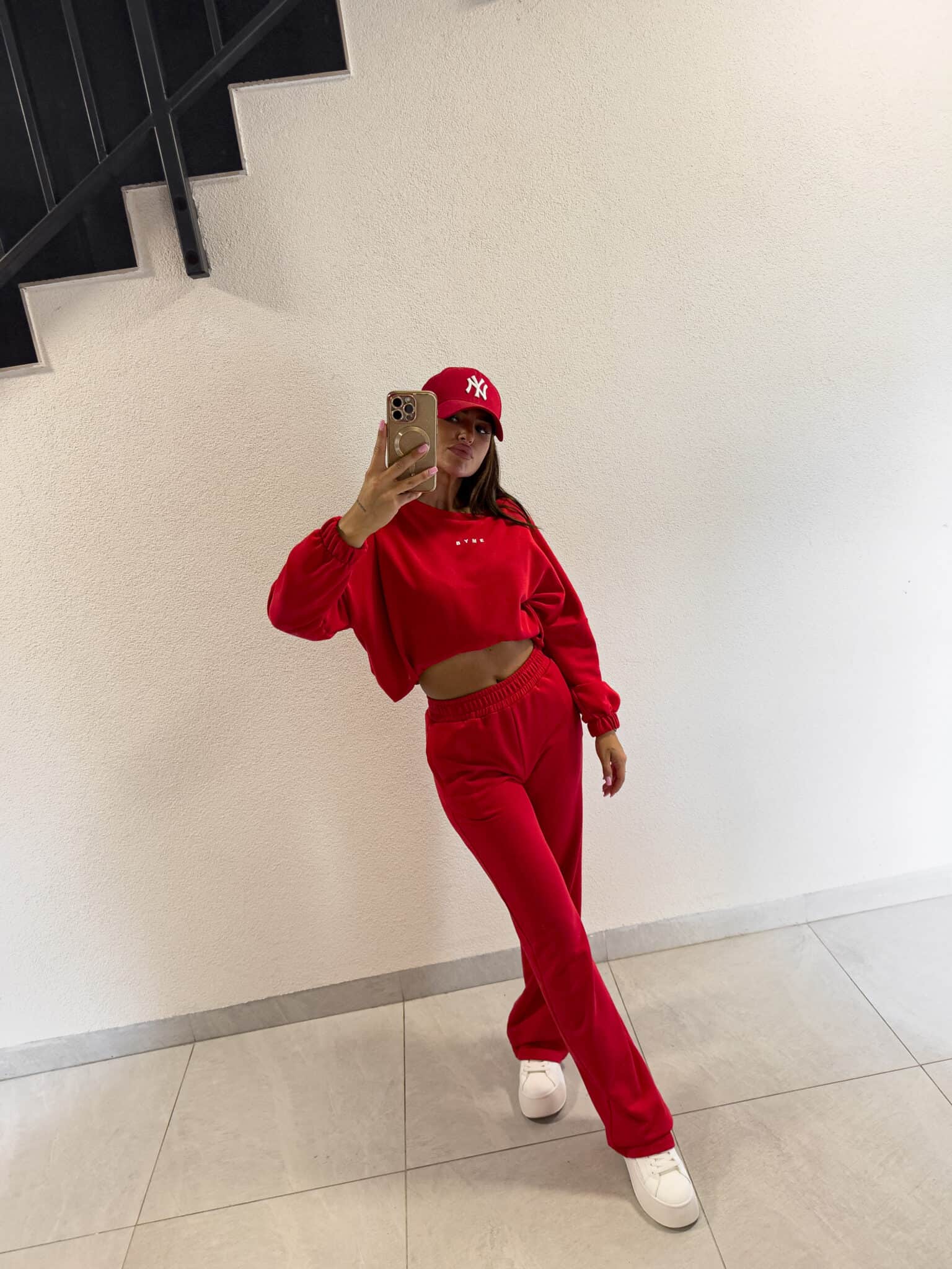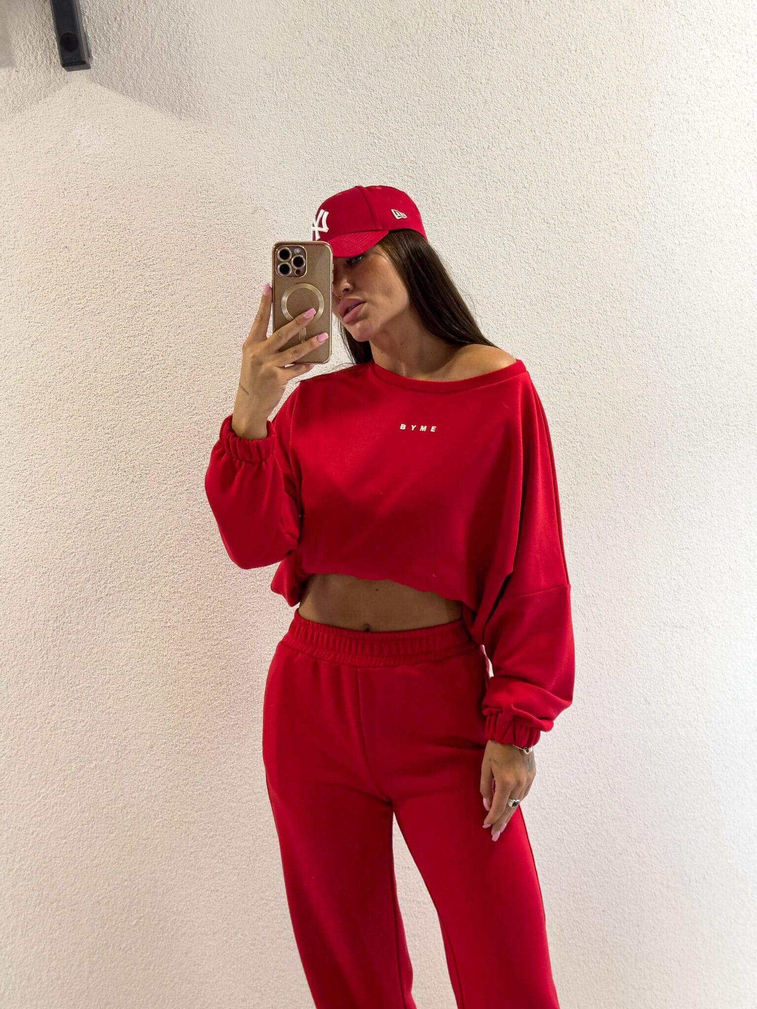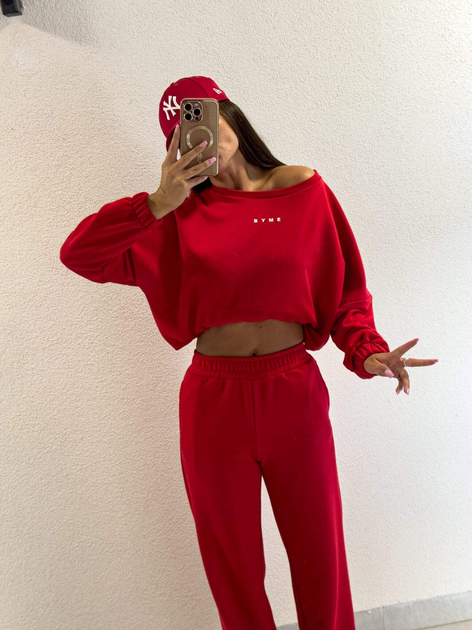Komplet Sydney składający się z bluzy i spodni. Bluza o prostym, luźnym kroju, z długim rękawem zakończonym gumą. Szerokie spodnie z gumką w pasie
