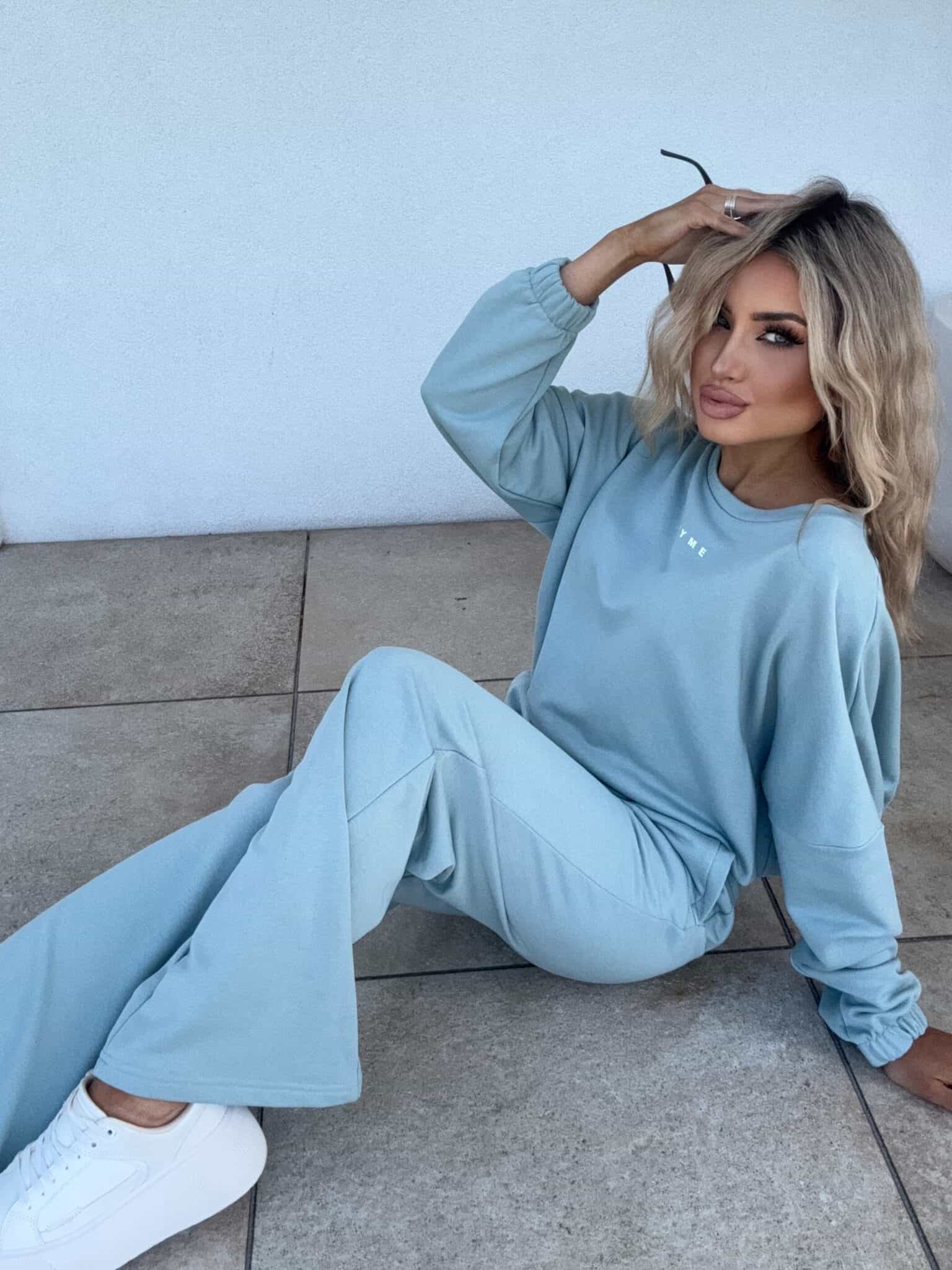 Komplet Sydney składający się z bluzy i spodni.  Bluza o prostym, luźnym kroju, z długim rękawem zakończonym gumą. Szerokie spodnie z gumką w pasie