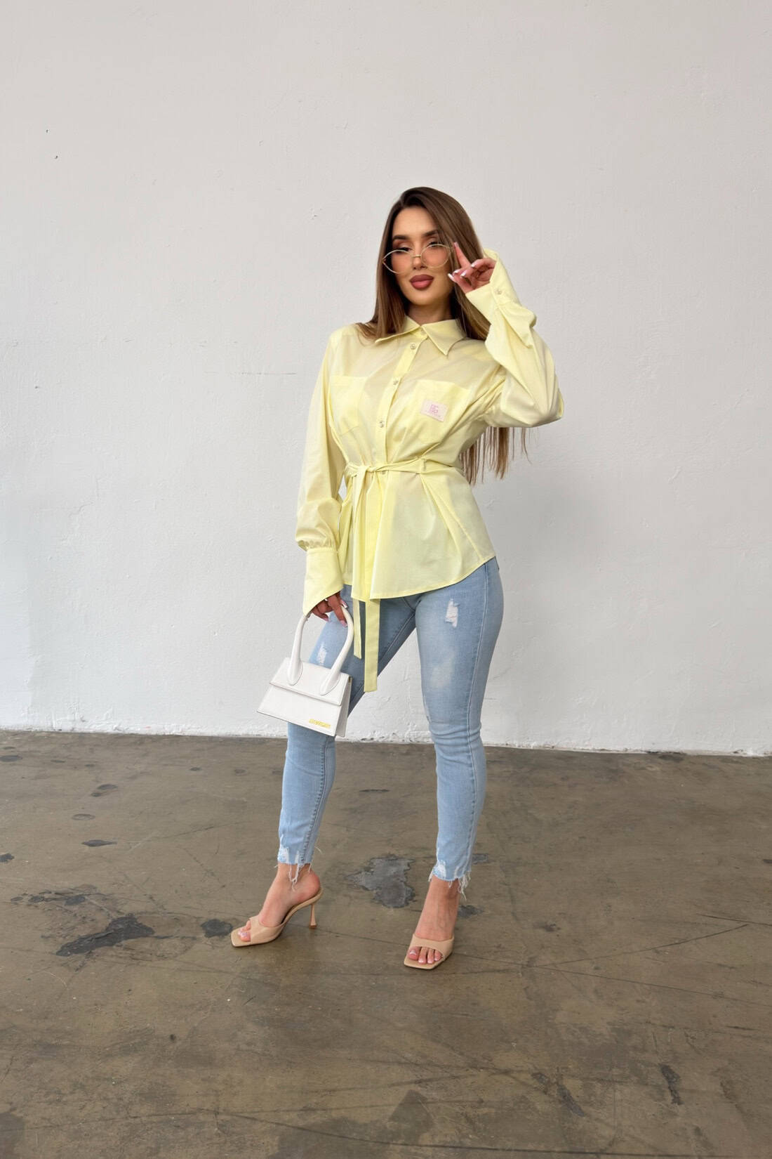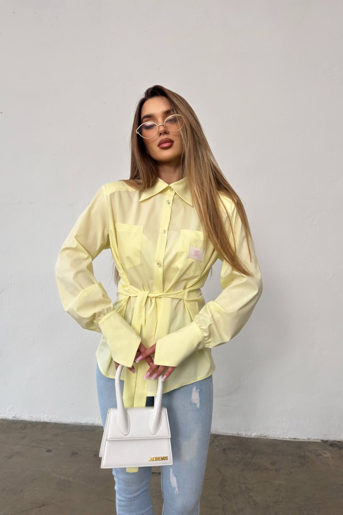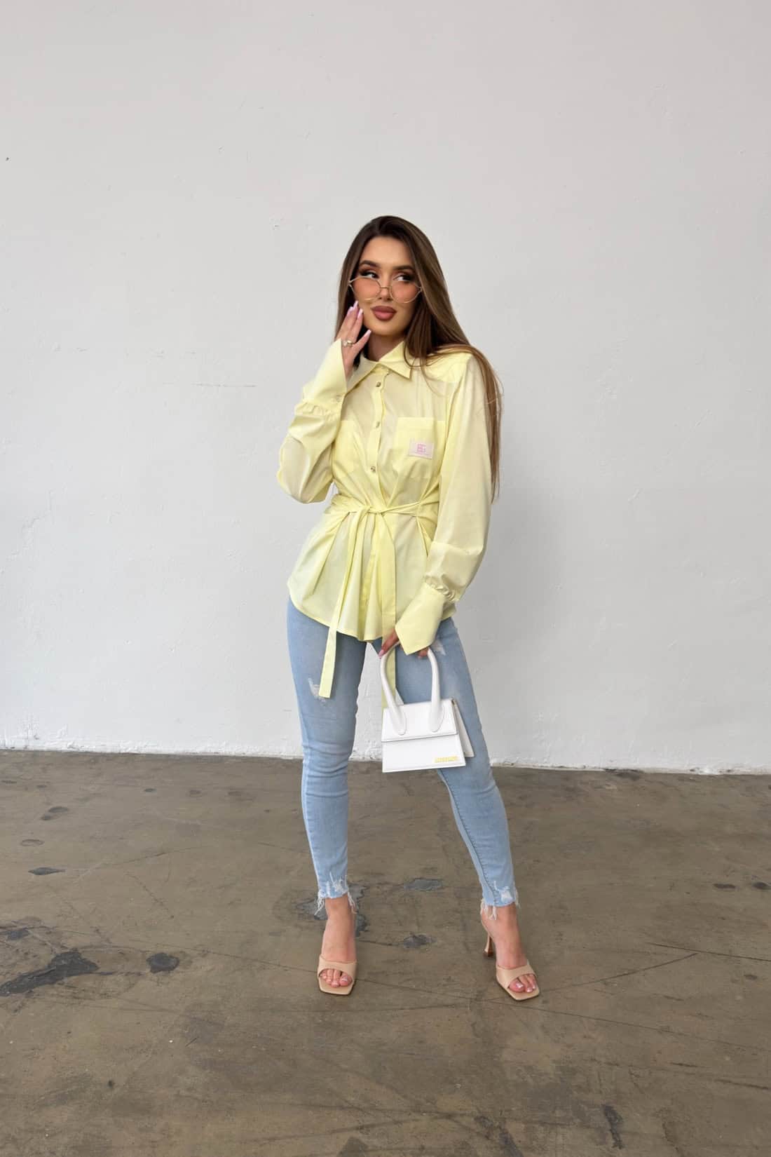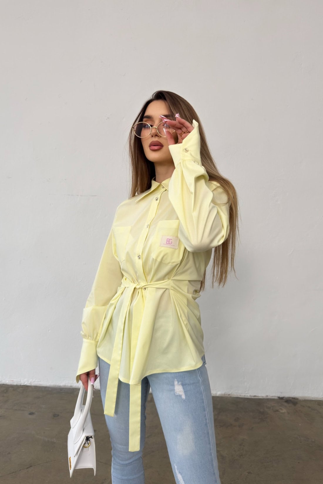 Opis produktu: Koszula gładka BG ORA. Fantastyczny model który możemy nosić na 3 sposoby, luźną, związaną z przodu oraz z tyłu. Koszula posiada efektowne mankiety, przezroczyste guziki ze złotą obramówką oraz poduszki w ramionach, które podkreślą Twoją sylwetkę. Noś do szpilek lub do sportowego obuwia!