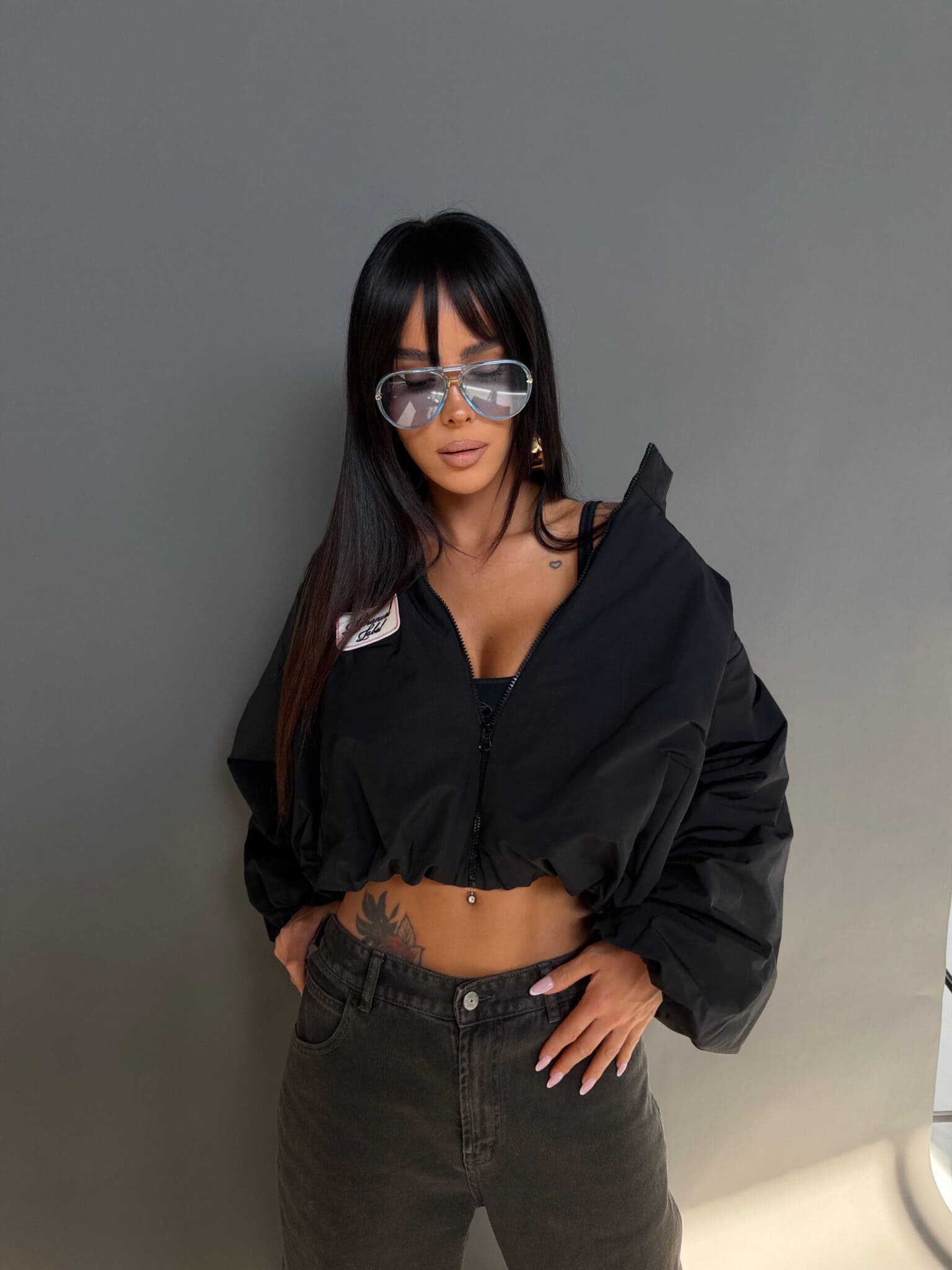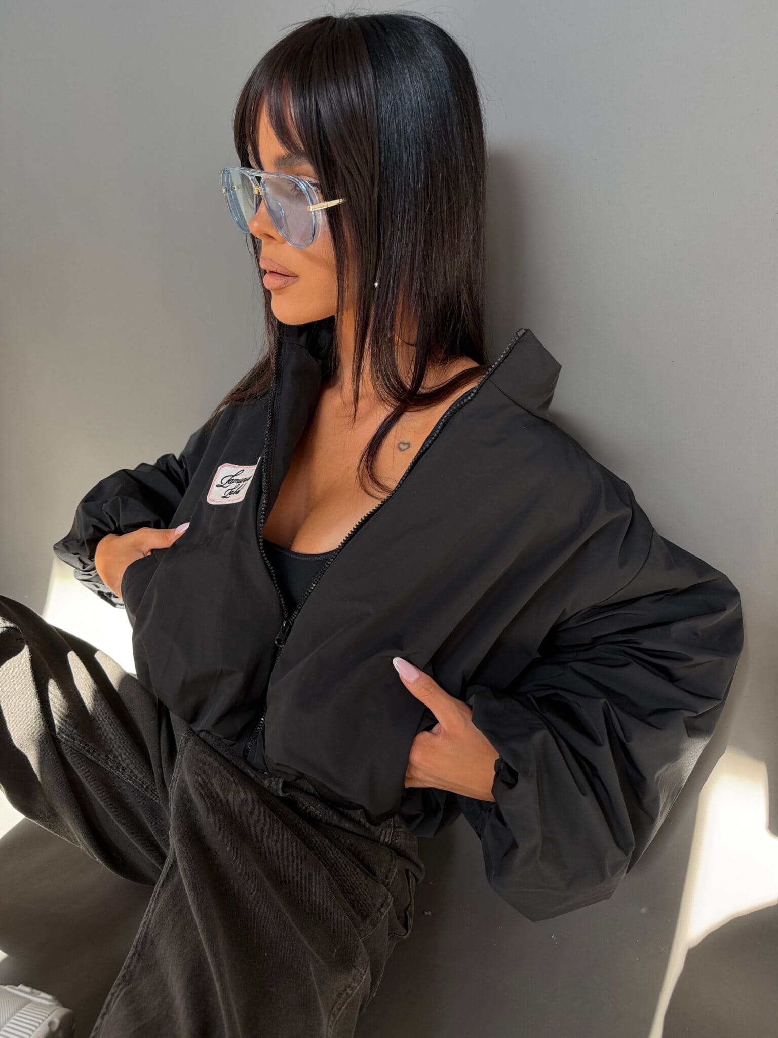 Lekka kurtka wiosenna, która robi efekt od pierwszego założenia. Oversize’owa forma z obniżoną linią ramion i podwyższonym kołnierzem buduje wyrazistą, pewną sylwetkę. Dół delikatnie zbiera się w bombkę, dzięki czemu całość ma modowy, dopracowany kształt, a nie zwykłą, sportową formę. Materiał jest lekki, miękko pracuje w ruchu i daje ten charakterystyczny, nowoczesny look. Mocny kolor przyciąga uwagę i podbija stylizację bez wysiłku. To model dla dziewczyny, która lubi wyglądać wyraziście i nie znika w tłumie.Skład: 55% poliester 45% bawełna