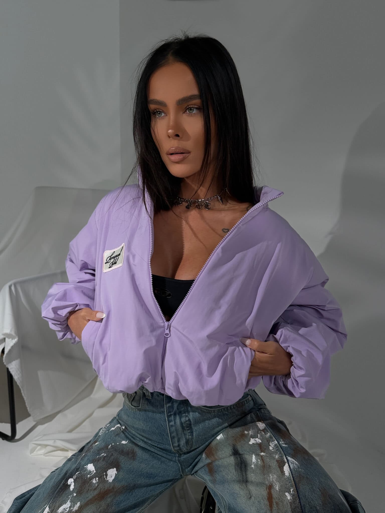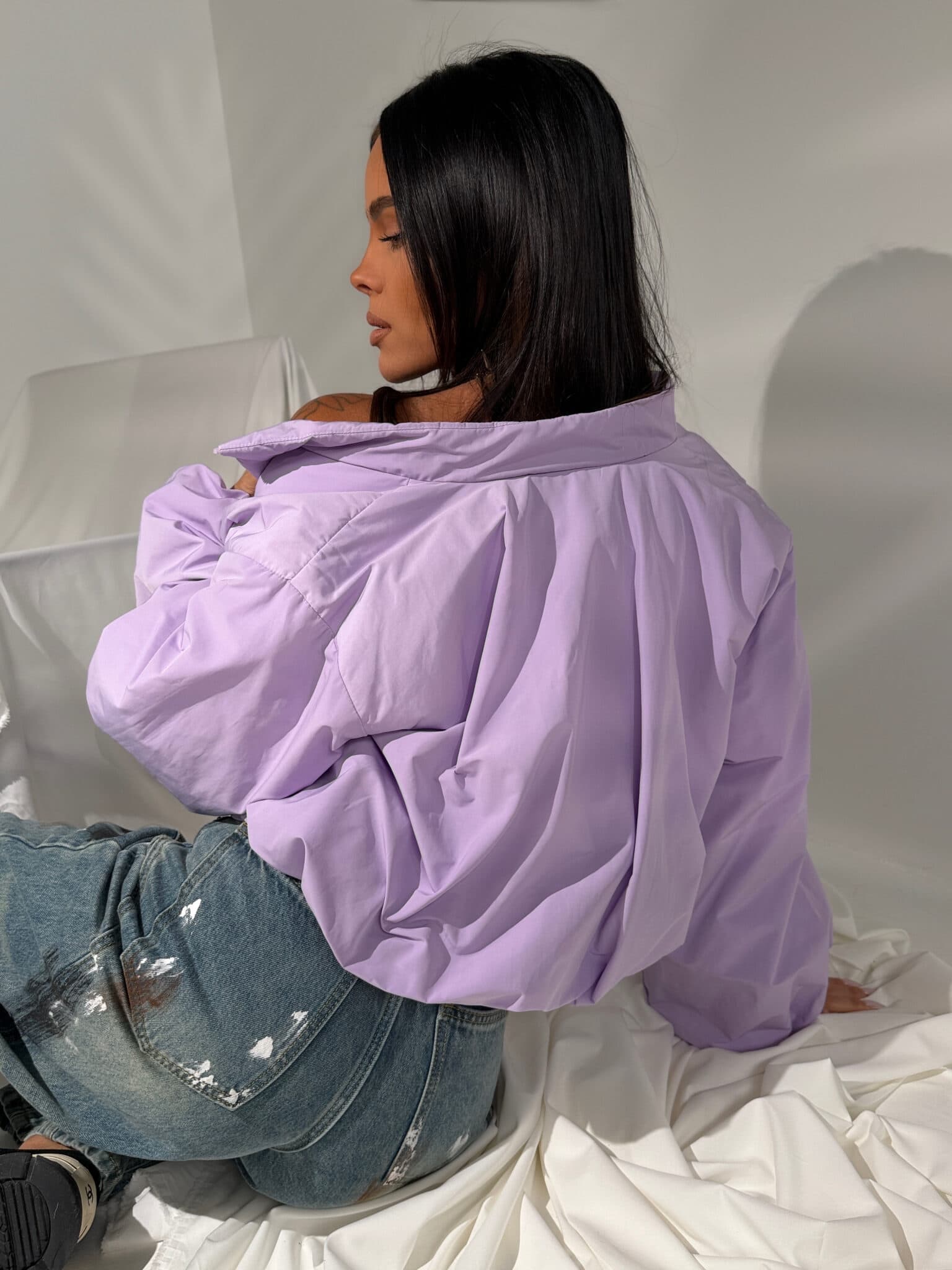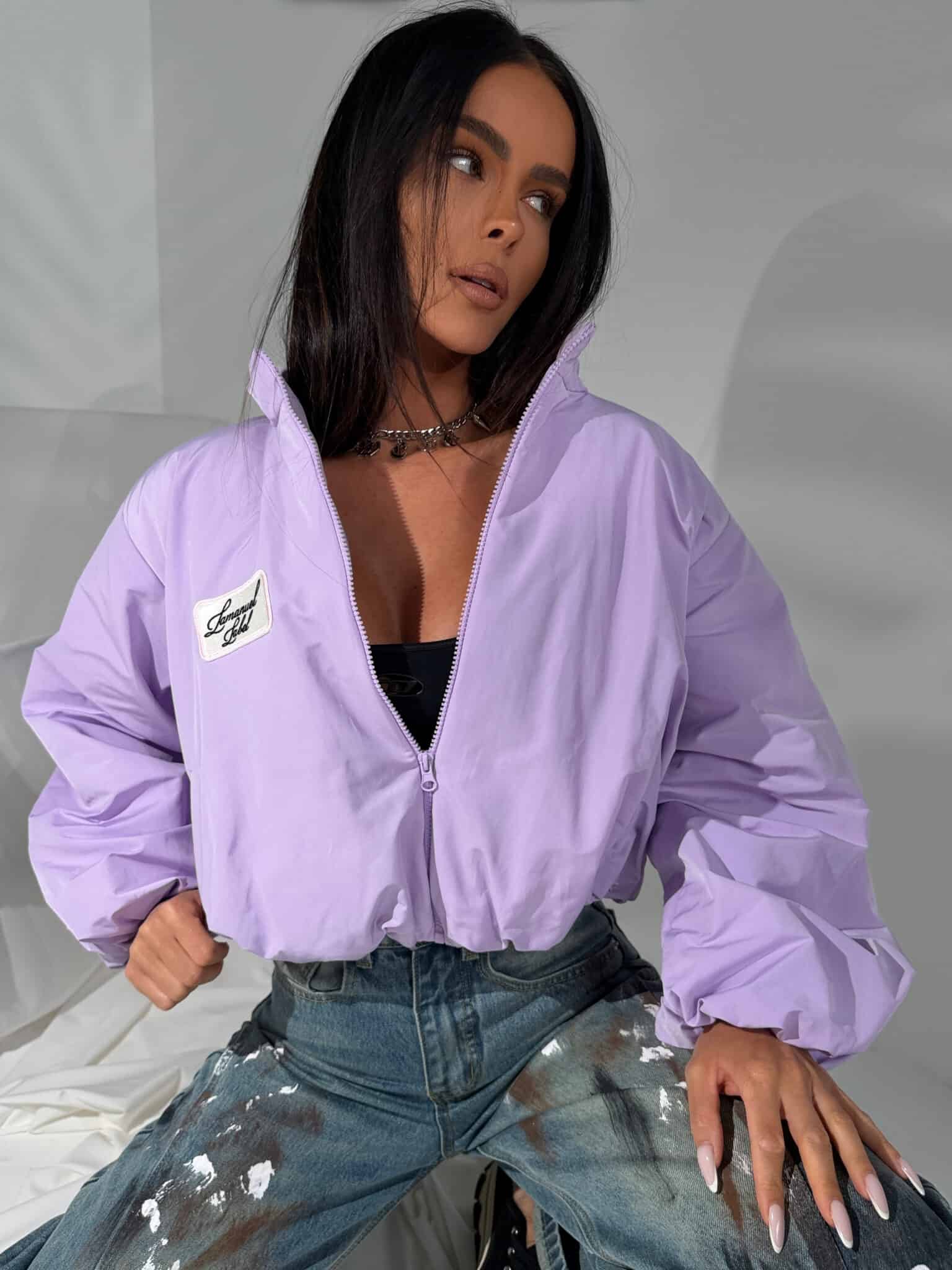 Lekka kurtka wiosenna, która robi efekt od pierwszego założenia. Oversize’owa forma z obniżoną linią ramion i podwyższonym kołnierzem buduje wyrazistą, pewną sylwetkę. Dół delikatnie zbiera się w bombkę, dzięki czemu całość ma modowy, dopracowany kształt, a nie zwykłą, sportową formę. Materiał jest lekki, miękko pracuje w ruchu i daje ten charakterystyczny, nowoczesny look. Mocny kolor przyciąga uwagę i podbija stylizację bez wysiłku. To model dla dziewczyny, która lubi wyglądać wyraziście i nie znika w tłumie.Skład: 55% poliester 45% bawełna