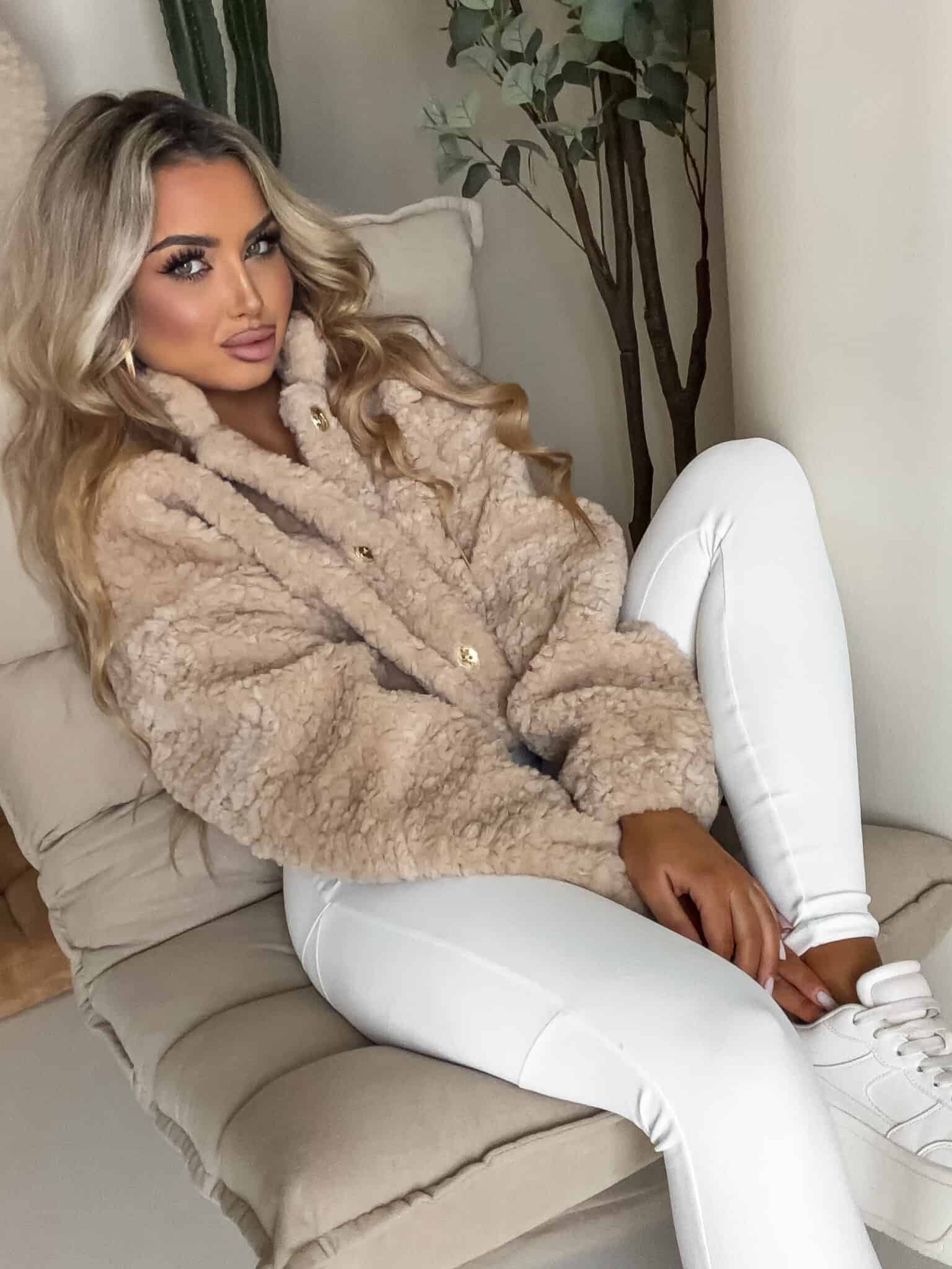 Bomberka o prostym, lekko oversize’owym kroju, bez kaptura. Model zapinany na złote, ozdobne guziki. Długie rękawy z luźniejszym wykończeniem zapewniają swobodę i komfort noszenia. Długość do pasa, posiada praktyczne kieszenie.