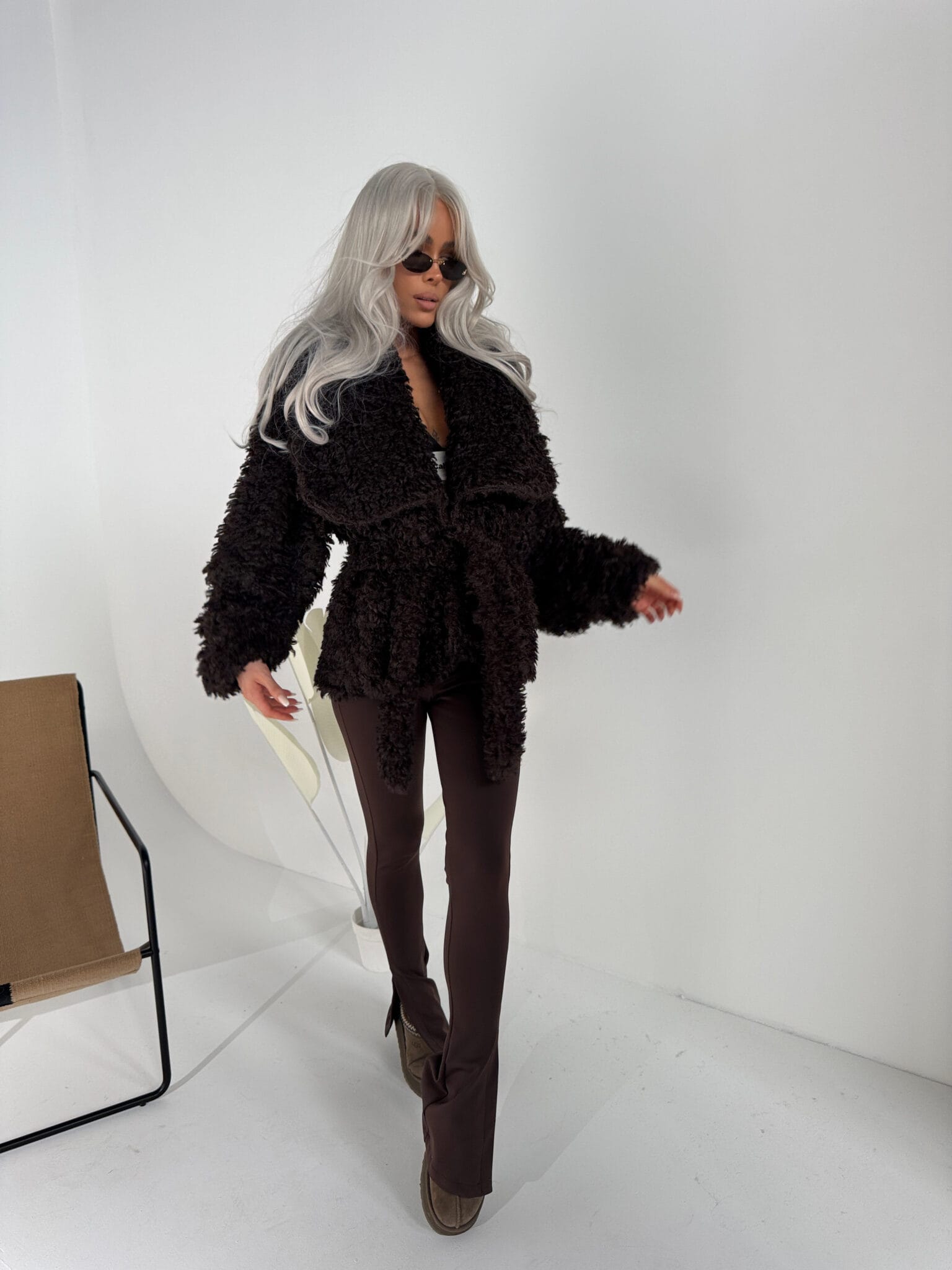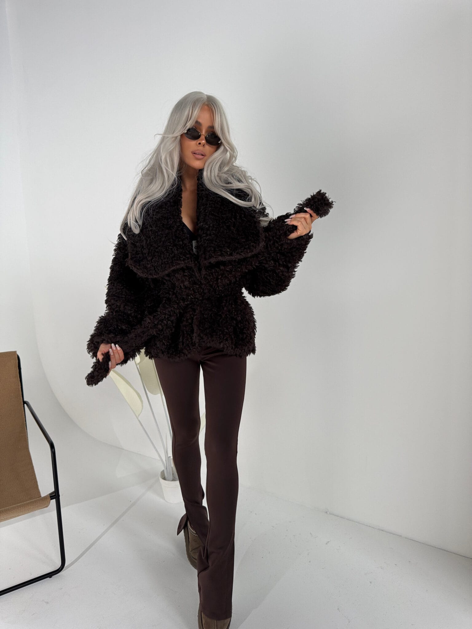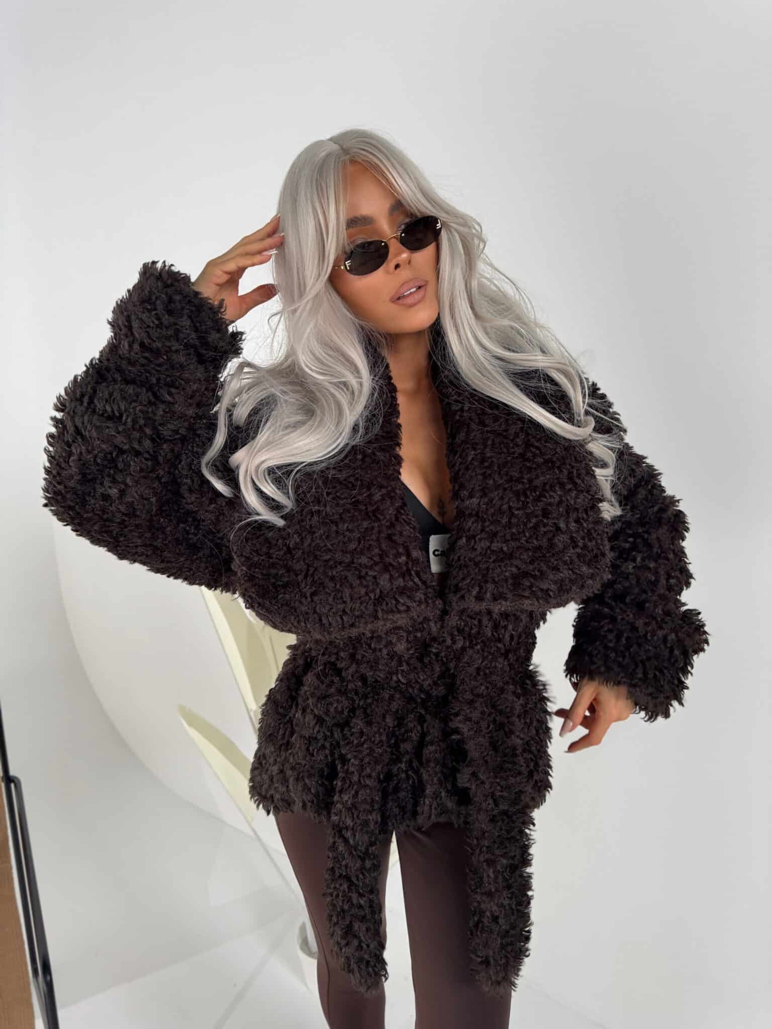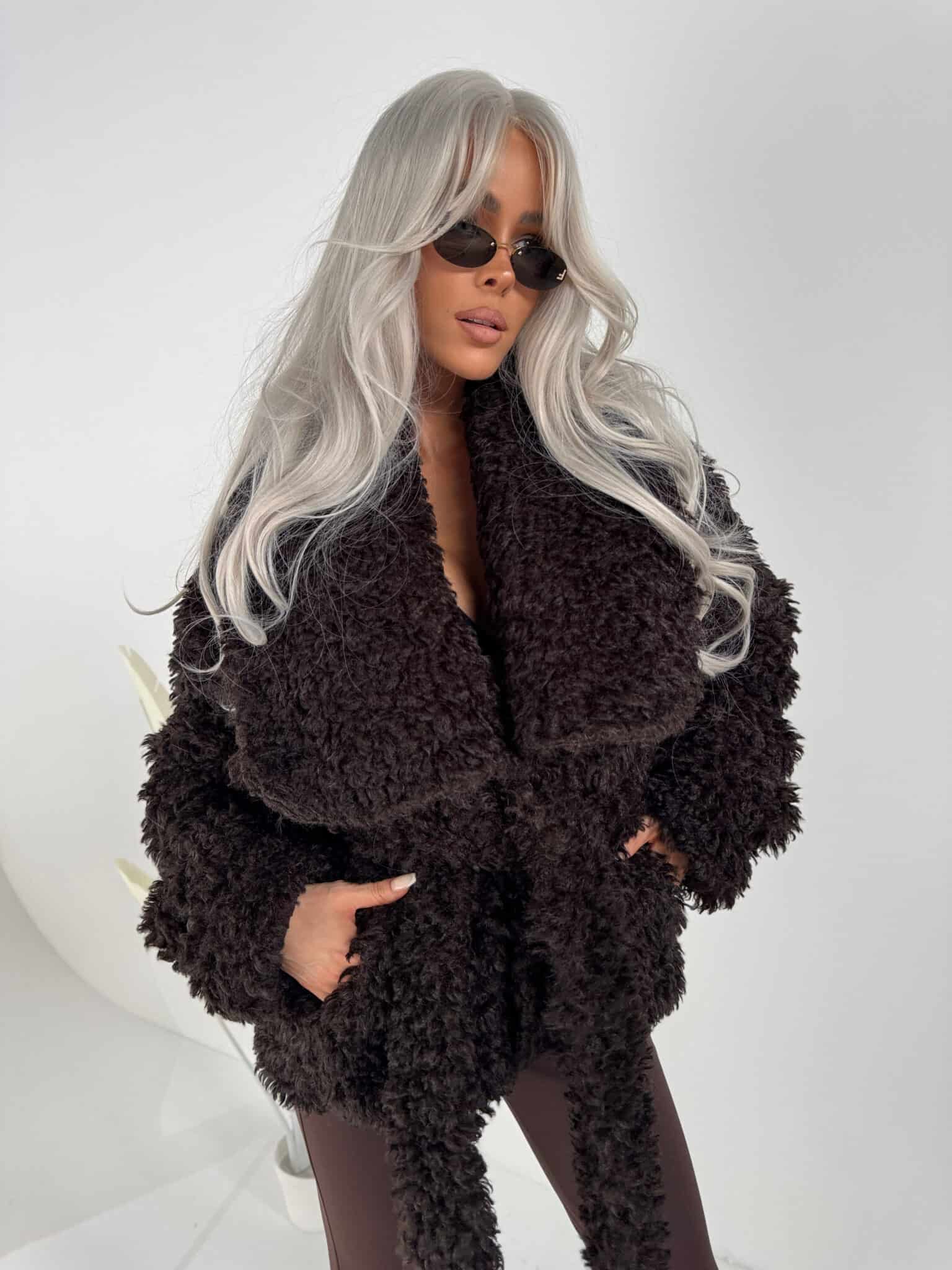 Futro, które mówi samo za siebie. Mięsiste, puszyste, z szerokim kołnierzem i nonszalanckim fasonem – wygląda jak luksus, czuje się jak koc. Pasek w talii pozwala nosić je swobodnie lub bardziej zdefiniowanie, w zależności od nastroju. Na plecach naszywka LAMANUEL, która dyskretnie przypomina, że styl ma znaczenie. To nie jest kolejna zimowa narzutka – to statement piece, który robi całą stylizację.Skład: 100% poliester