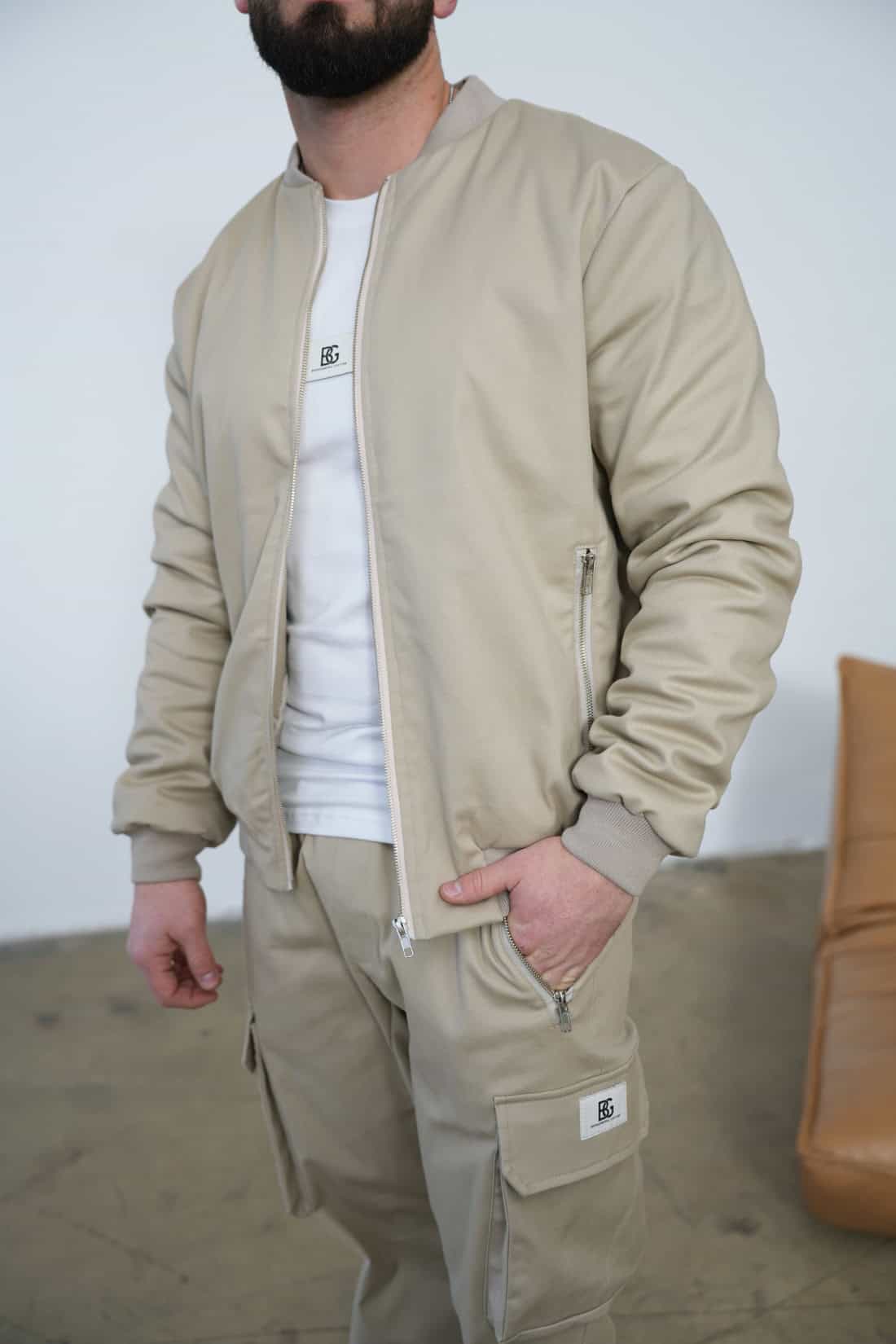 Opis produktu: Kurtka męska BG REPEAT z wysokiej jakości bawełnianego jeasnu. Klasyczna bomberka męska zapinana na suwak. Na przodzie dwie kieszenie również zapinane na suwak. Dół kurtki, mankiety oraz kołnierz wykończone bawełnianym ściągaczem. Kurtka na podszewce z lekkim ocieplaczem. Na tyle duża naszywka z logo marki BG Brandenburg Couture.