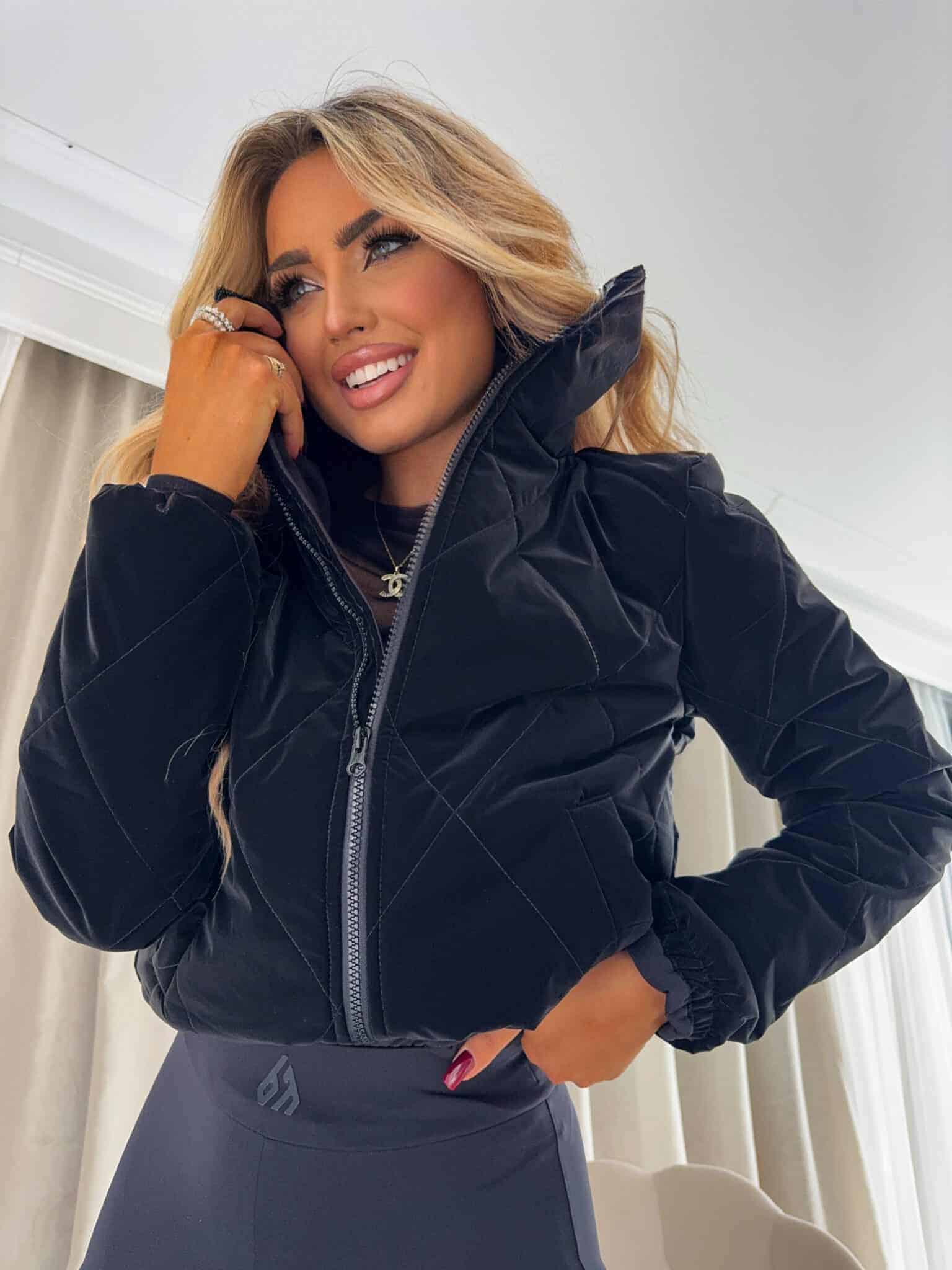Zapinana na zamek błyskawiczny. Model wyposażony w stójkę, kieszenie oraz ściągacz u dołu, który umożliwia regulację długości i dopasowanie do sylwetki. Logowanie na plecach.