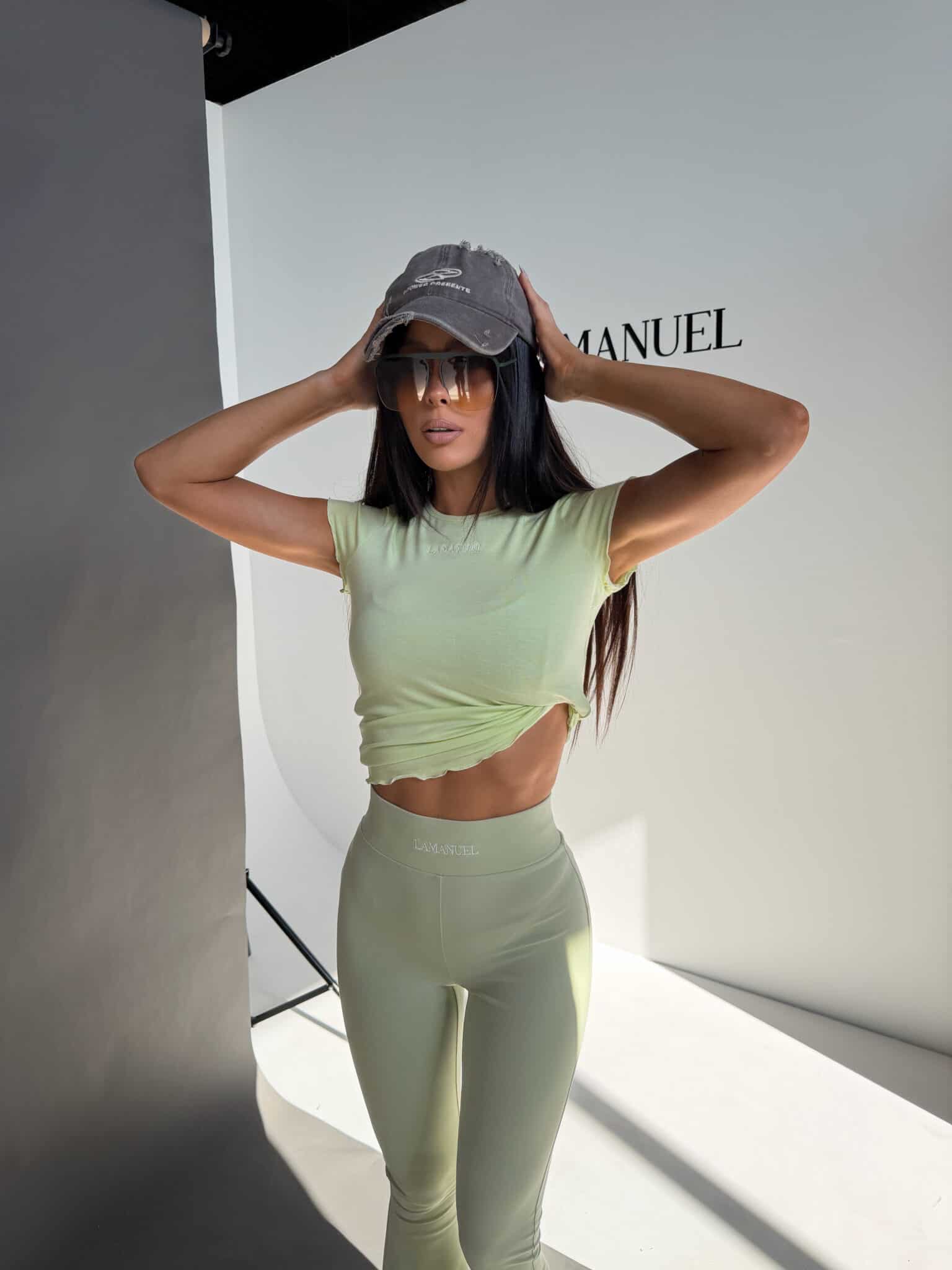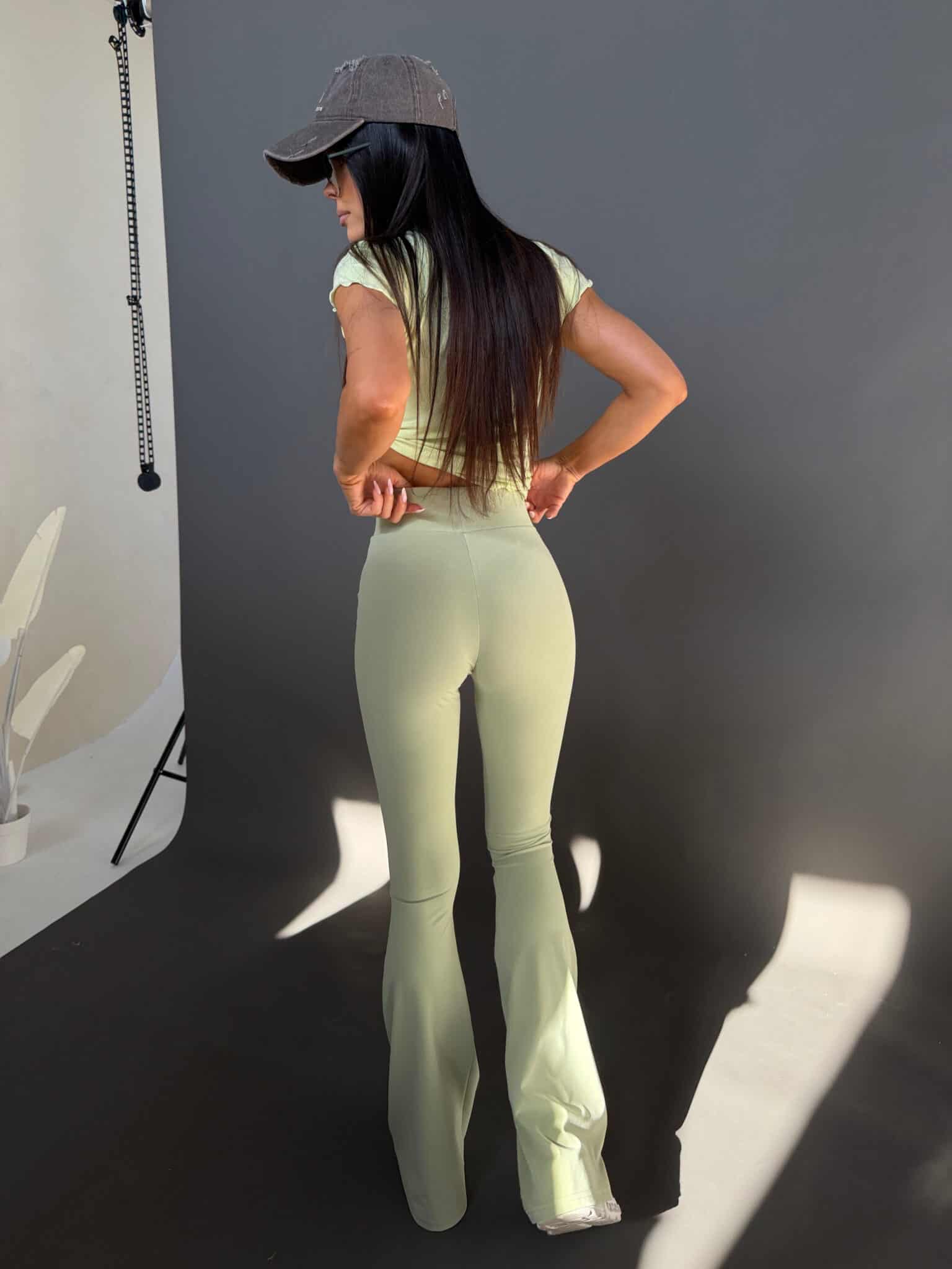 KOLOR LIMITOWANY!Dopasowane legginsy o kroju dzwonów – bestseller ubiegłego sezonu, który powraca w nowych kolorach. Model podkreśla sylwetkę, wysmukla talię i optycznie wydłuża nogi dzięki rozszerzanej nogawce. Wysoki, elastyczny pas zapewnia komfort noszenia i idealne dopasowanie do figury. Materiał miękko układa się na ciele i pracuje w ruchu, dzięki czemu legginsy świetnie sprawdzają się zarówno w stylizacjach sportowych, jak i codziennych, miejskich zestawach.Skład: 53% lyocell 38% poliester 9% spandex