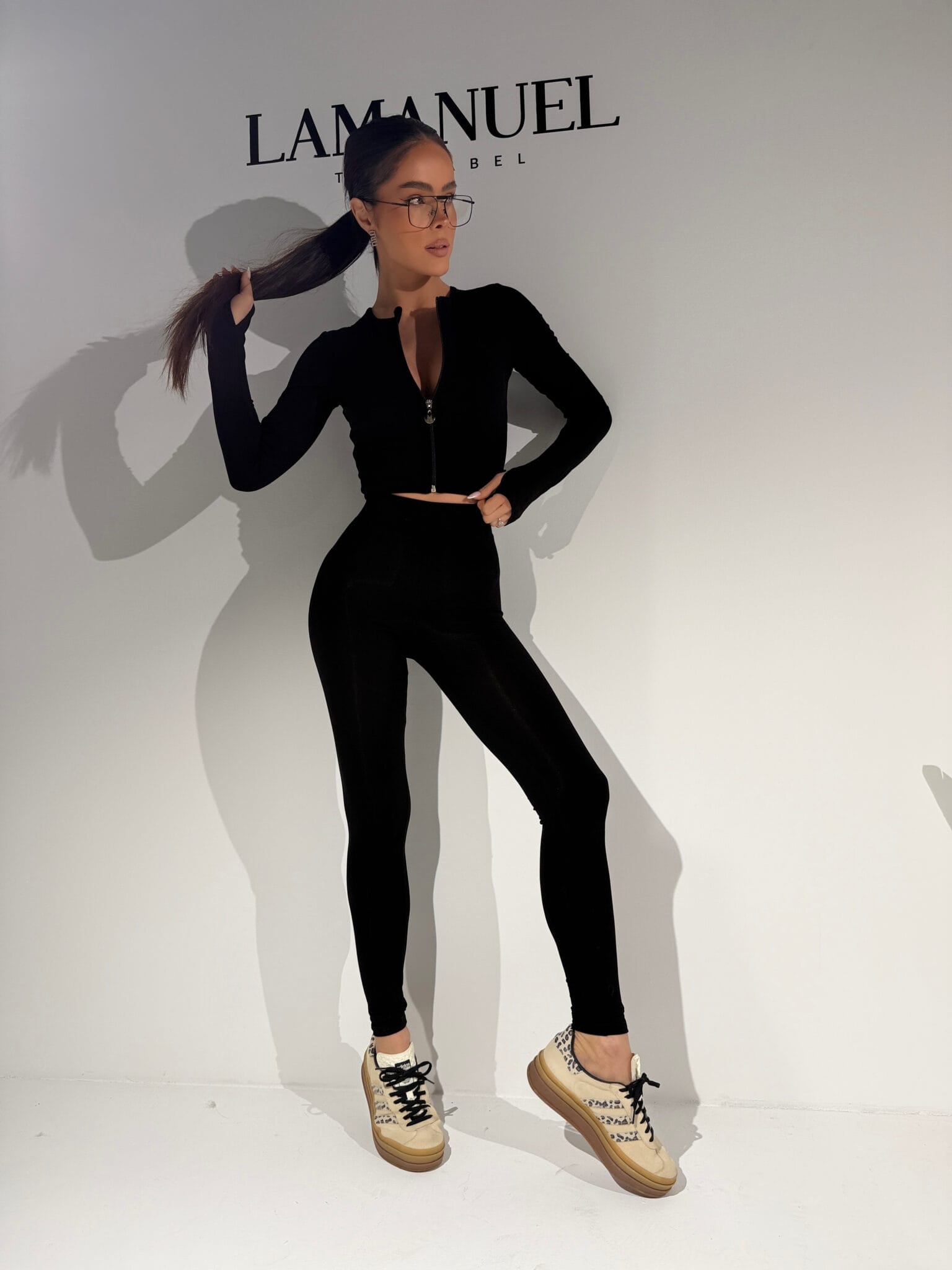 Model o perfekcyjnym przyleganiu do ciała i wysokim, podkreślającym talię pasie, który wygładza i trzyma sylwetkę w ryzach. Miękki, uciągliwy materiał dobrze pracuje w ruchu i daje maksymalny komfort. Z tyłu delikatne logo „M” haftowane tuż nad linią pośladków – czysty detal, który dodaje charakteru bez przekombinowania. Idealne do zestawu z dopasowanym topem lub cropem – baza, którą Twoje klientki będą nosić na okrągło.Skład: 95% wiskoza 5% elastan