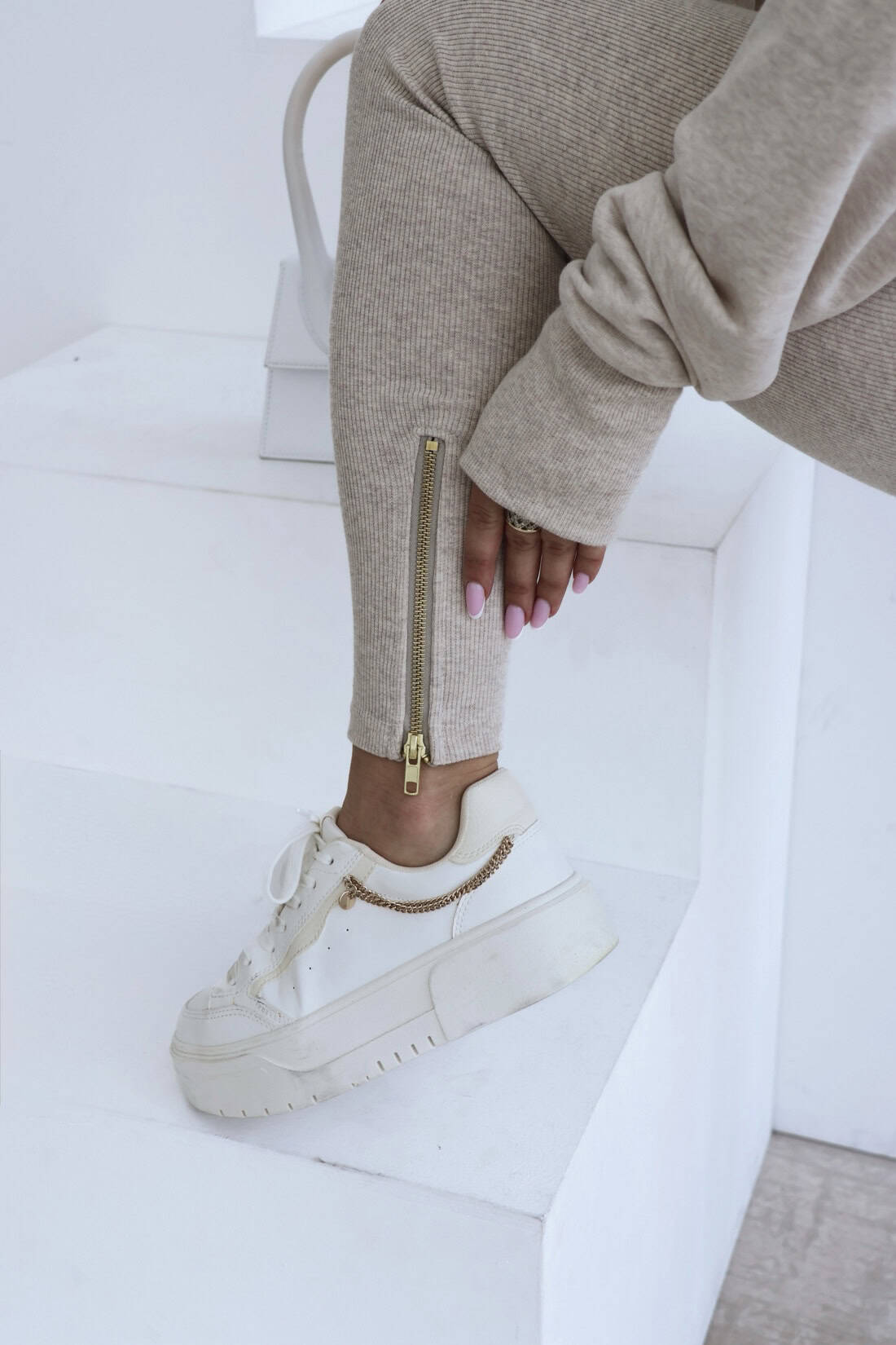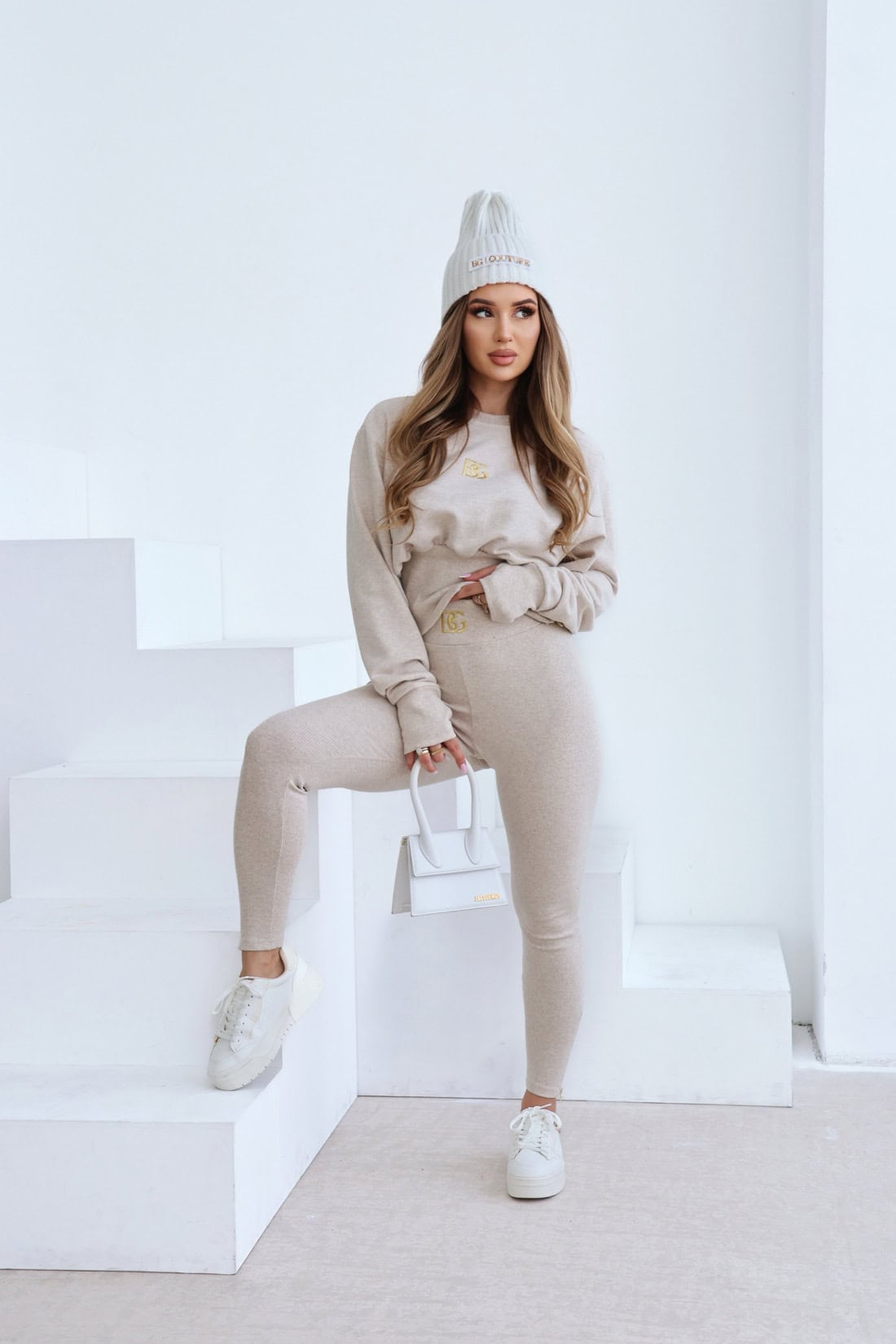 Opis produktu: Legginsy BG GODDESS z wysokiej jakości ściągacza bawełnianego. Legginsy z bardzo wysokim stanem, szeroka guma, logowane złotym logo BG na środku paska. Dodatkowo leginsy posiadają ozdobne złote suwaki w dole nogawki.