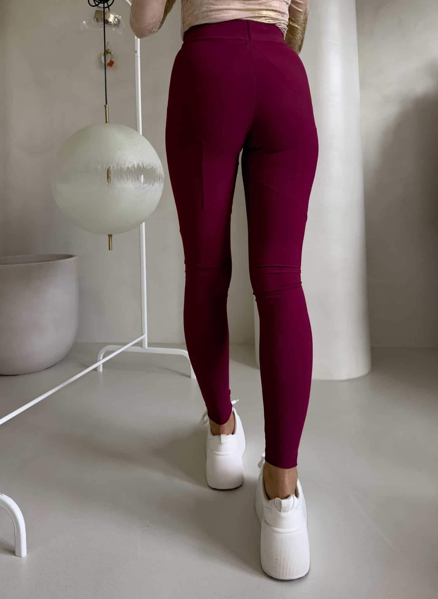 Legginsy Fit wykonane z ciągliwego materiału. Widoczny prążek na materiale. Gumka w pasie z logowaniem na przodzie.. Z tyłu efektowne cięcia, które tworzą wzór gwiazdy.