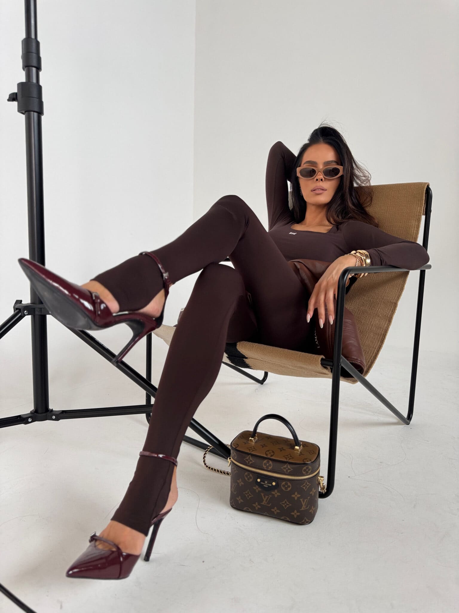 Dopasowane legginsy z elastycznej, gładkiej dzianiny o modelującym kroju. Wysoki stan podkreślający talię i delikatny haft z logo na łydce. Minimalistyczne, wygodne i stylowe – idealne do codziennych stylizacji, jak i na wyjście.Skład: 95% poliester 5% elastan