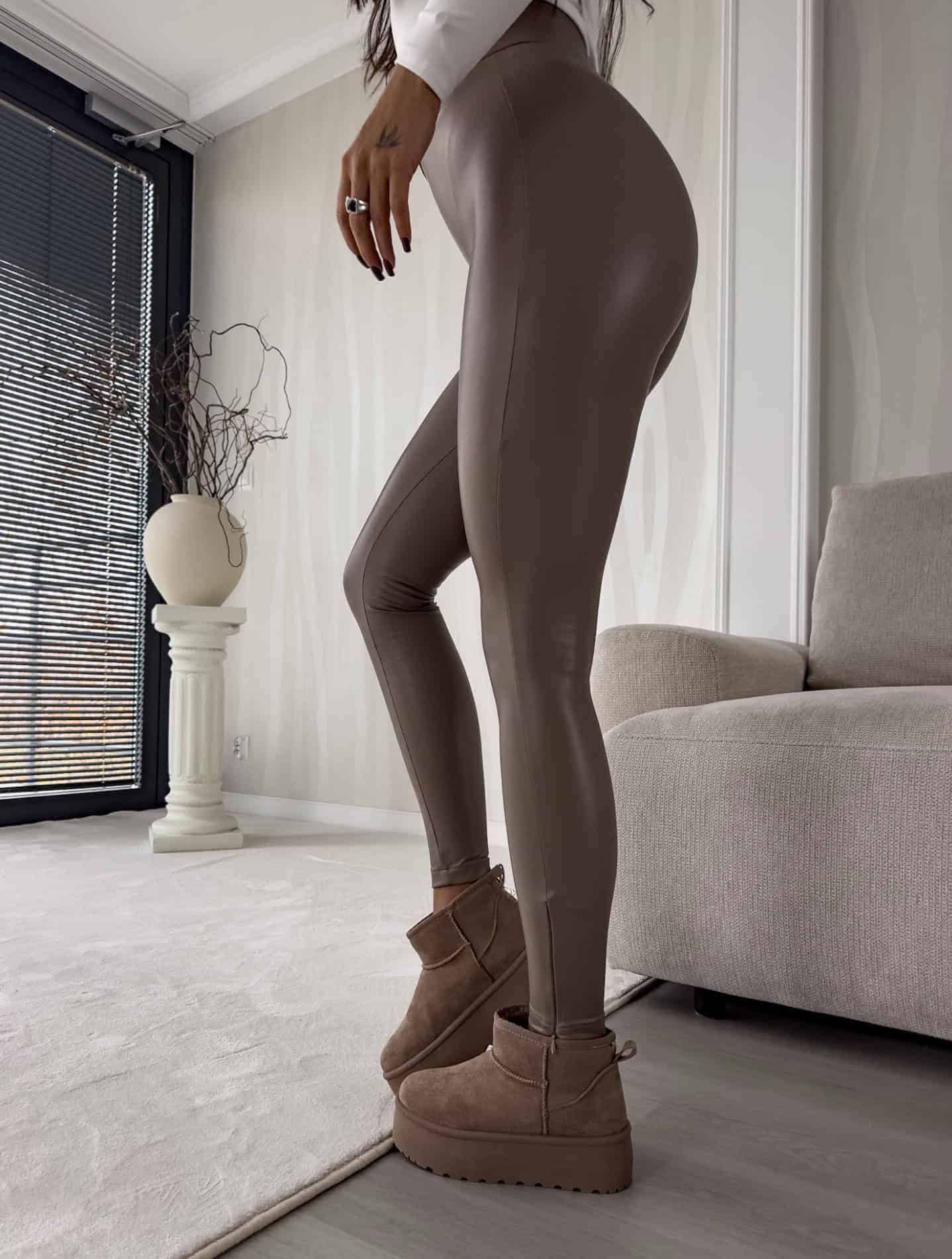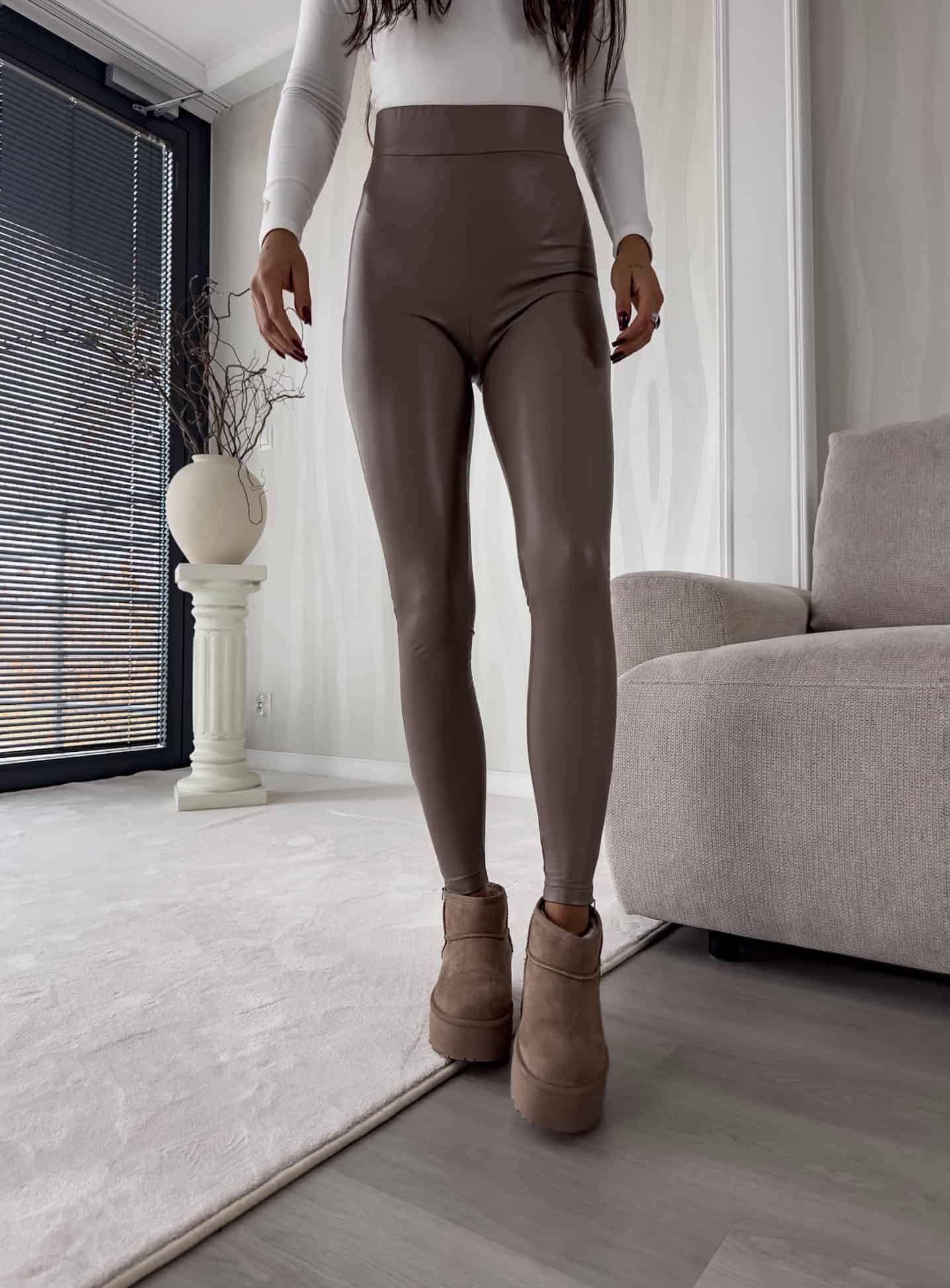 Legginsy LEATHER charakteryzują się skórzanym wykończeniem materiału. Suwaki na nogawkach. Guma w pasie. Ocieplane delikatnym meszkiem