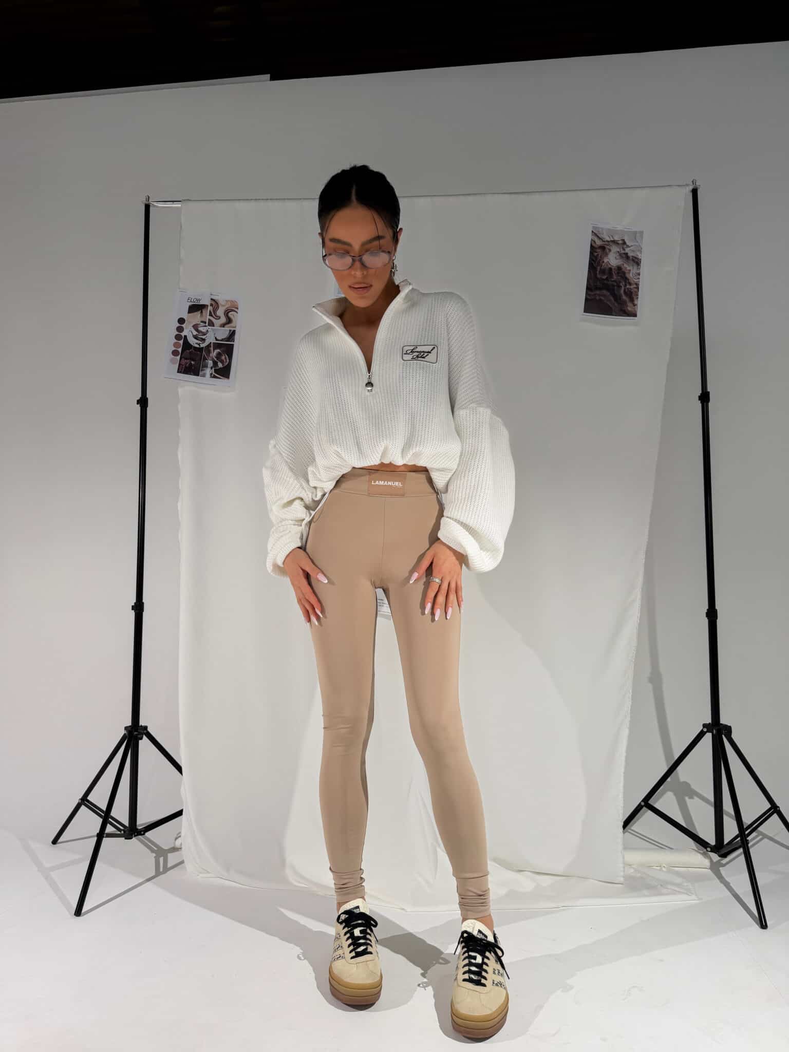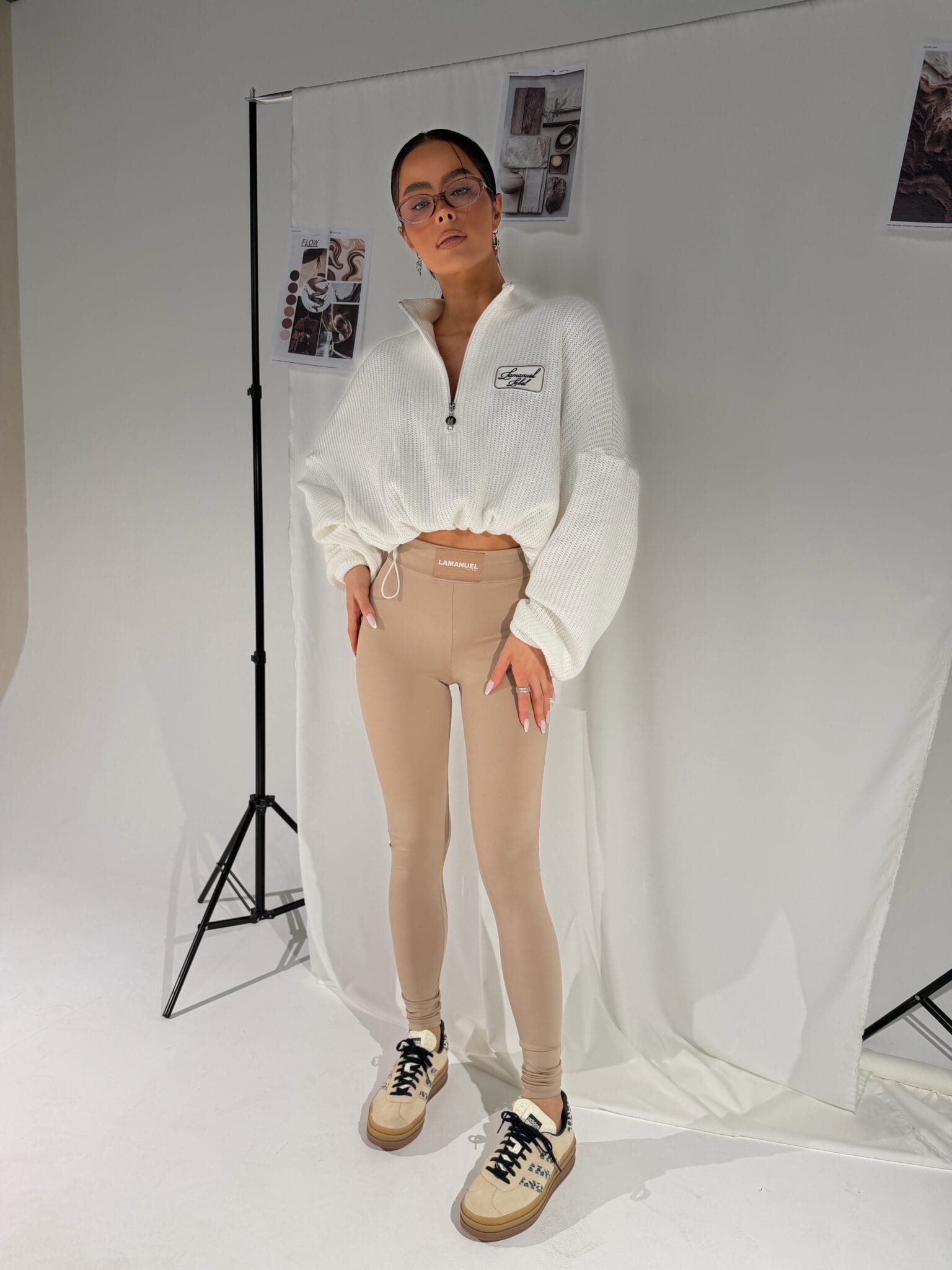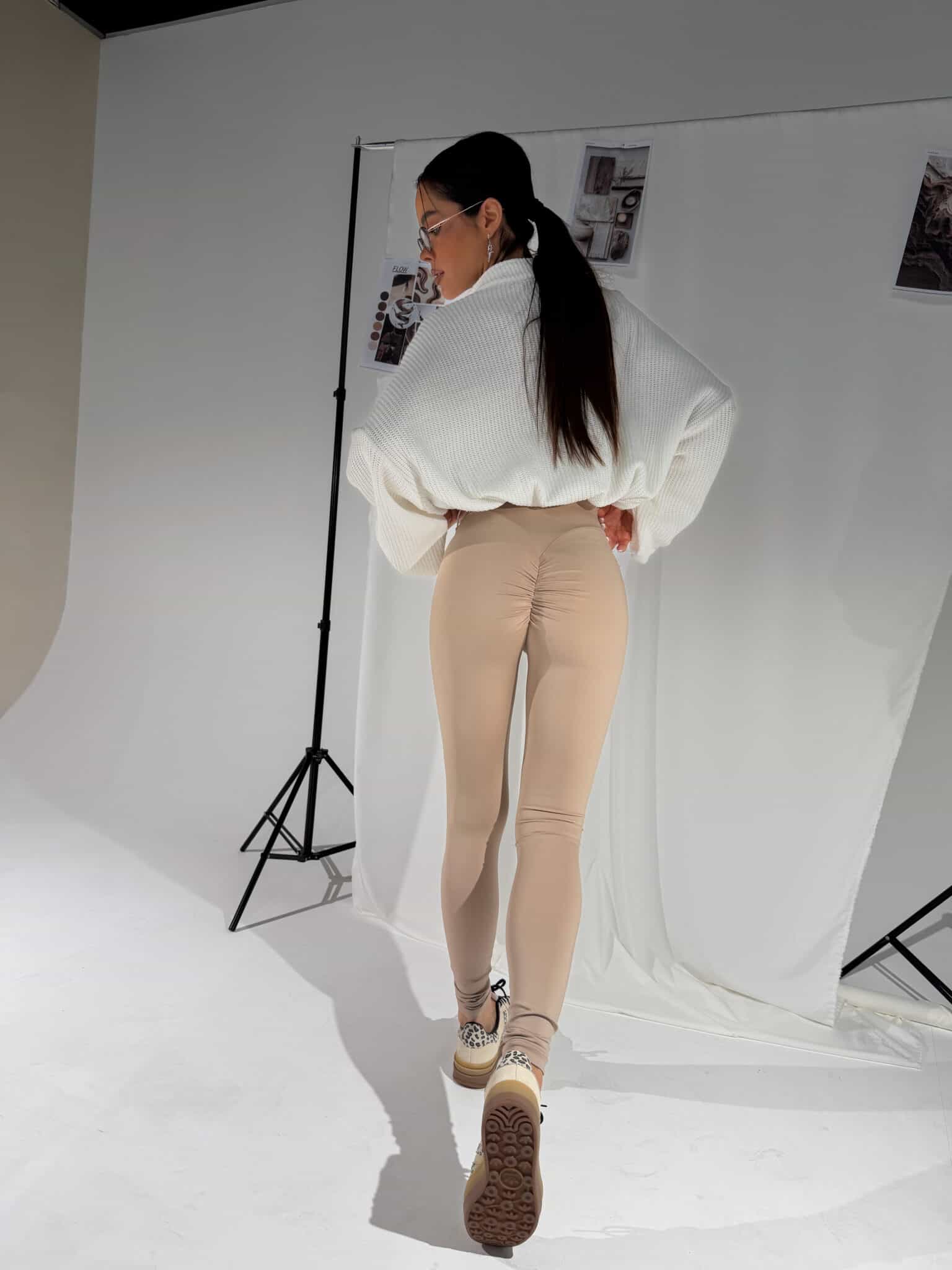Legginsy, które realnie zmieniają proporcje sylwetki – bez filtrów, bez ściemy. Mocna, elastyczna lycra z delikatnym połyskiem gładko opina ciało i daje efekt wysmuklenia, który widać od razu. Marszczenie na pośladkach podnosi je optycznie i modeluje krągłości tak, że każda klientka poczuje się jak milion dolarów. Wysoki stan zbiera talię, nie zjeżdża, nie roluje się, a elastyczny pas z logo lamanuel dopełnia całość estetycznie. Komfort noszenia 10/10, ale przy tym totalny efekt wow.Skład: 78% nylon 22% spandex