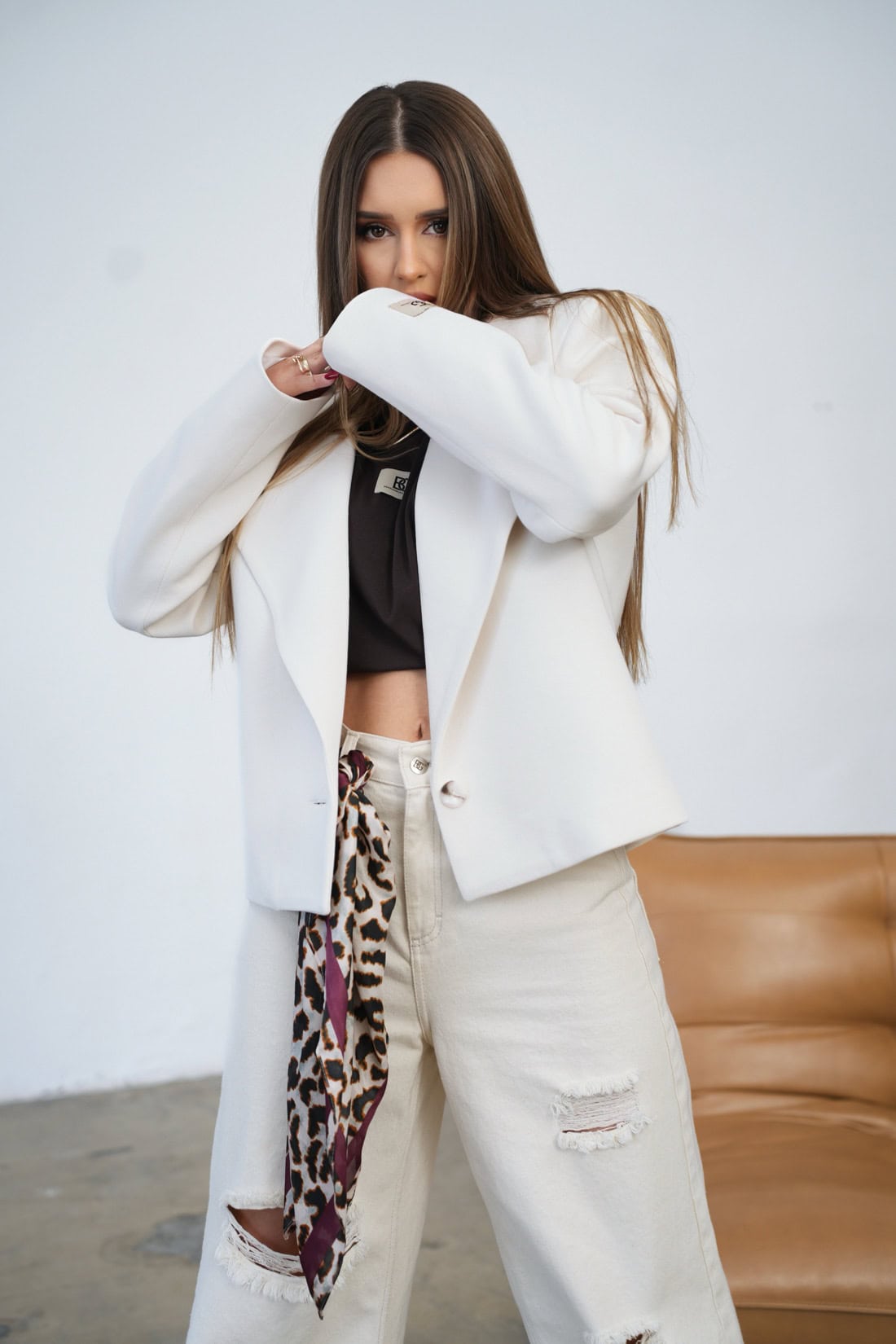 Opis produktu: Marynarka damska BG TIFFANY z wysokiej jakości bawełny na podszewce. Model marynarki z szerokimi ramionami i dużymi klapami. Marynarkę możemy wystylizować na eleganckie lub sportowe outfity. Na rękawie mała naszywka z logiem marki BG.