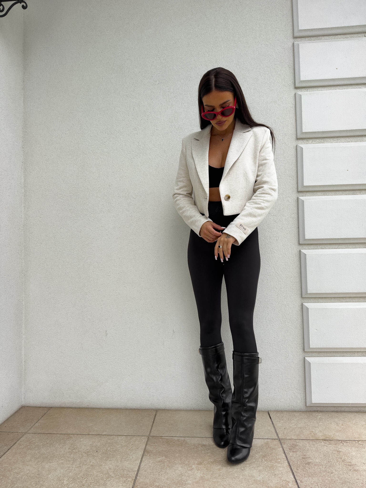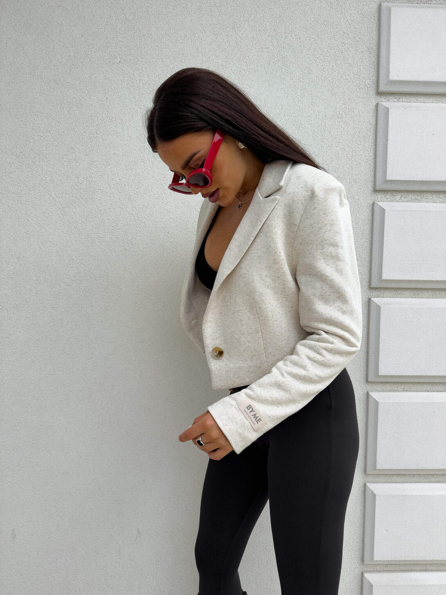 Marynarka o krótkim kroju, gładkie wykończenie. Marynarka posiada podszewkę, zapięcie regulowane przy pomocy guzika.