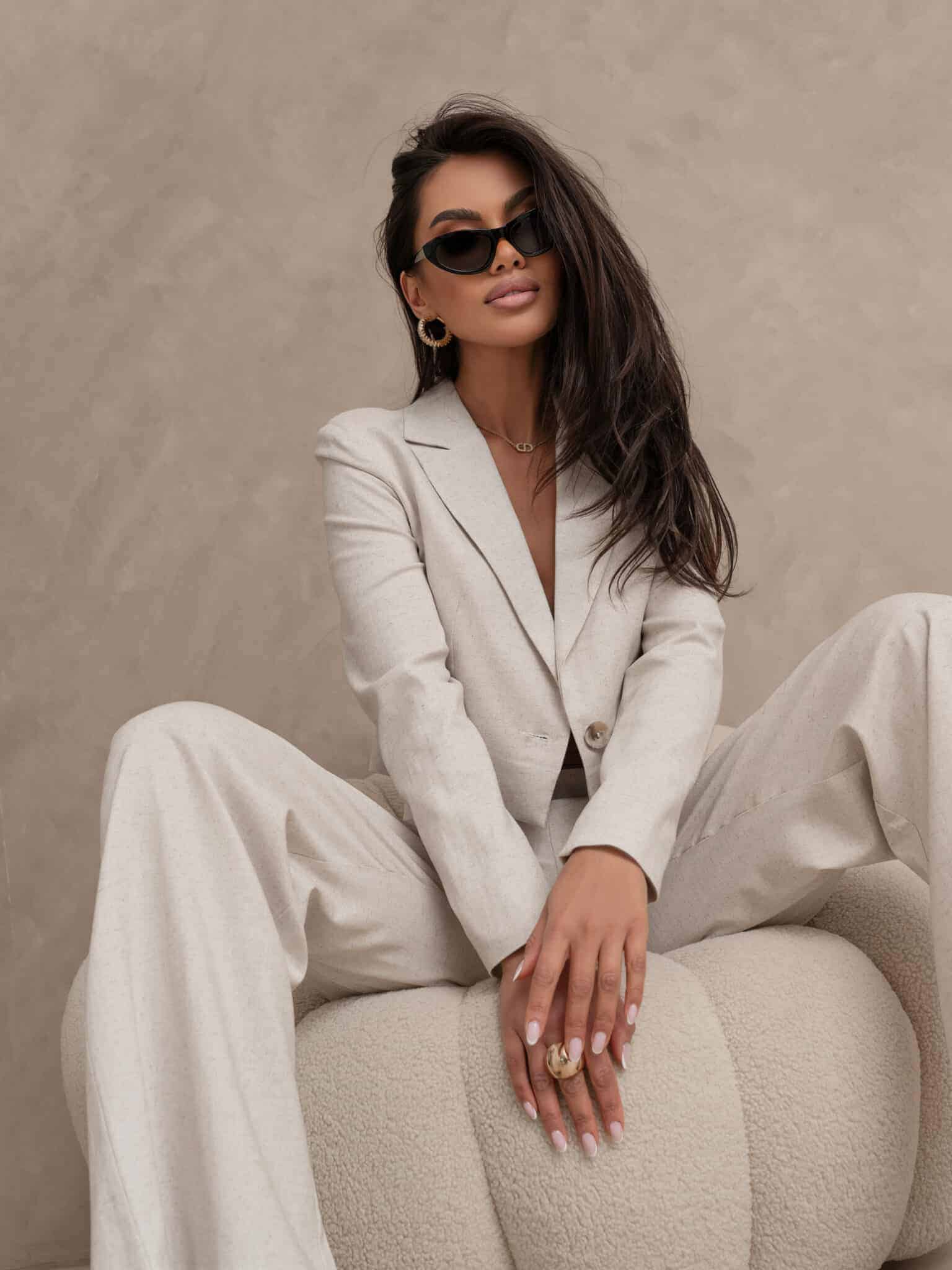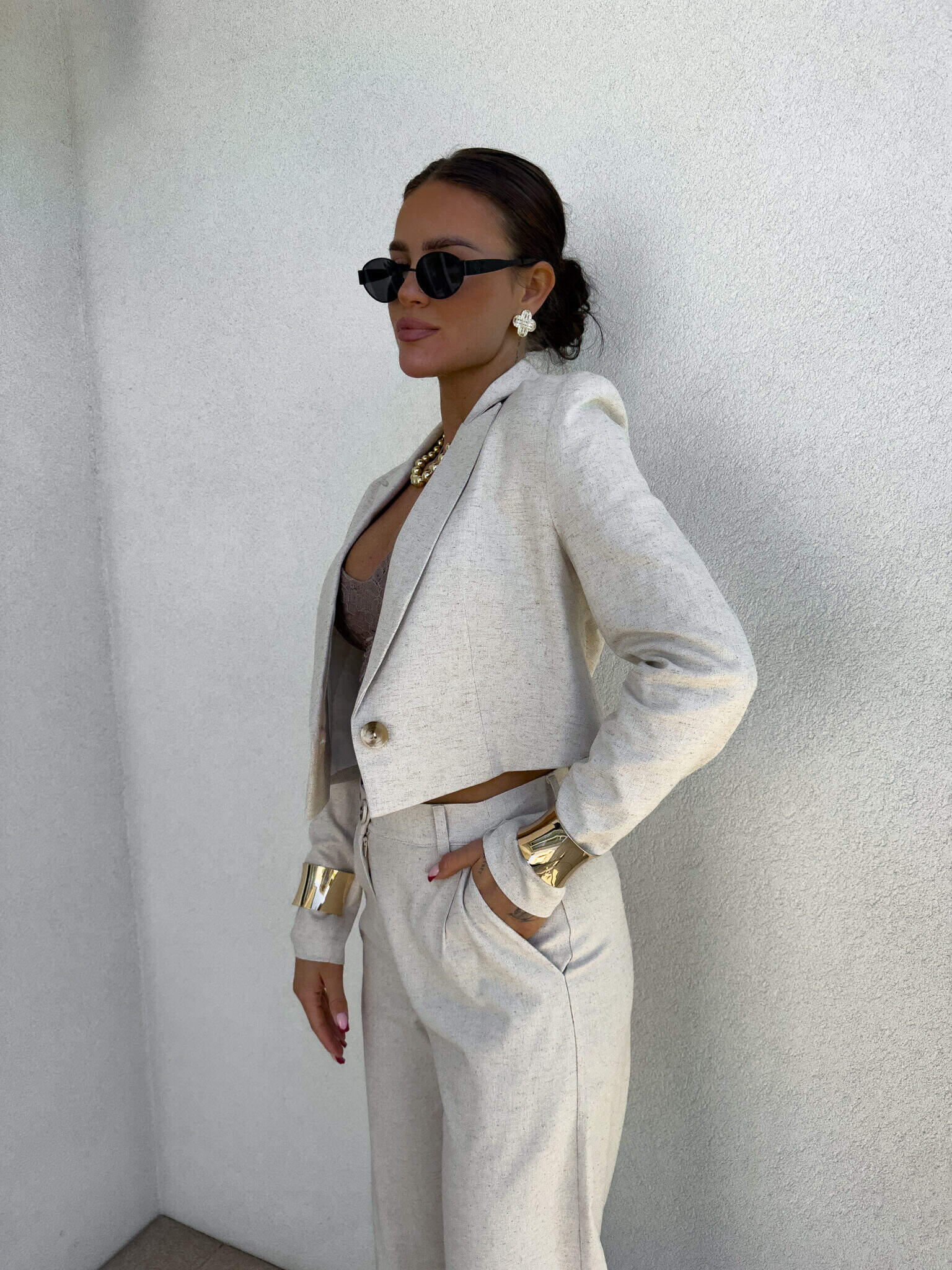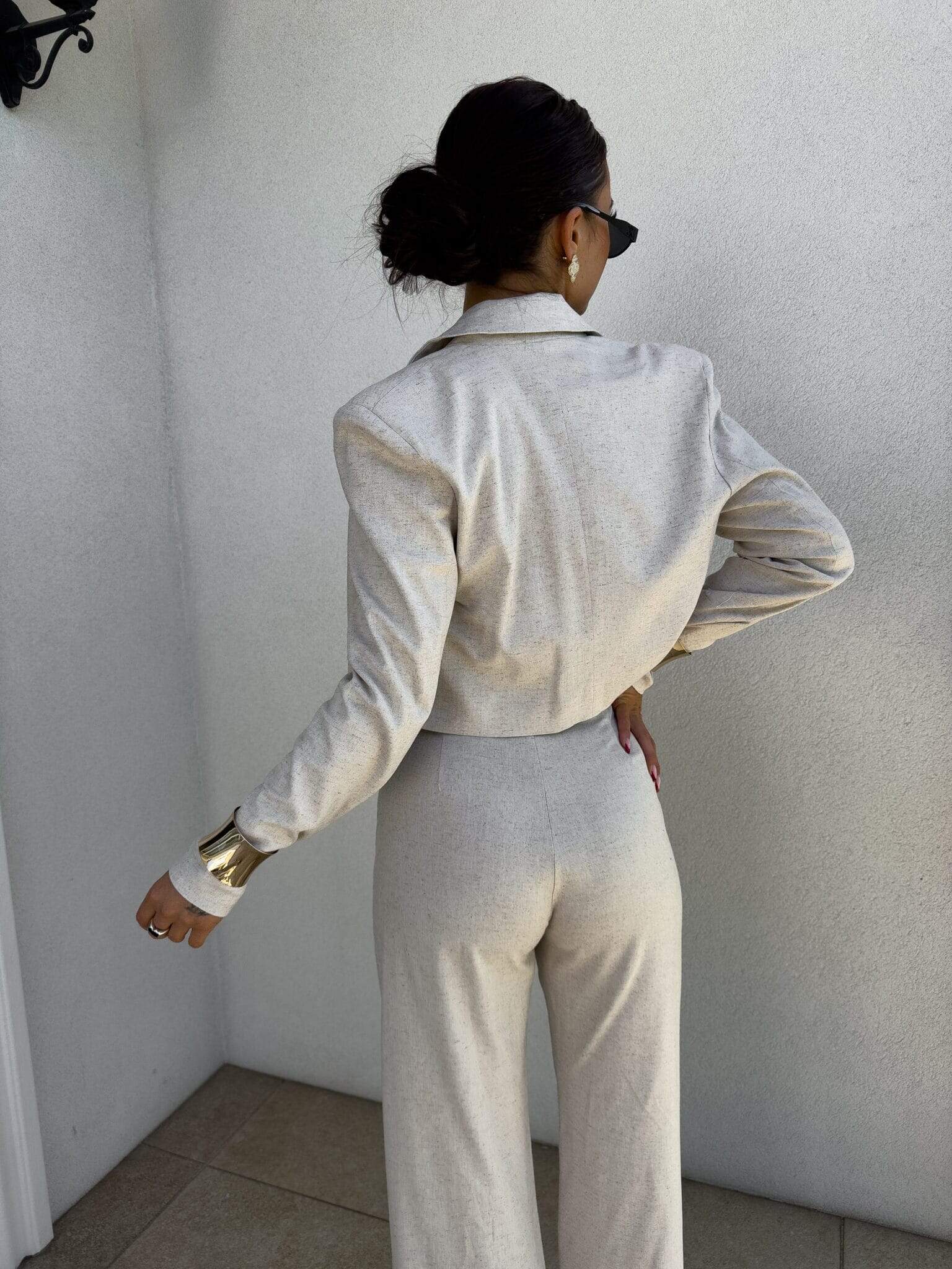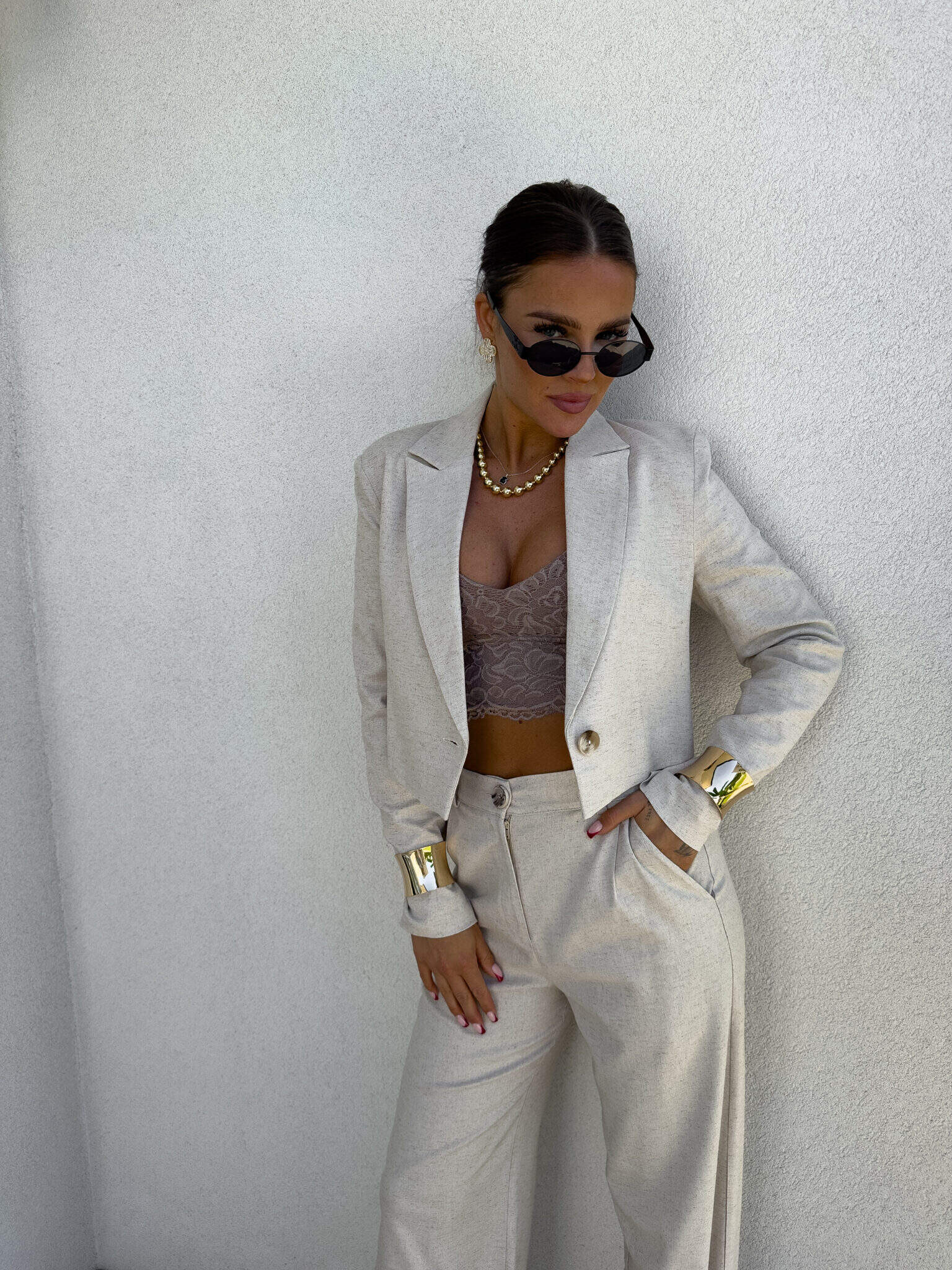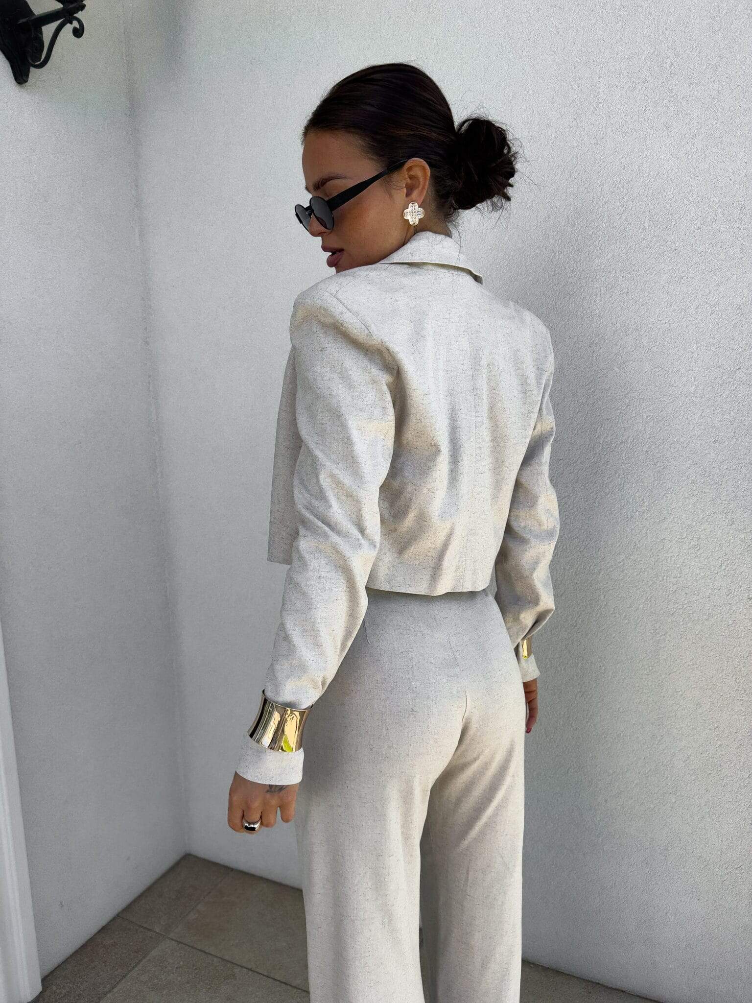 Marynarka o krótkim kroju, gładkie wykończenie. Marynarka posiada podszewkę, zapięcie regulowane przy pomocy guzika.