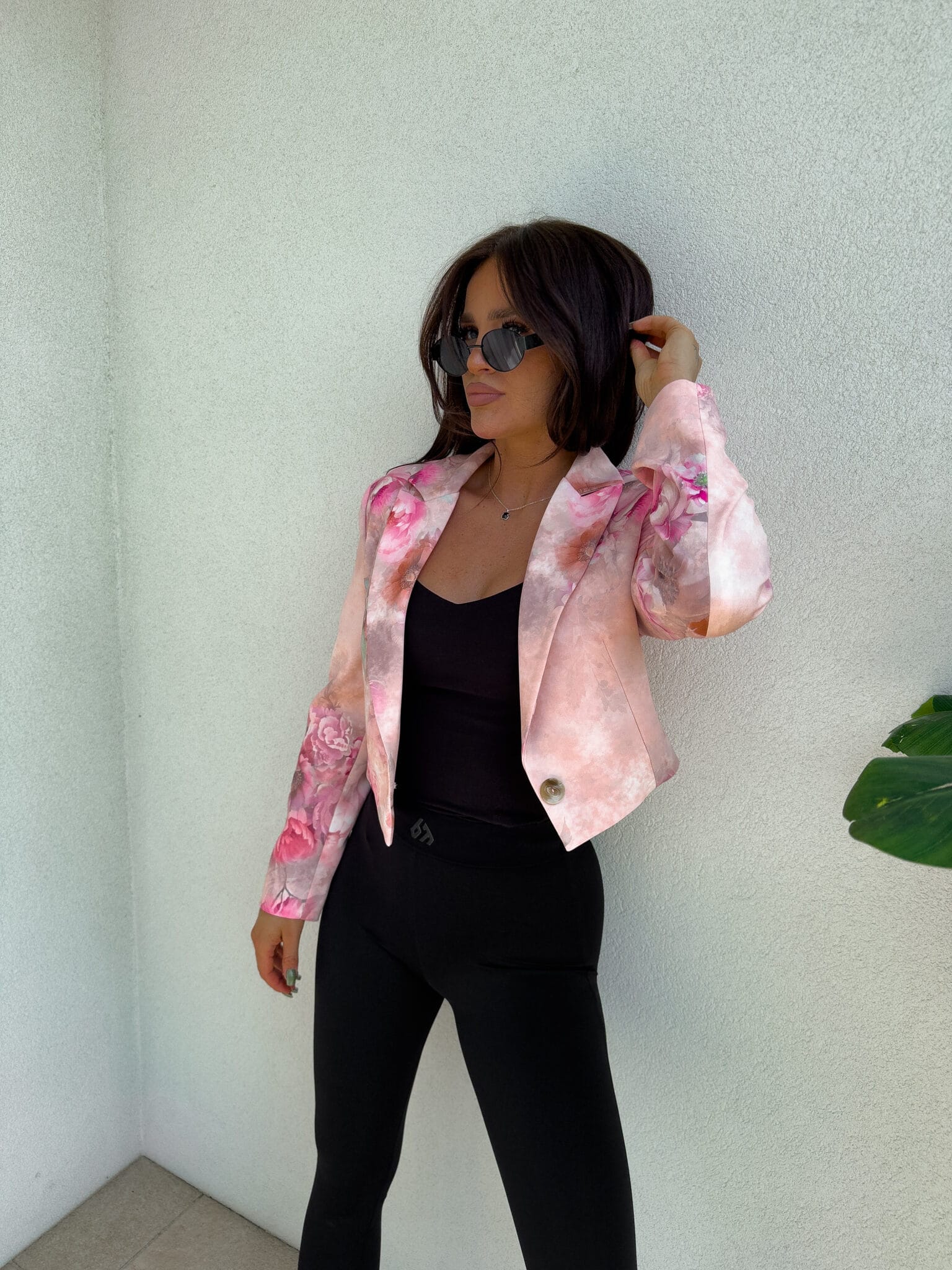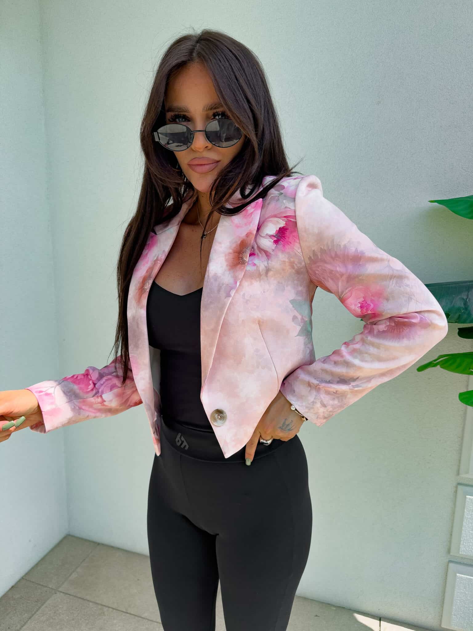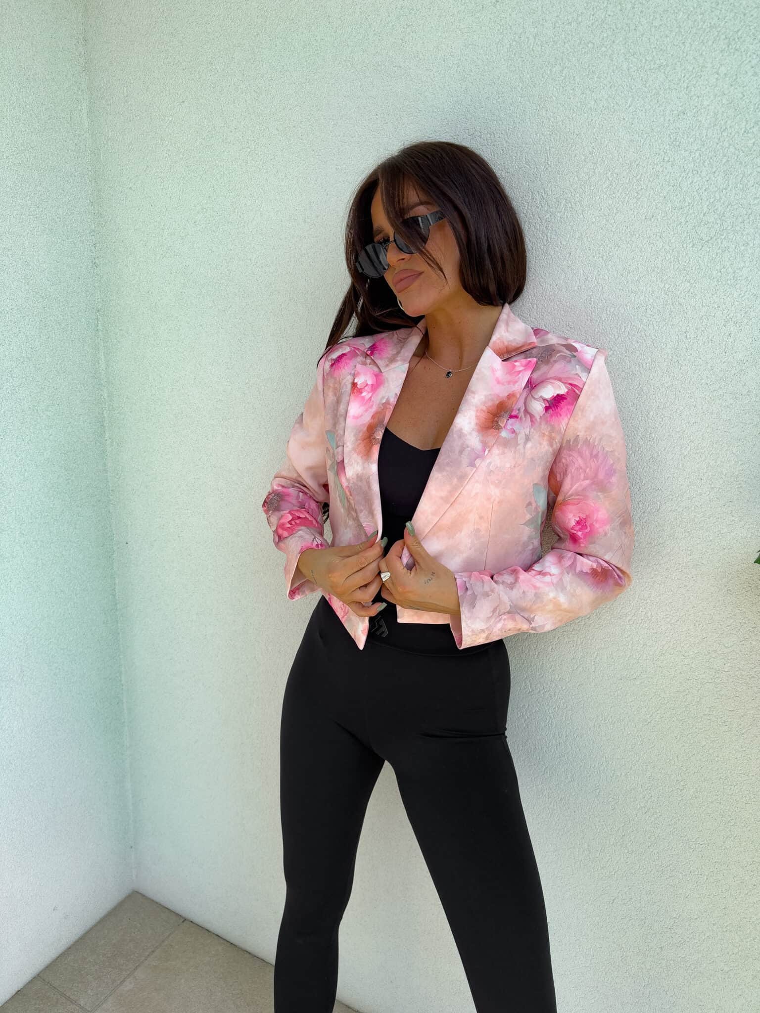 Marynarka o krótkim kroju, gładkie wykończenie. Marynarka posiada podszewkę, zapięcie regulowane przy pomocy guzika.