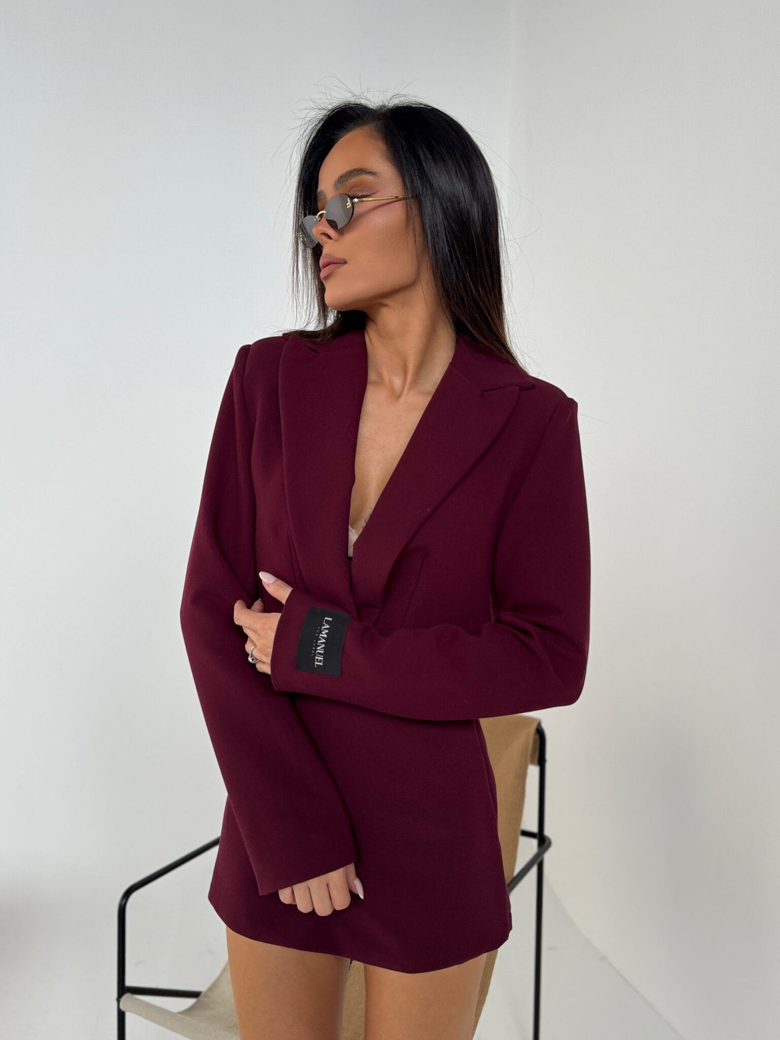 Krótka marynarka o nowoczesnym, pudełkowym kroju. Posiada głęboki dekolt, klasyczny kołnierz oraz długie rękawy zakończone metką z logo. Idealny do stylizacji wieczorowych i codziennych. Świetnie prezentuje się zarówno solo, jak i w komplecie z szortami.Skład: 80% poliester 15% rayon 5% spandex