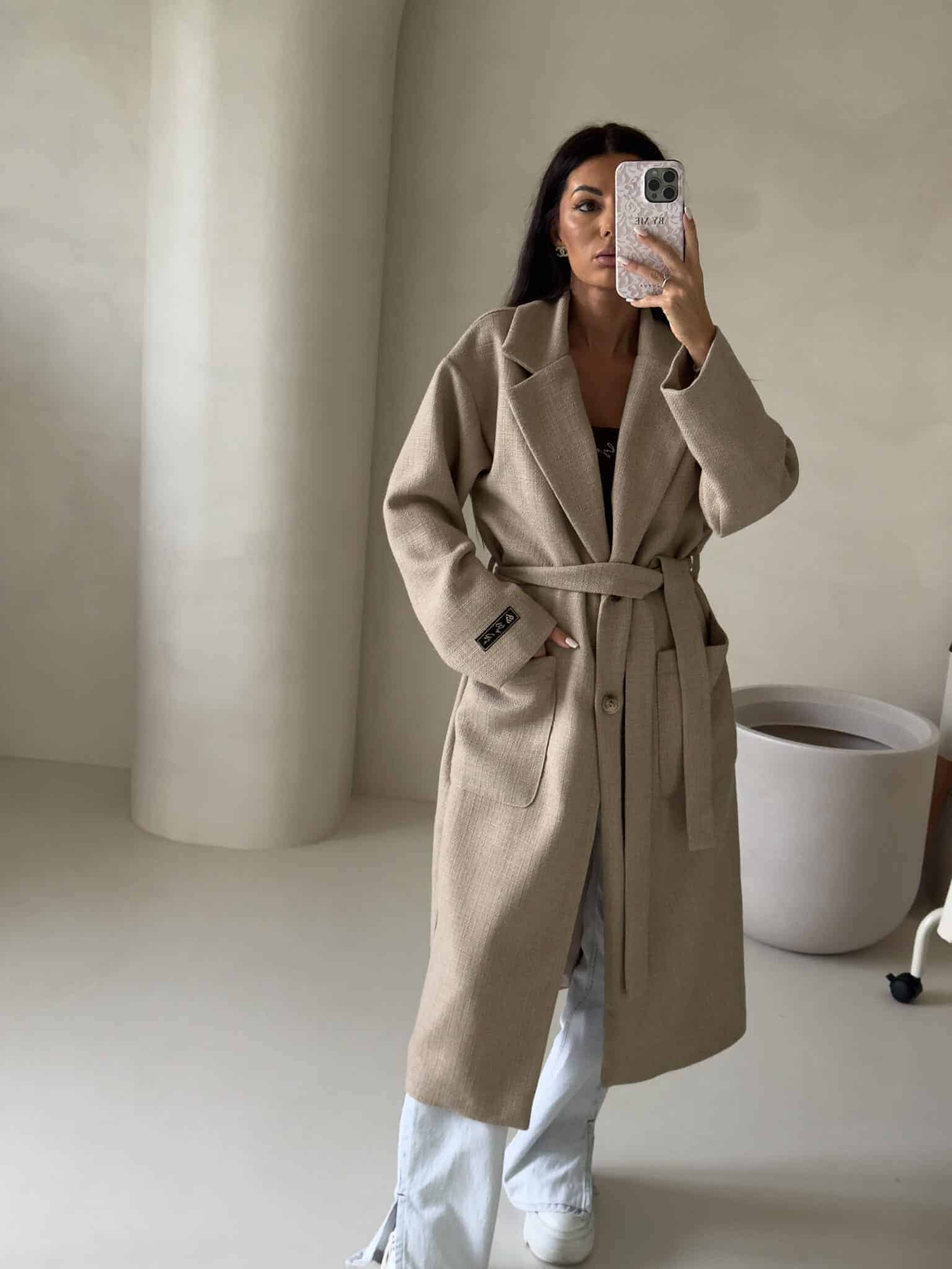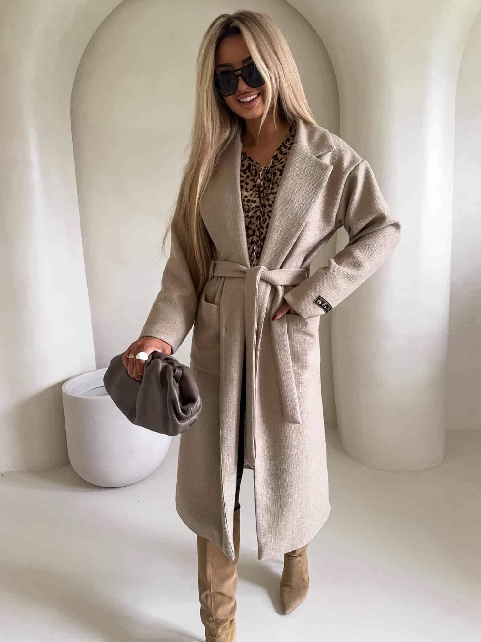 Elegancki płaszcz damski o długości za kolano. Luźny, oversize’owy fason zapewnia swobodę ruchów.