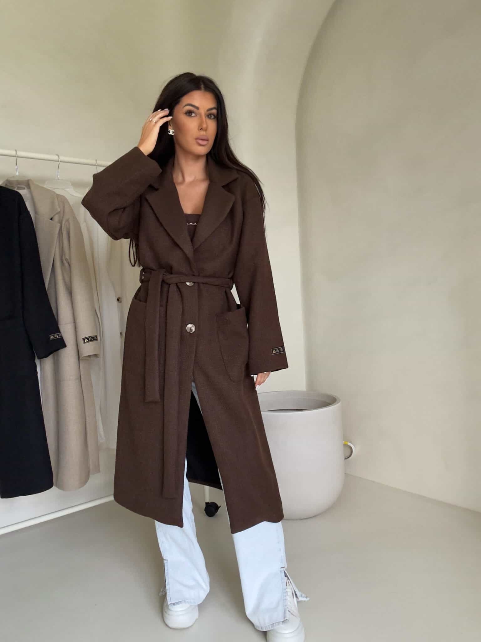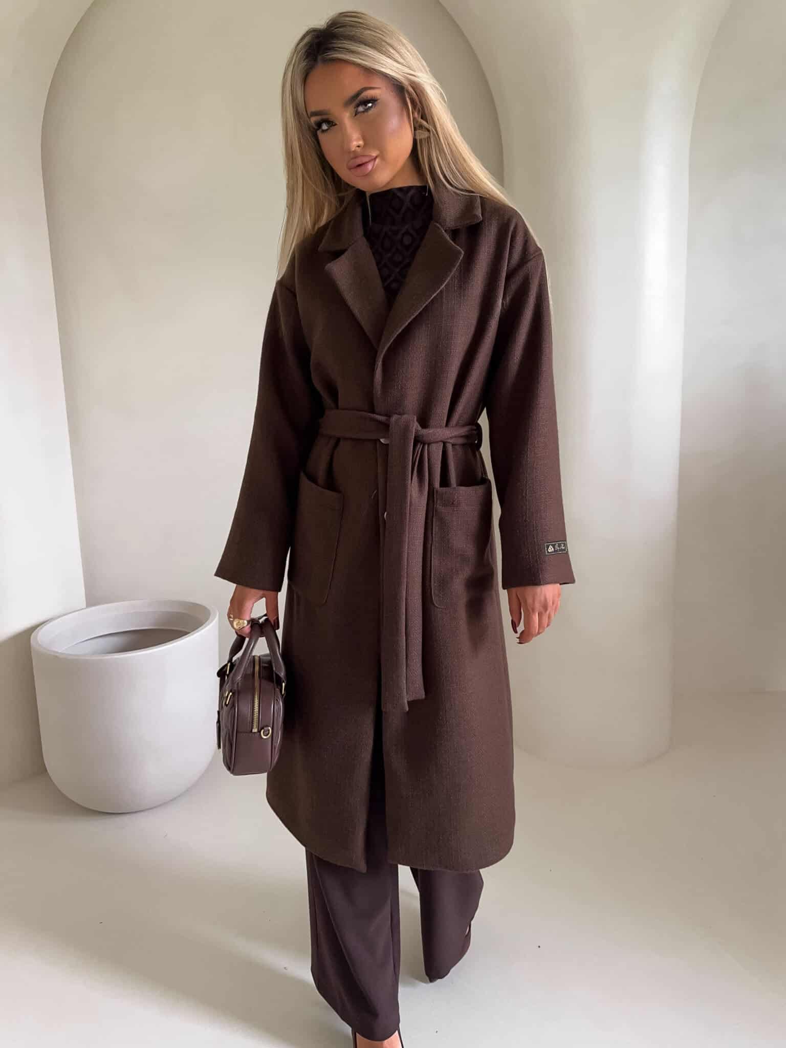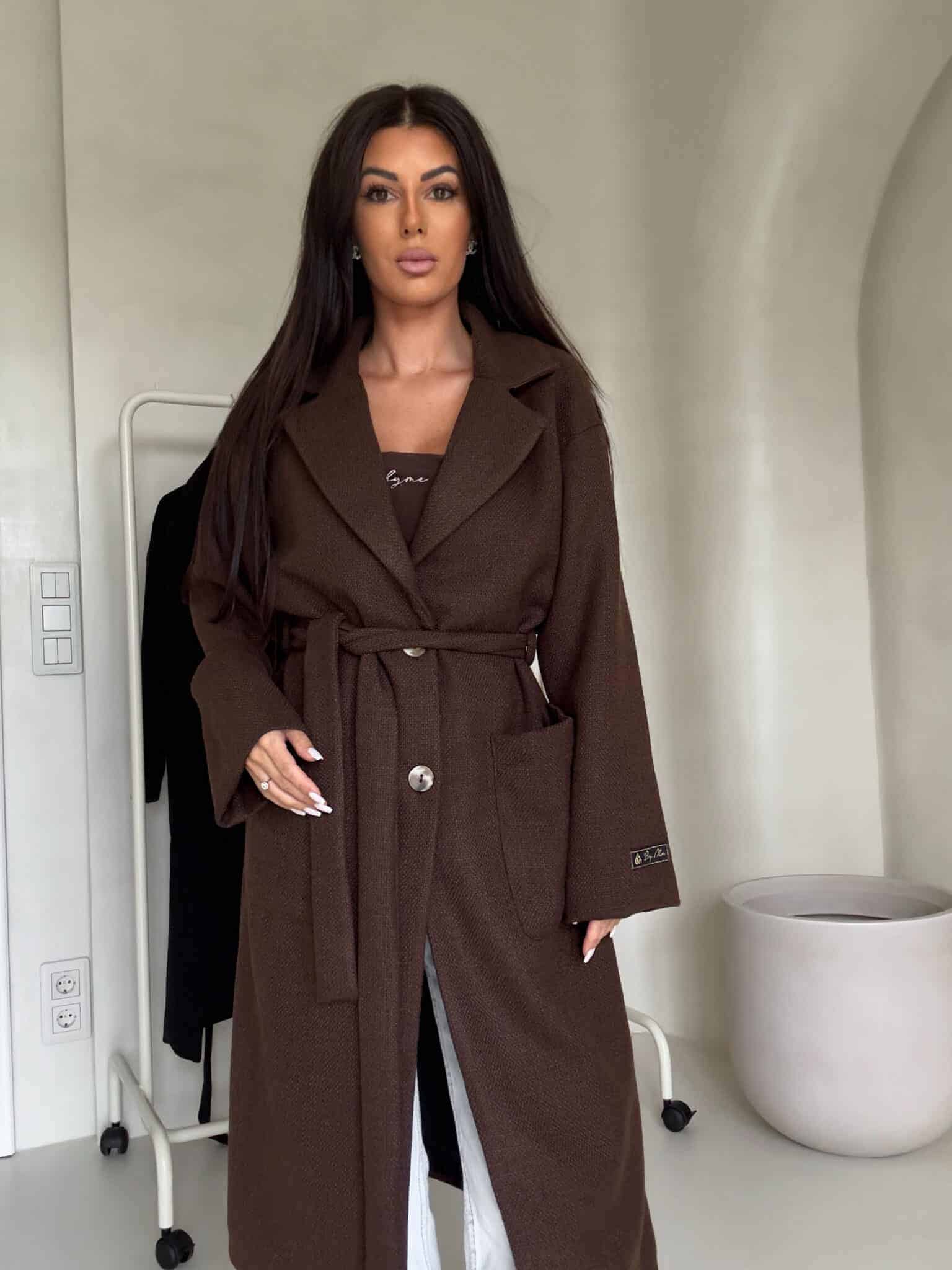 Elegancki płaszcz damski o długości za kolano. Luźny, oversize’owy fason zapewnia swobodę ruchów.