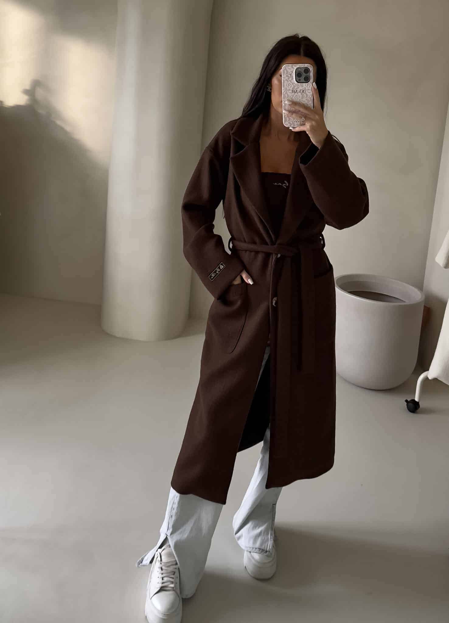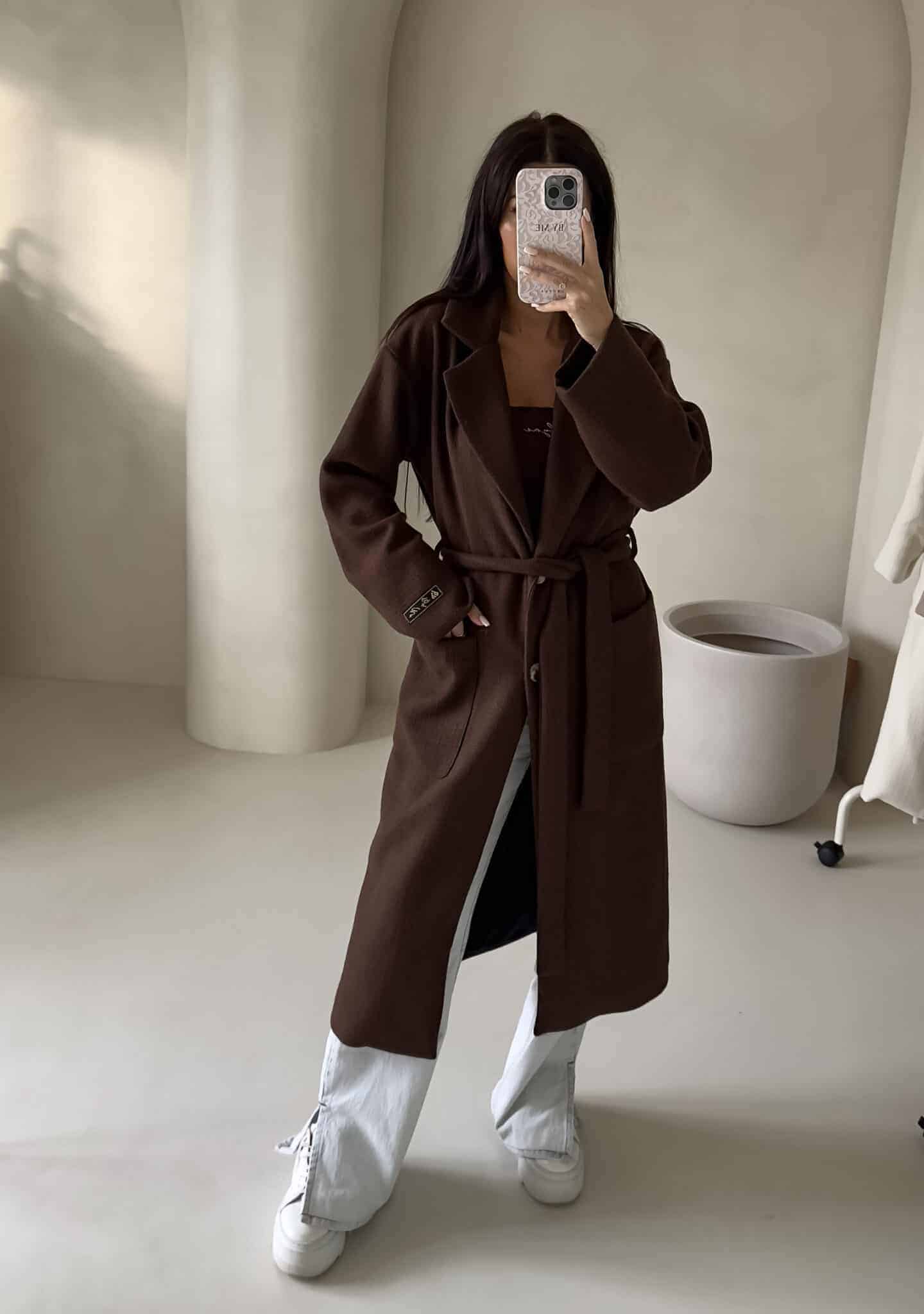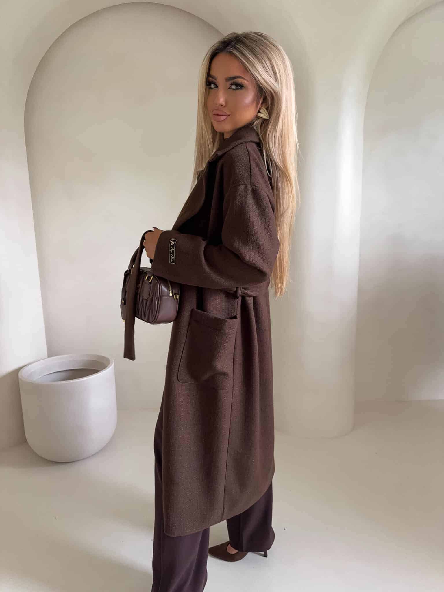 Elegancki płaszcz damski o długości za kolano. Luźny, oversize’owy fason zapewnia swobodę ruchów.