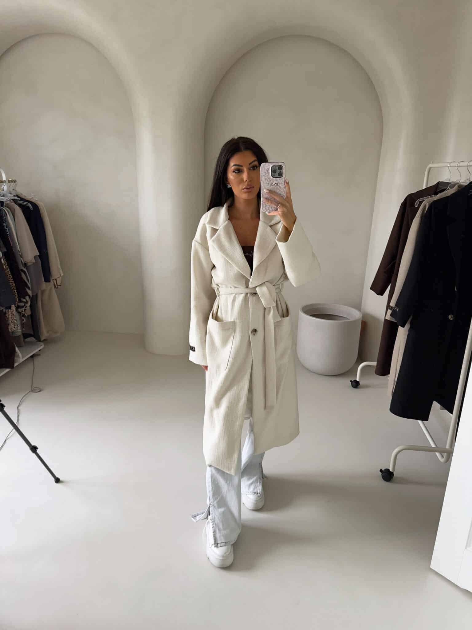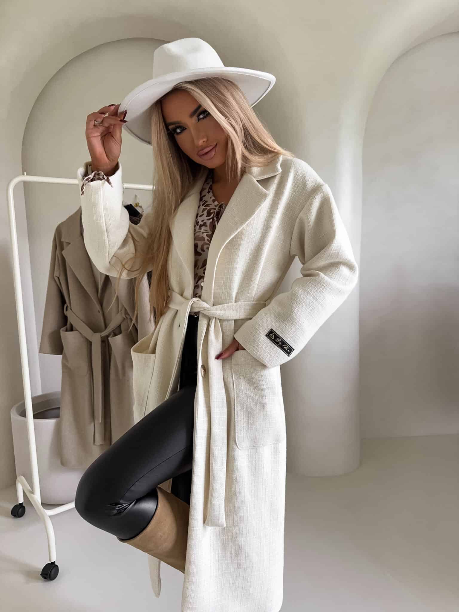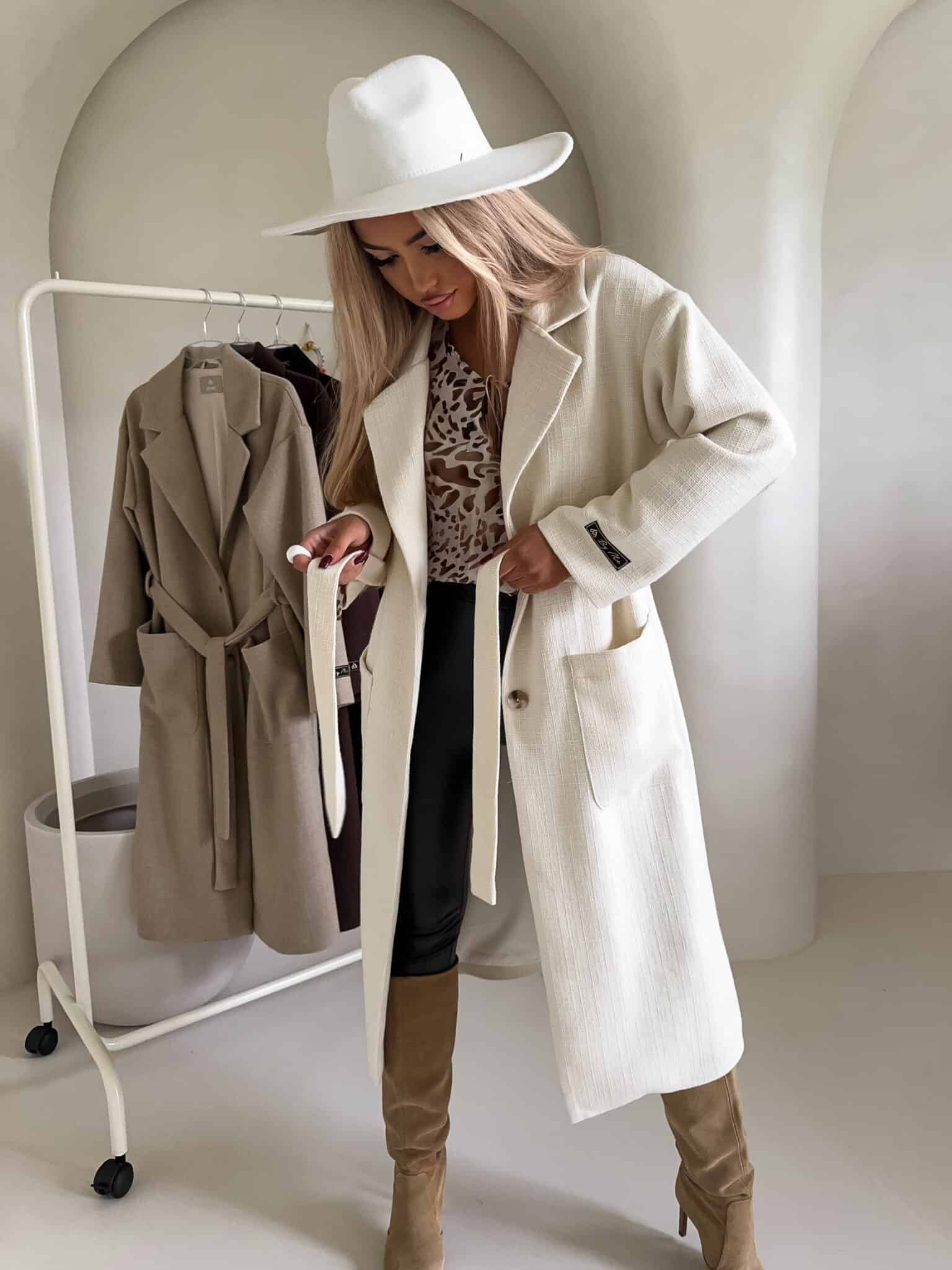 Elegancki płaszcz damski o długości za kolano. Luźny, oversize’owy fason zapewnia swobodę ruchów.