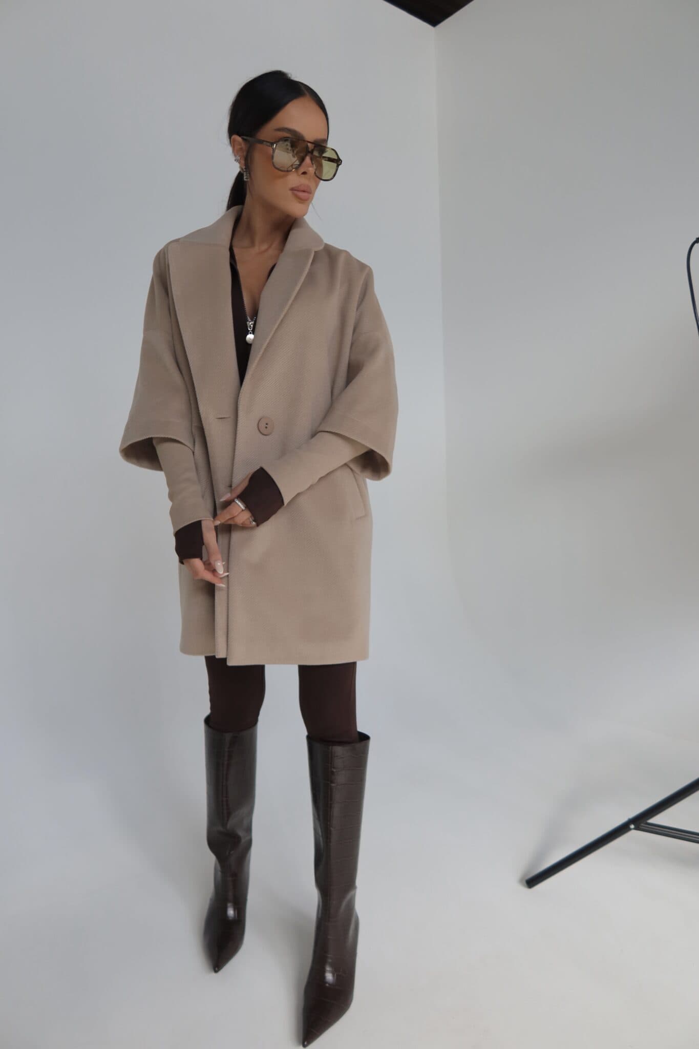 Nasz bestsellerowy płaszcz damski, który zdobył serca wielu kobiet swoim niepowtarzalnym stylem powraca! Płaszcz damski idealny na każdą porę roku, to model, który nie tylko chroni przed zimnem, ale także dodaje klasy i elegancji każdej stylizacji. Ten płaszcz to prawdziwa definicja modnej doskonałości. Wykonany z wysokiej jakości materiałów. Unikatowy rękaw oraz zapinanie na guziki, stanowią nie tylko praktyczny element, ale również designerski detal, który wyróżnia ten płaszcz spośród innych. Jego ponadczasowy krój sprawia, że jest to idealny towarzysz zarówno na co dzień, jak i podczas bardziej formalnych okazji. Długość płaszcza nadaje mu elegancji, a zarazem uniwersalności, pozwalając na swobodne zestawianie z różnymi elementami garderoby.Skład: 70% akryl 30% wełna