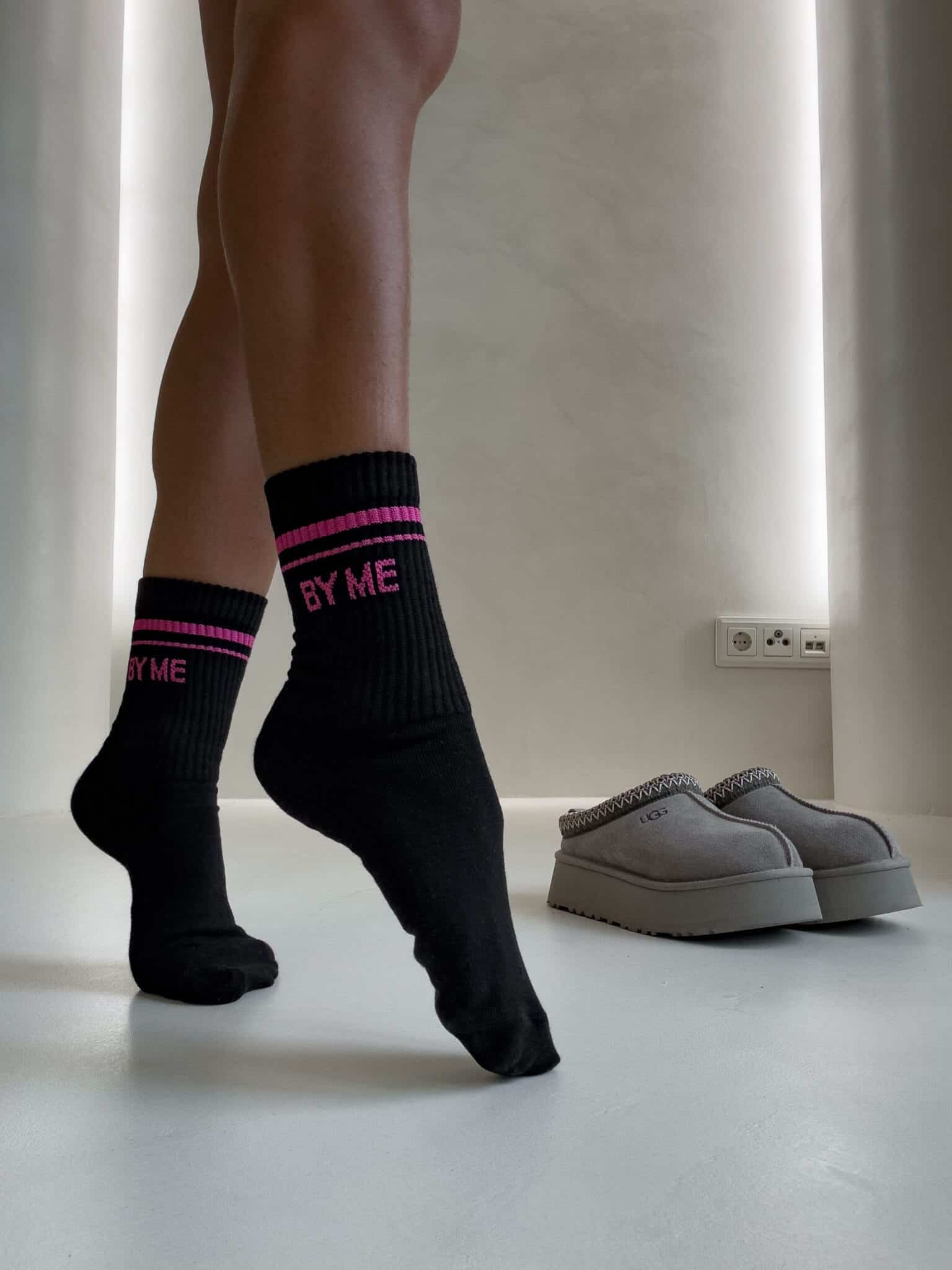 Skarpetki STRIPES – czarno-różowe
