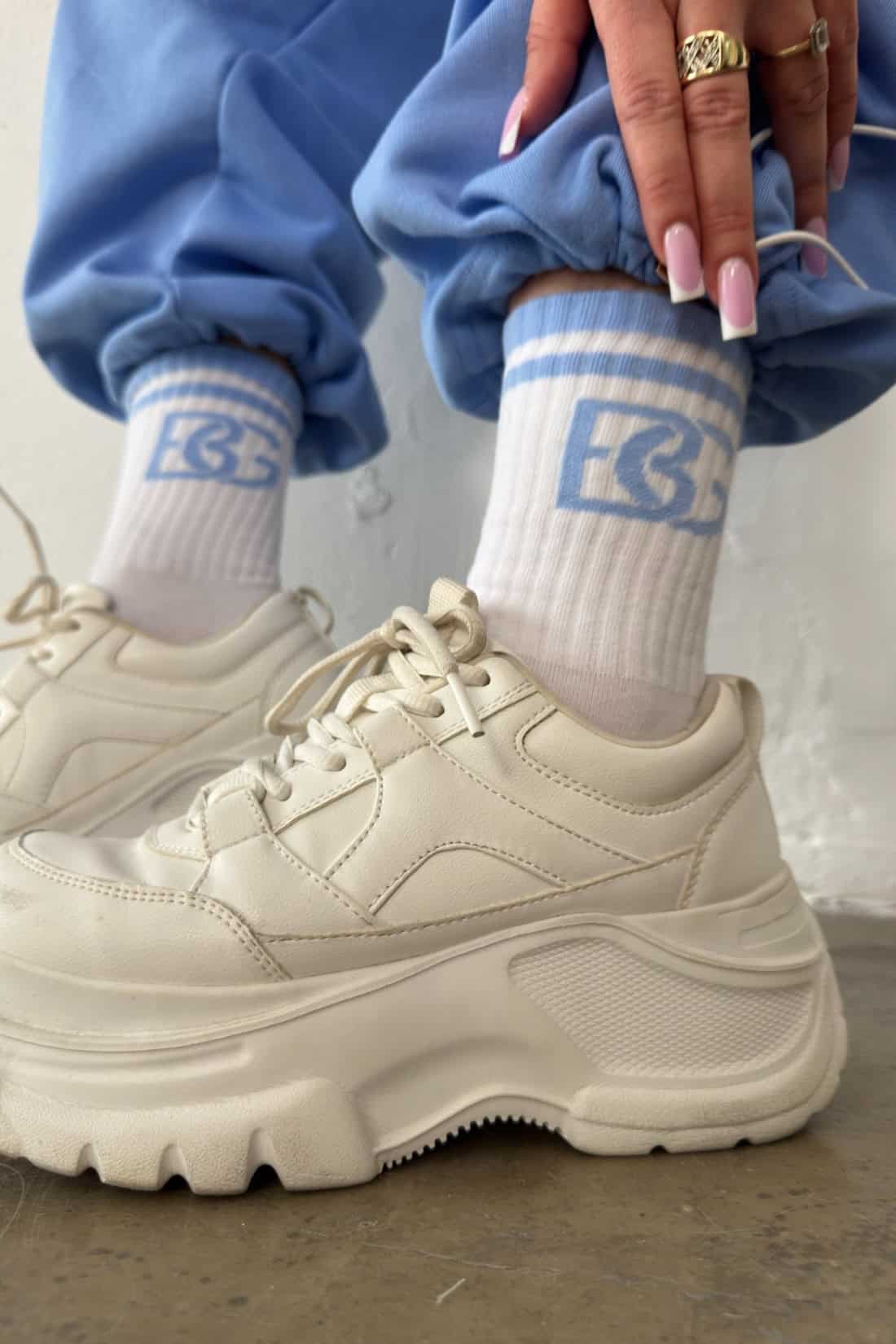 Opis produktu: Bawełniane, długie skarpety z kontrastowym logowaniem BG.