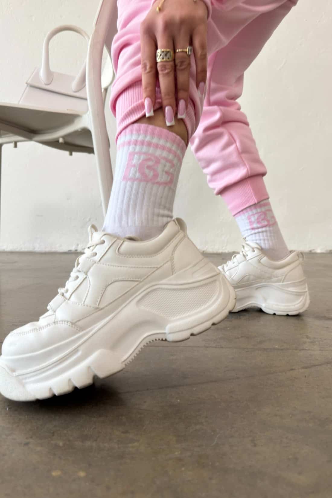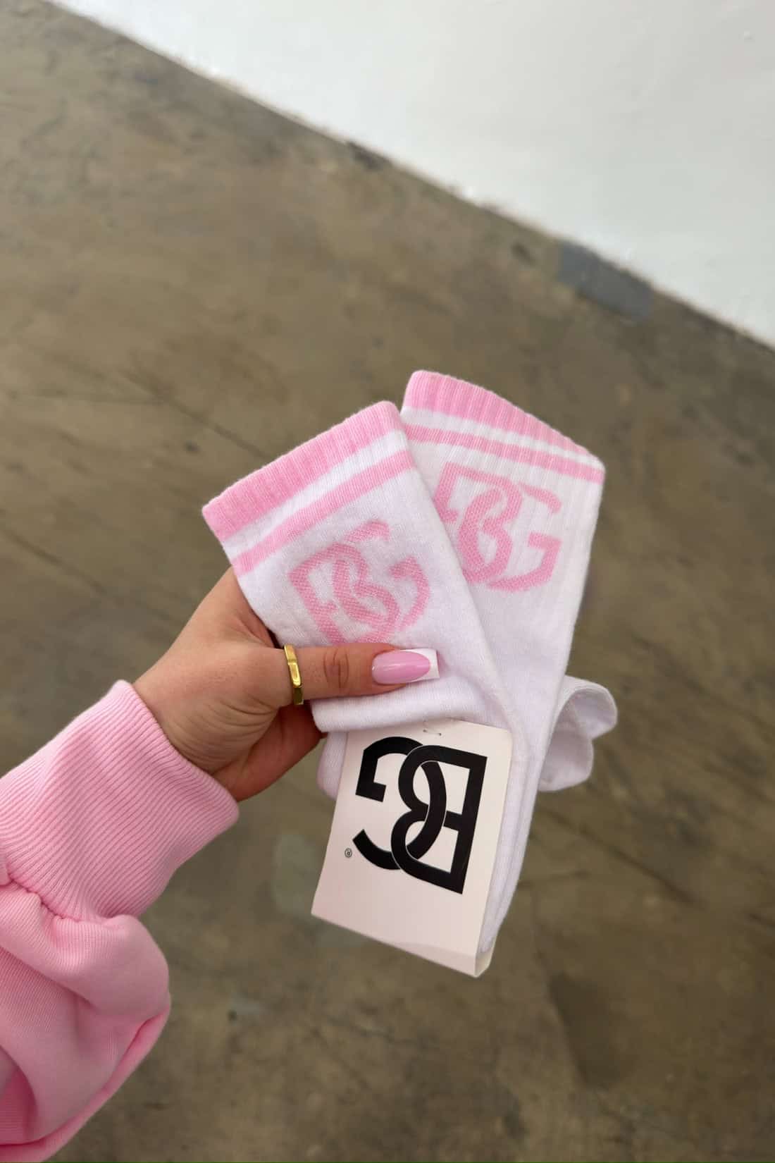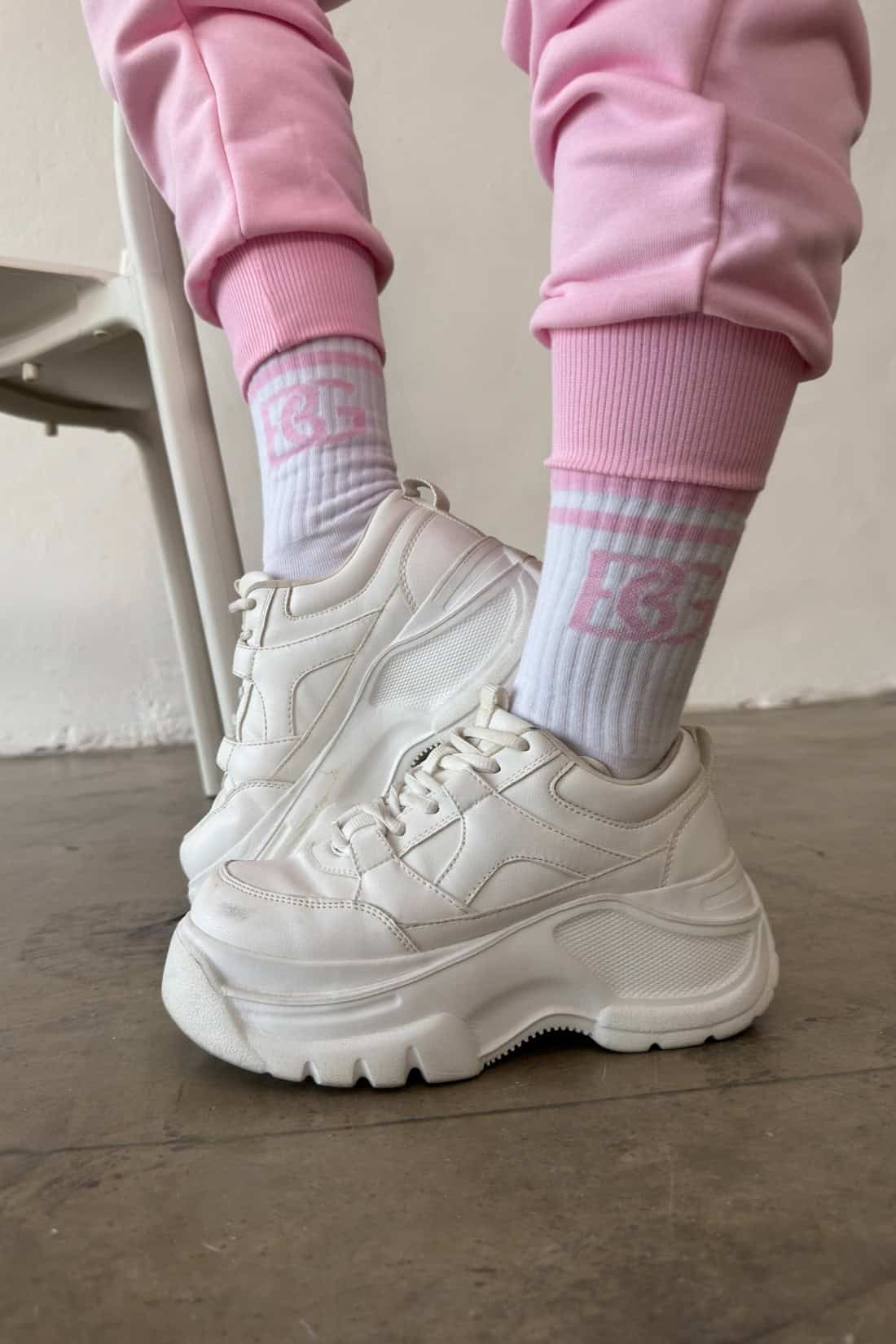 Skarpety BG Frappe | biały – róż jasny