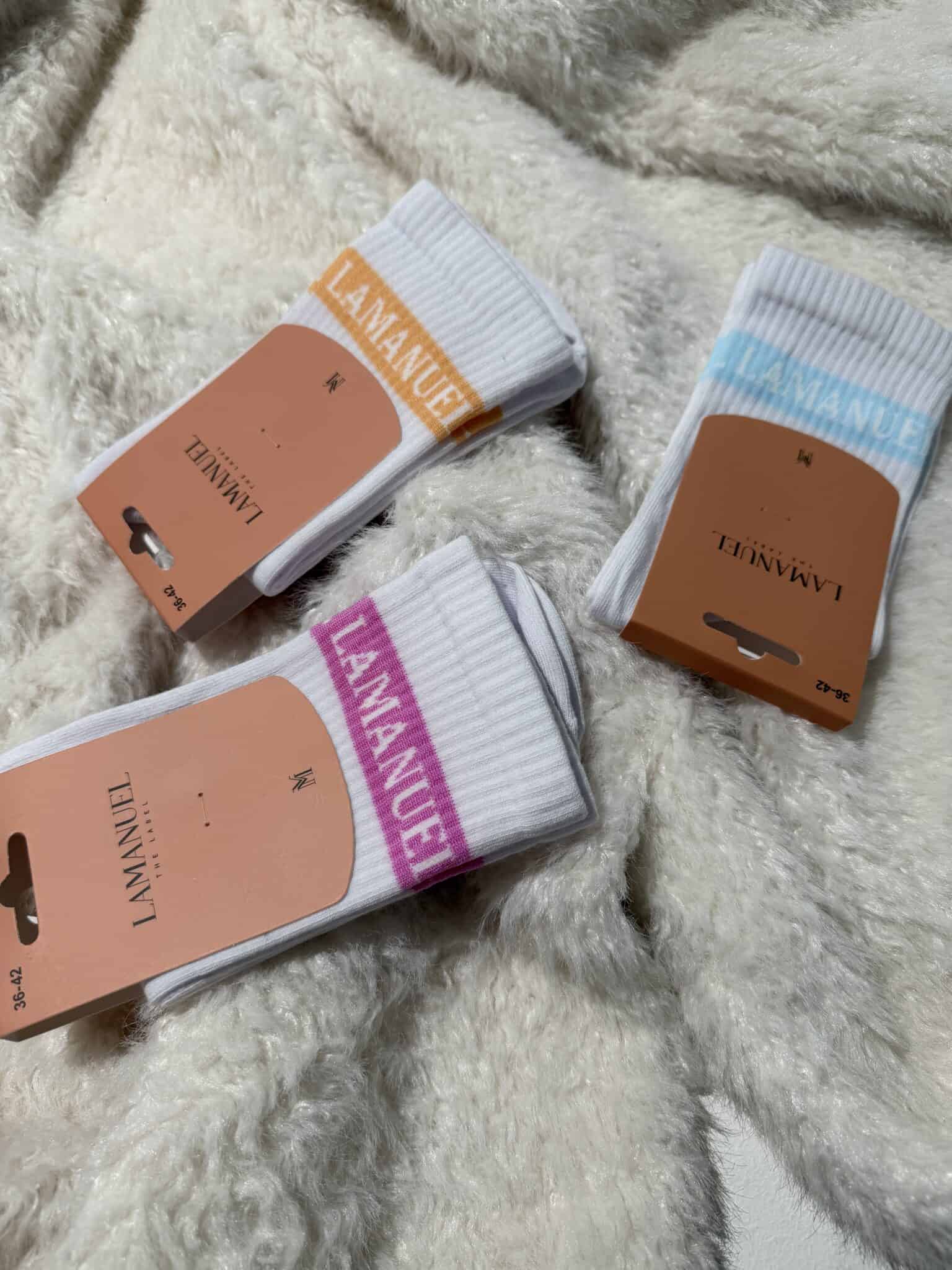 Skarpetki, które nie są tylko dodatkiem, a detalem, który robi cały look. Minimalistyczne, ale nie nudne. Klasyczna biel przełamana kolorowym brandingiem lamanuel – dokładnie w tych odcieniach, które przyciągają wzrok, ale nie krzyczą. Wysokość idealna: do sneakersów, workerów, a nawet do stylizacji z klapkami, jeśli klientka ma odwagę bawić się modą. Ściągacz trzyma, ale nie uciska – zero kompromisów na komforcie. Ten model będzie znikał z półek, bo jest czymś, czego wciąż brakuje w hurtowej ofercie: prosty, dopracowany, do noszenia na co dzień, ale wciąż w klimacie marki. I tak, Twoje klientki będą pytać, czy można zamówić więcej.