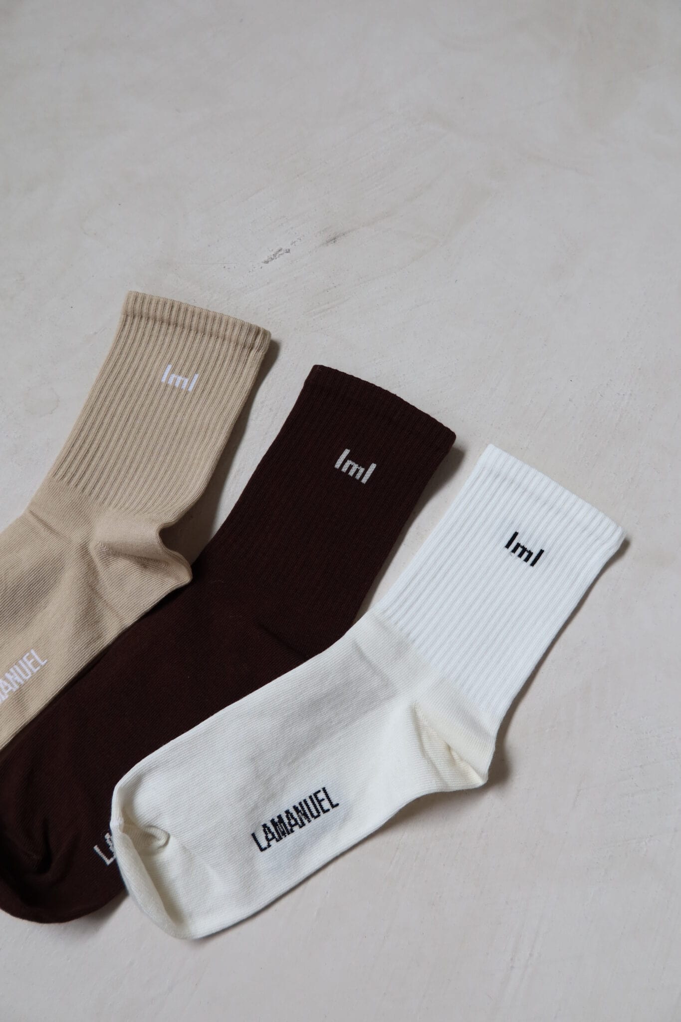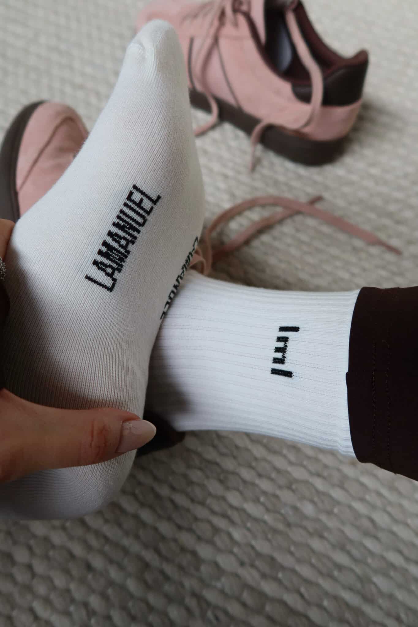 Ribbed skarpety wykonane z miękkiej, elastycznej bawełny z dodatkiem przędzy elastycznej, która zapewnia idealne dopasowanie do stopy. Ściągacz o średniej wysokości dobrze trzyma się łydki, nie uciskając. Minimalistyczne logo „lml” przy kostce i „LAMANUEL” na spodzie dodają charakteru w stylu sport-luxe. Idealne do sneakersów, workerów i botków – stylowy detal, który podkręca każdą stylizację.Pasują od rozmiaru 36-42