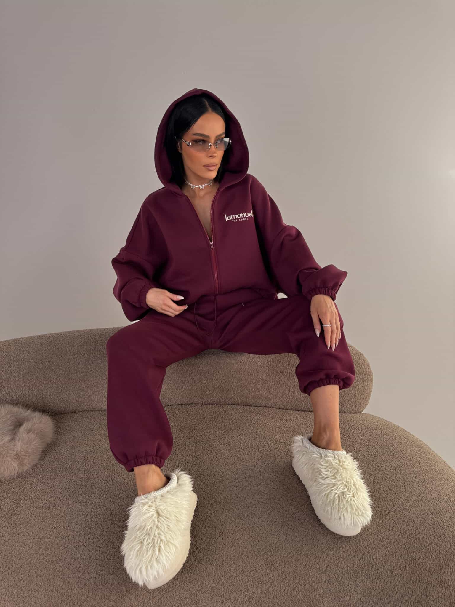 Oversize’owe spodnie z dzianiny drapanej to totalny chill level pro – grubszy materiał od środka to miękki „misiek”, który otula jak kocyk, ale nie wygląda jak piżama tylko jak dobrze przemyślany street look, mają wysoką talię z elastycznym pasem, luźną nogawkę i logo LAMANUEL, które robi robotę i daje ten detal, który od razu mówi: to nie są zwykłe dresy, to dresy z charakterem.Skład: 90% bawełna 10% poliester