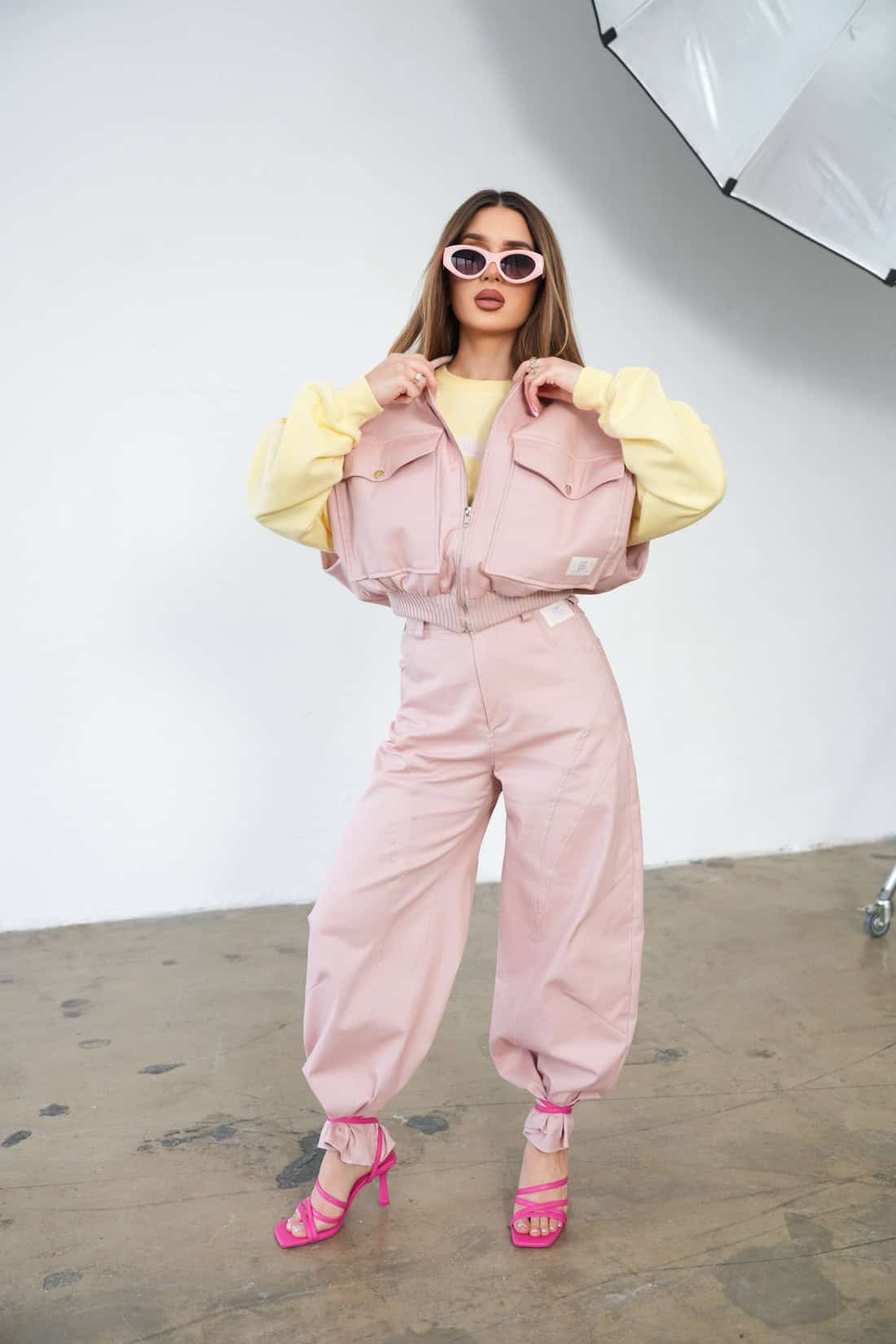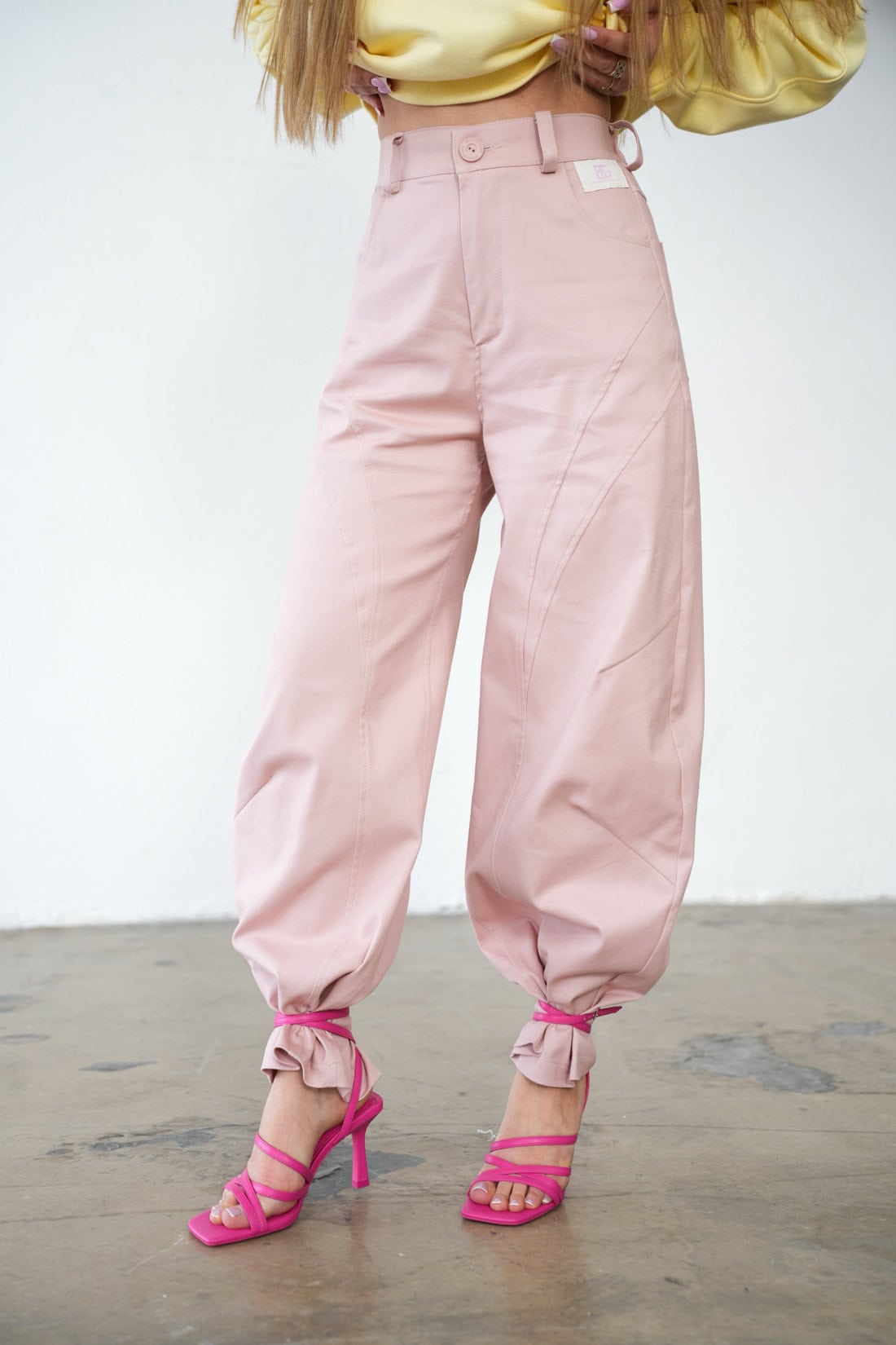Opis produktu: Spodnie BG GINNY z bawełnianego jeansu. Spodnie o balonowym kroju z ozdobnymi przeszyciami na przodzie. Spodnie zapinane na suwak oraz guzik. Dodatkowo z tyłu w pasku gumka umożliwiająca regulację i lepsze dopasowanie rozmiaru. Dodatkowo szlufki. W lewej kieszeni pod paskiem naszywka z logo marki BG Brandenburg Couture.