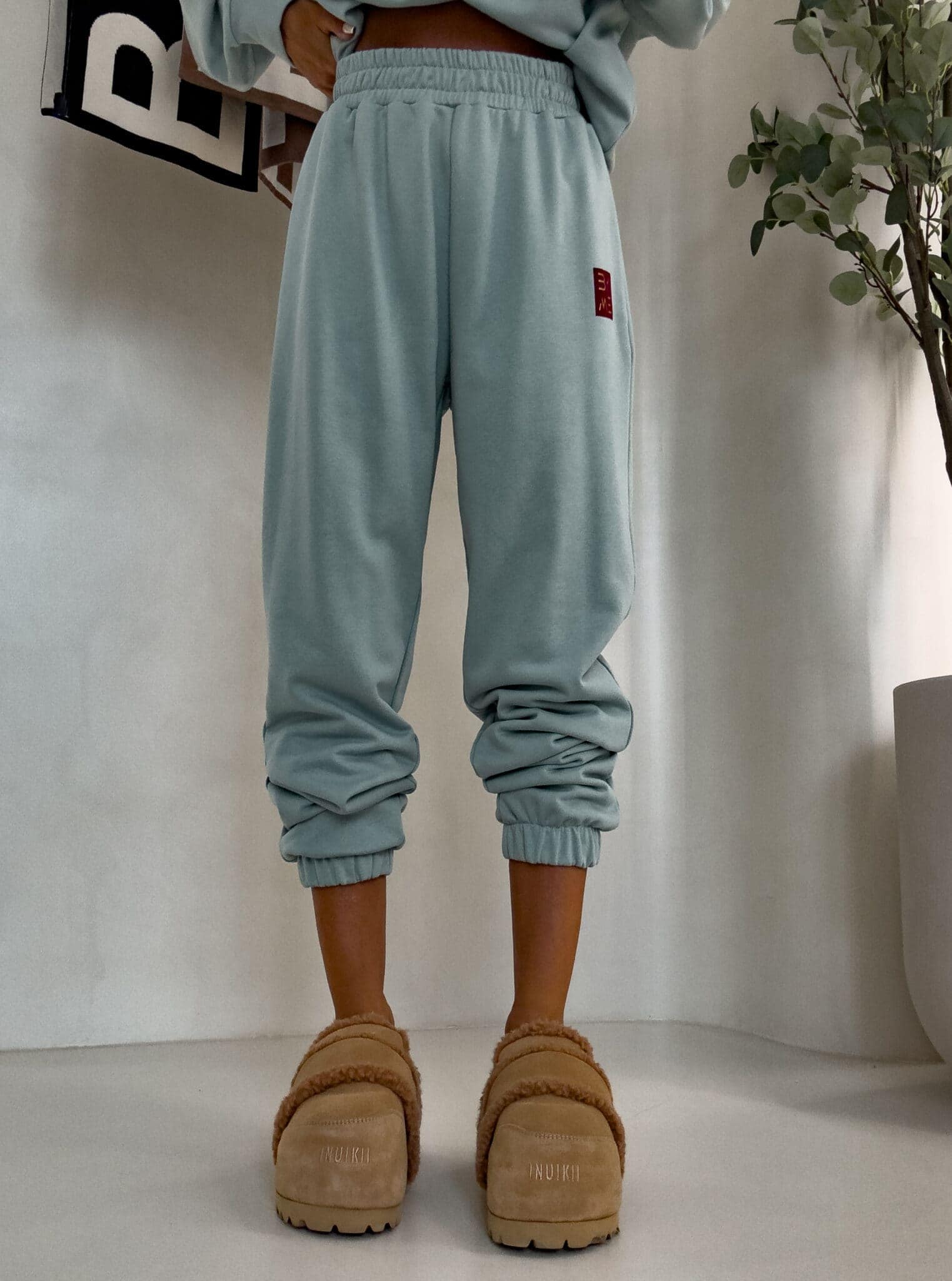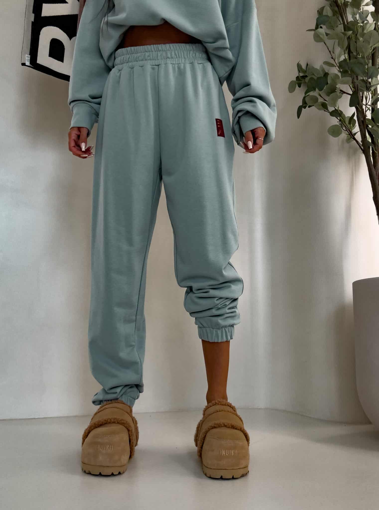 Spodnie dresowe – dopasowane, z elastycznym pasem w talii i ściągaczami na dole nogawek. Ich krój podkreśla sylwetkę, zachowując jednocześnie pełną swobodę ruchów.