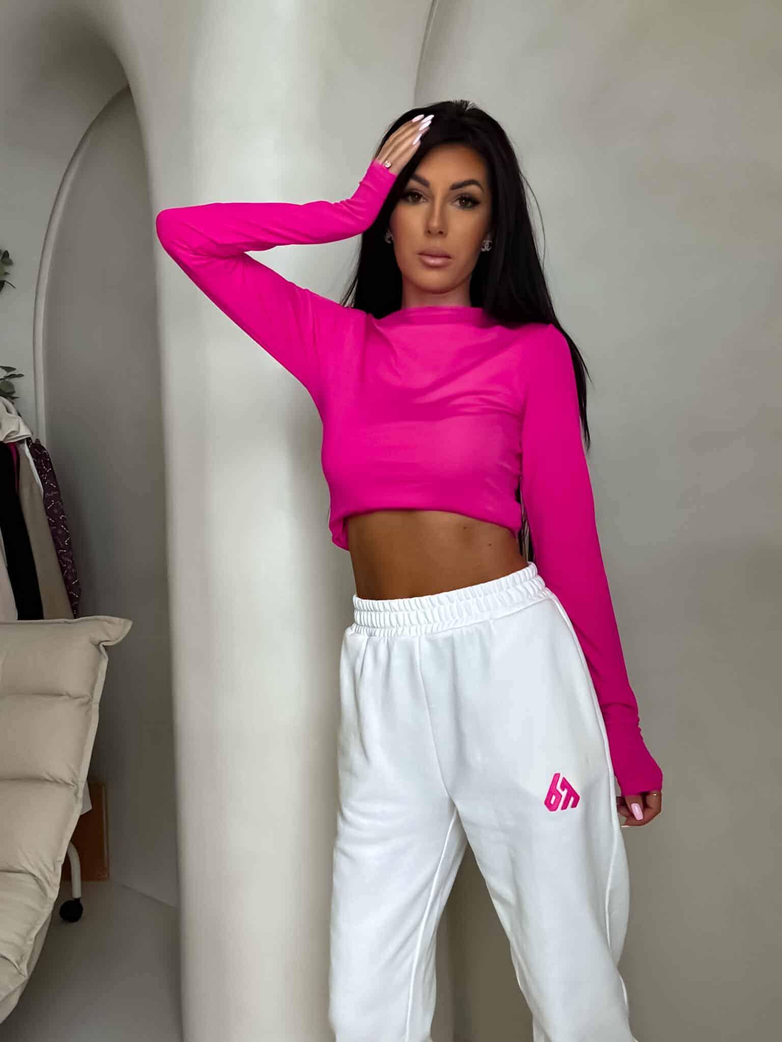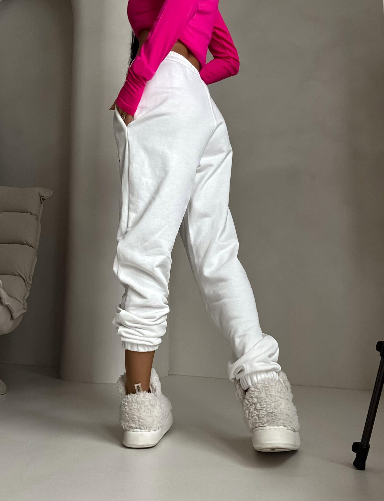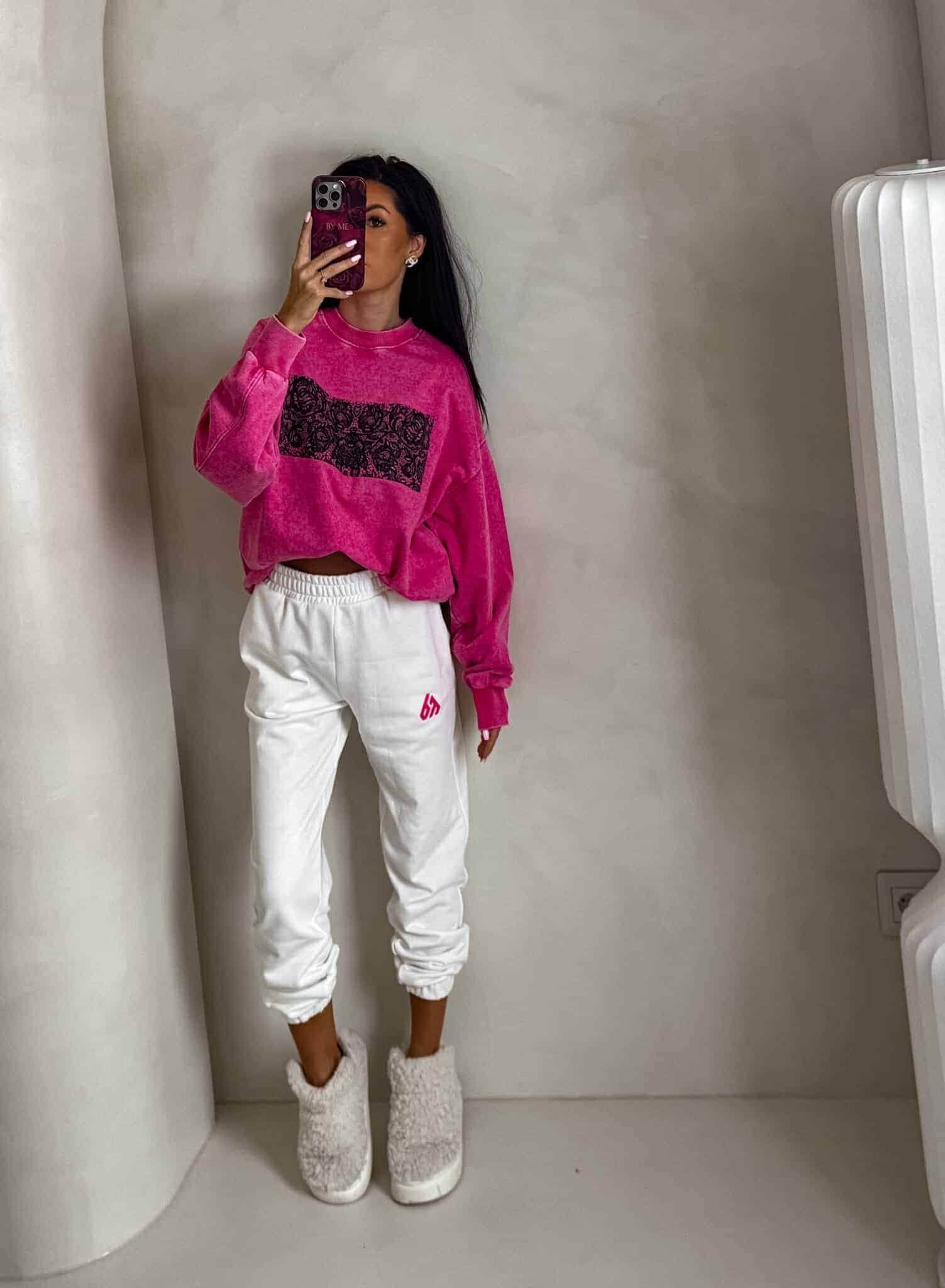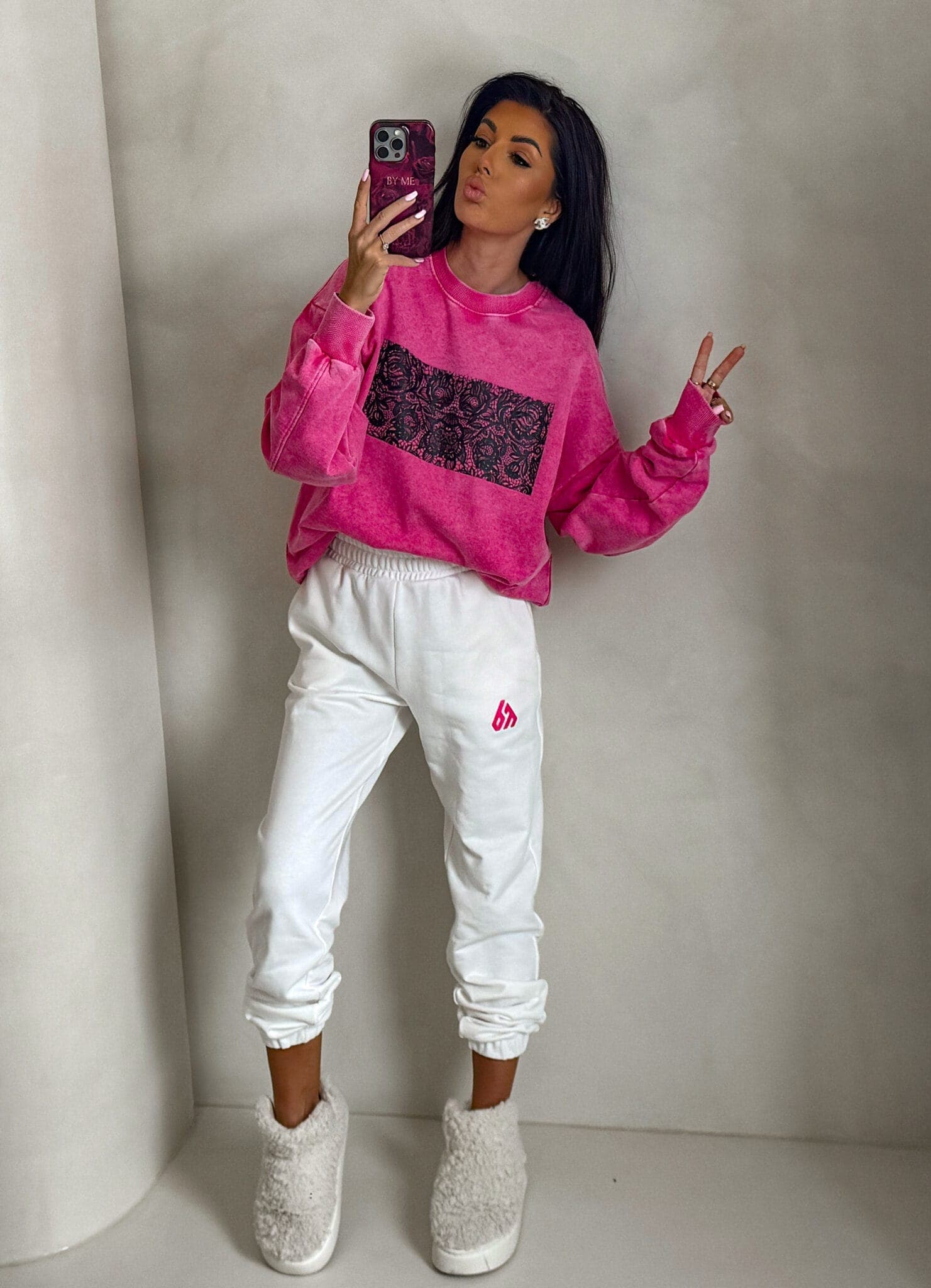 Spodnie dresowe – dopasowane, z elastycznym pasem w talii i ściągaczami na dole nogawek. Ich krój podkreśla sylwetkę, zachowując jednocześnie pełną swobodę ruchów.