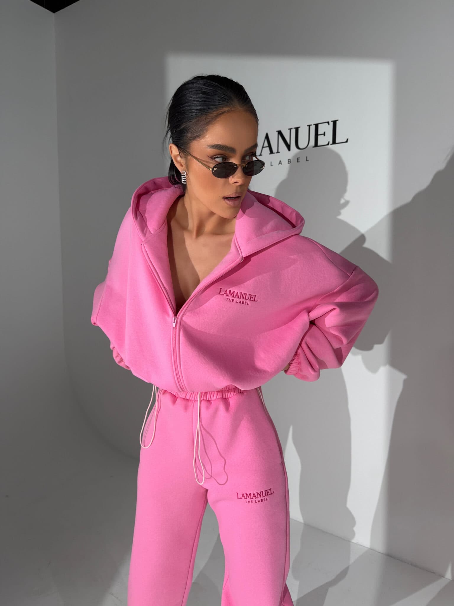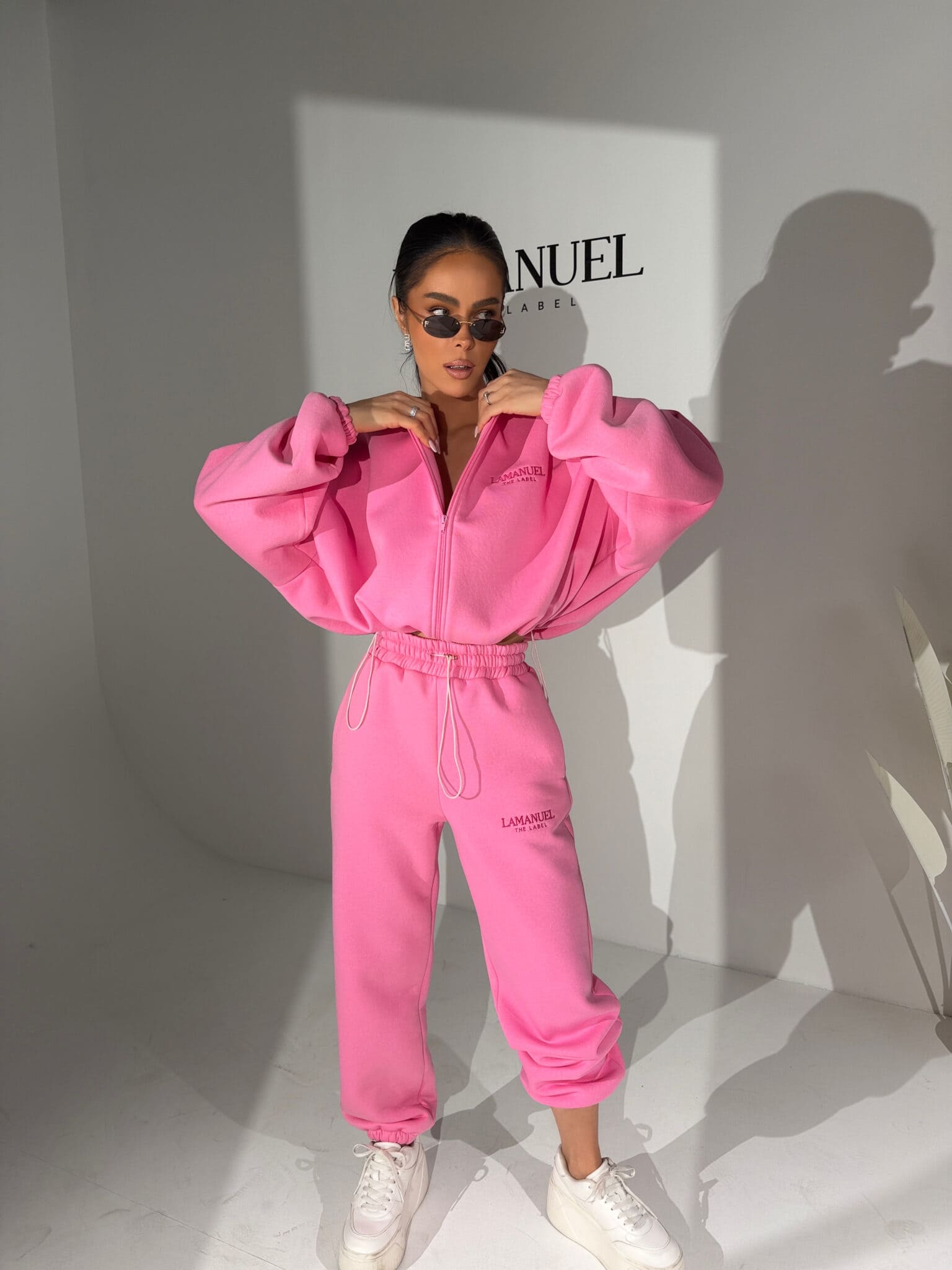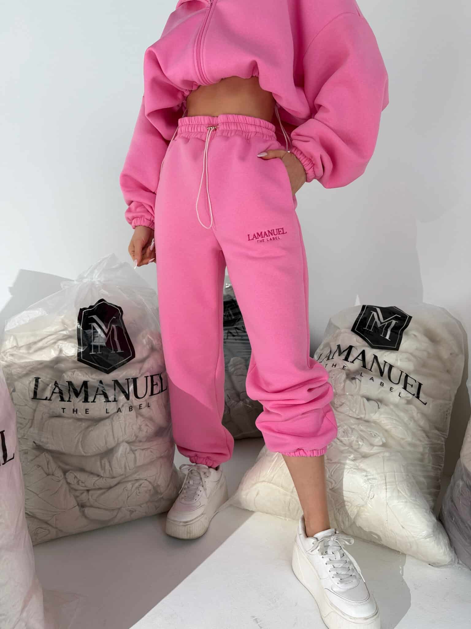 Kultowy krój dresów z wysokim stanem i regulacją w pasie wraca w nowej, wiosennej wersji kolorystycznej. Ten sam miękki materiał, te same idealne proporcje, ta sama wygoda. Logo LAMANUEL w formie haftu podkreśla jakość, a dopasowane detale sprawiają, że to must-have na nowy sezon.Skład: 90% bawełna 10% poliester
