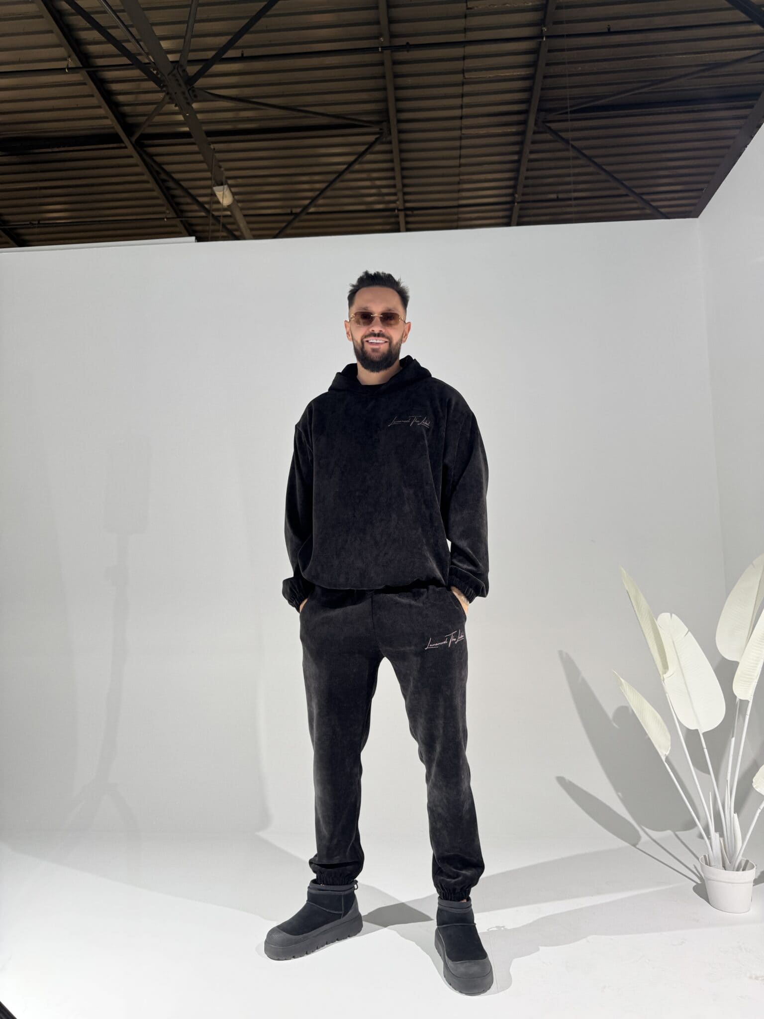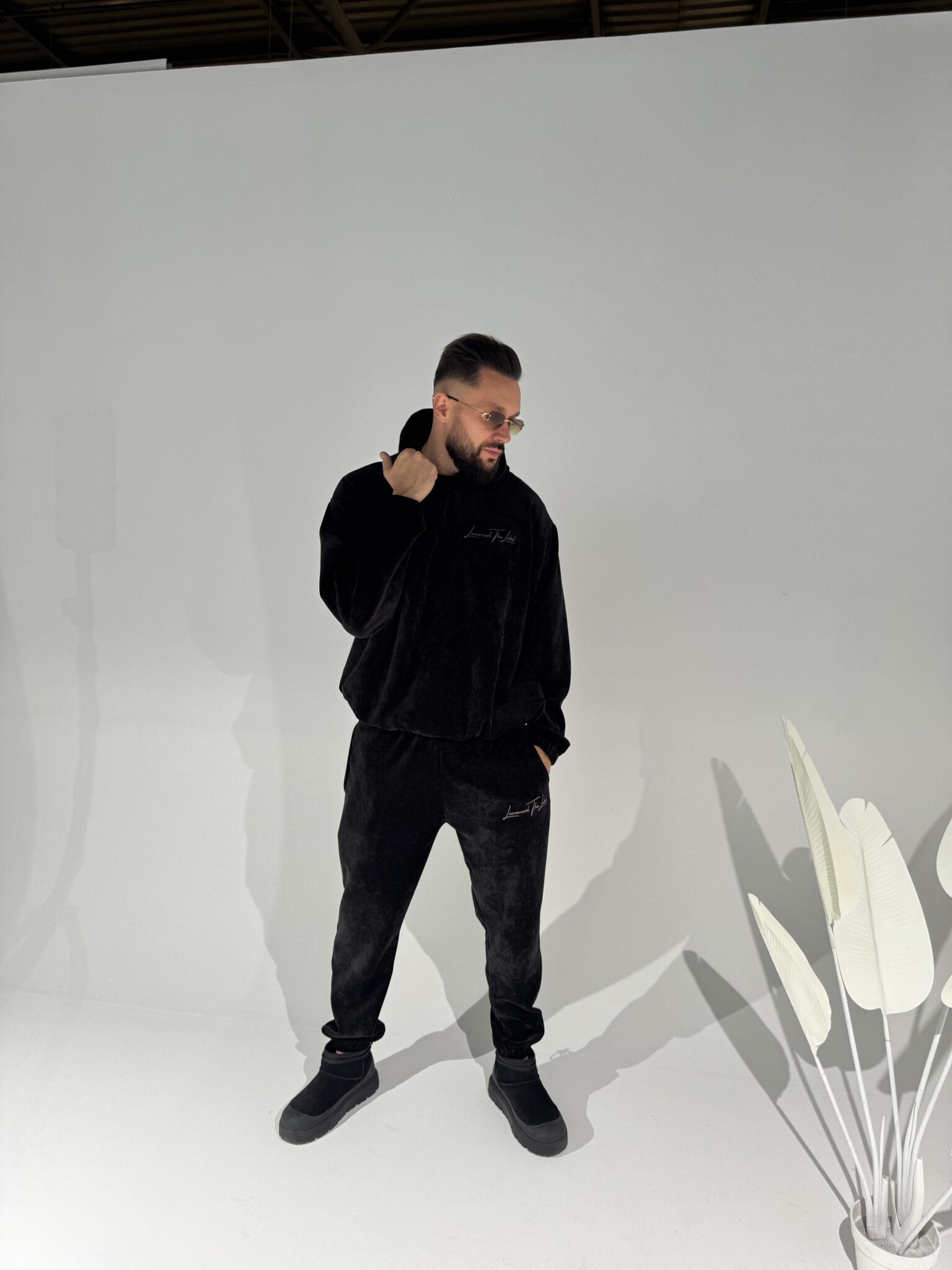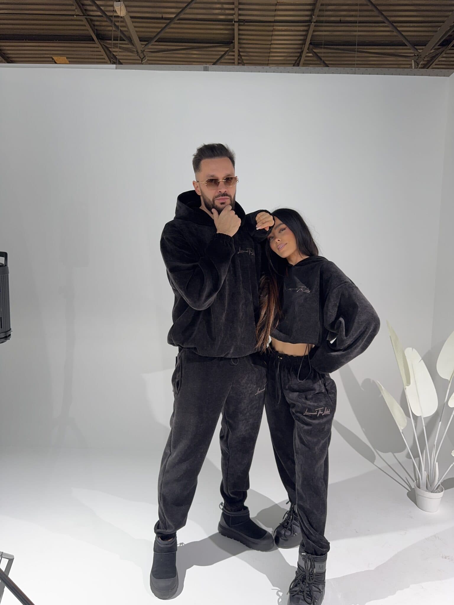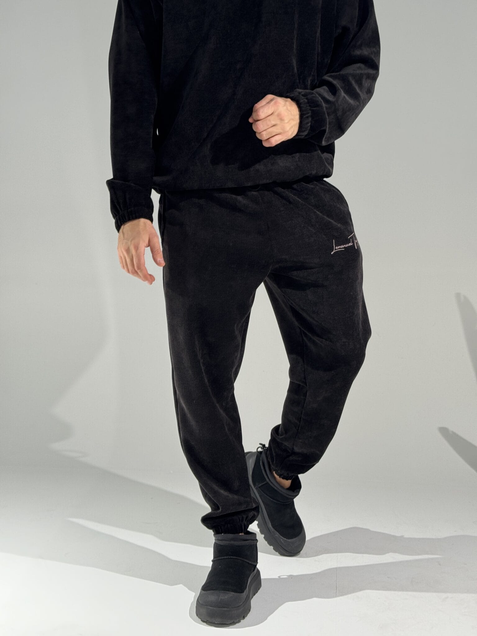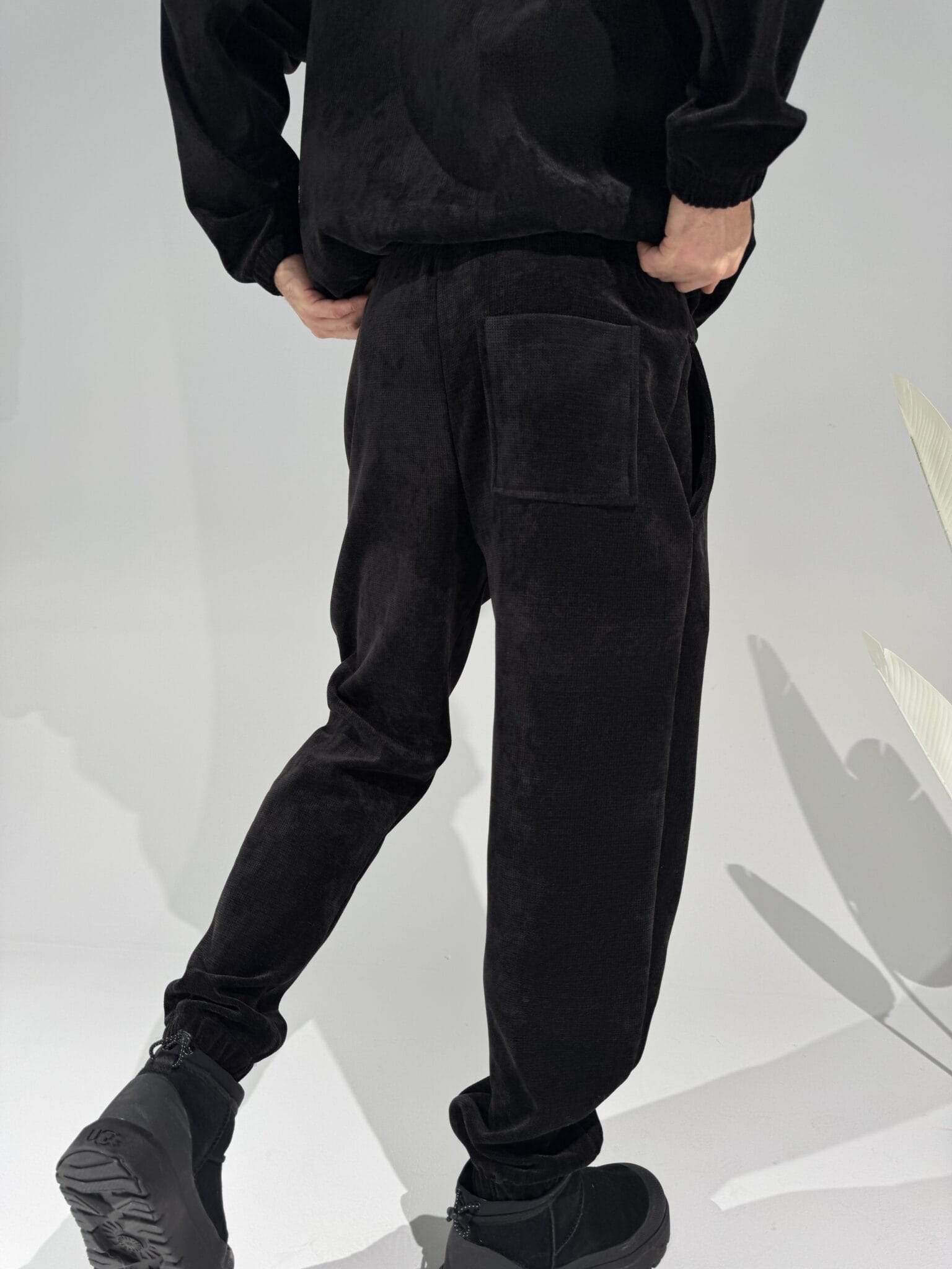 Grubszy, puszysty welur, który sprawia, że nie masz ochoty ich zdejmować. Nogawki ze ściągaczami, wygodna talia z regulacją, luźny fason. To spodnie, które pasują do wszystkiego: do domowego chilloutu, na weekendowy wyjazd, do spacerów po zaśnieżonym deptaku. Wyglądają swobodnie, ale nie byle jak. Po prostu mają klimat.Skład: 95% poliester 5% elastan