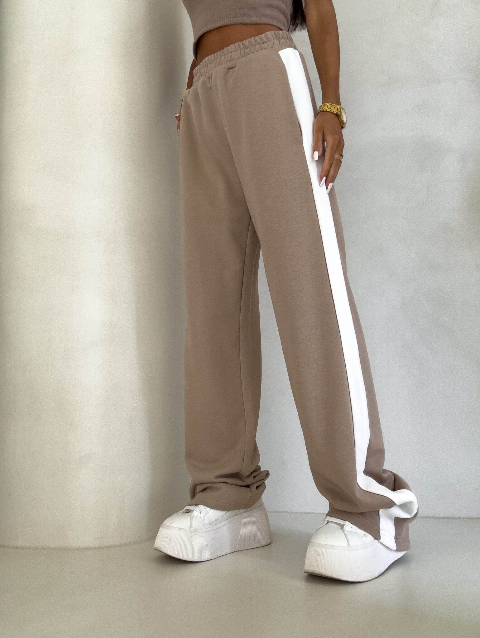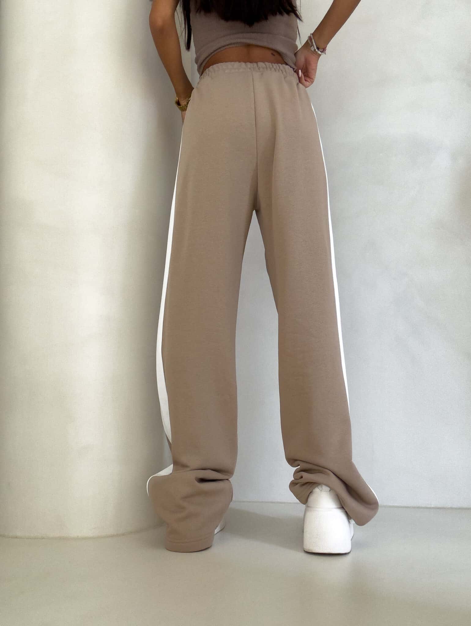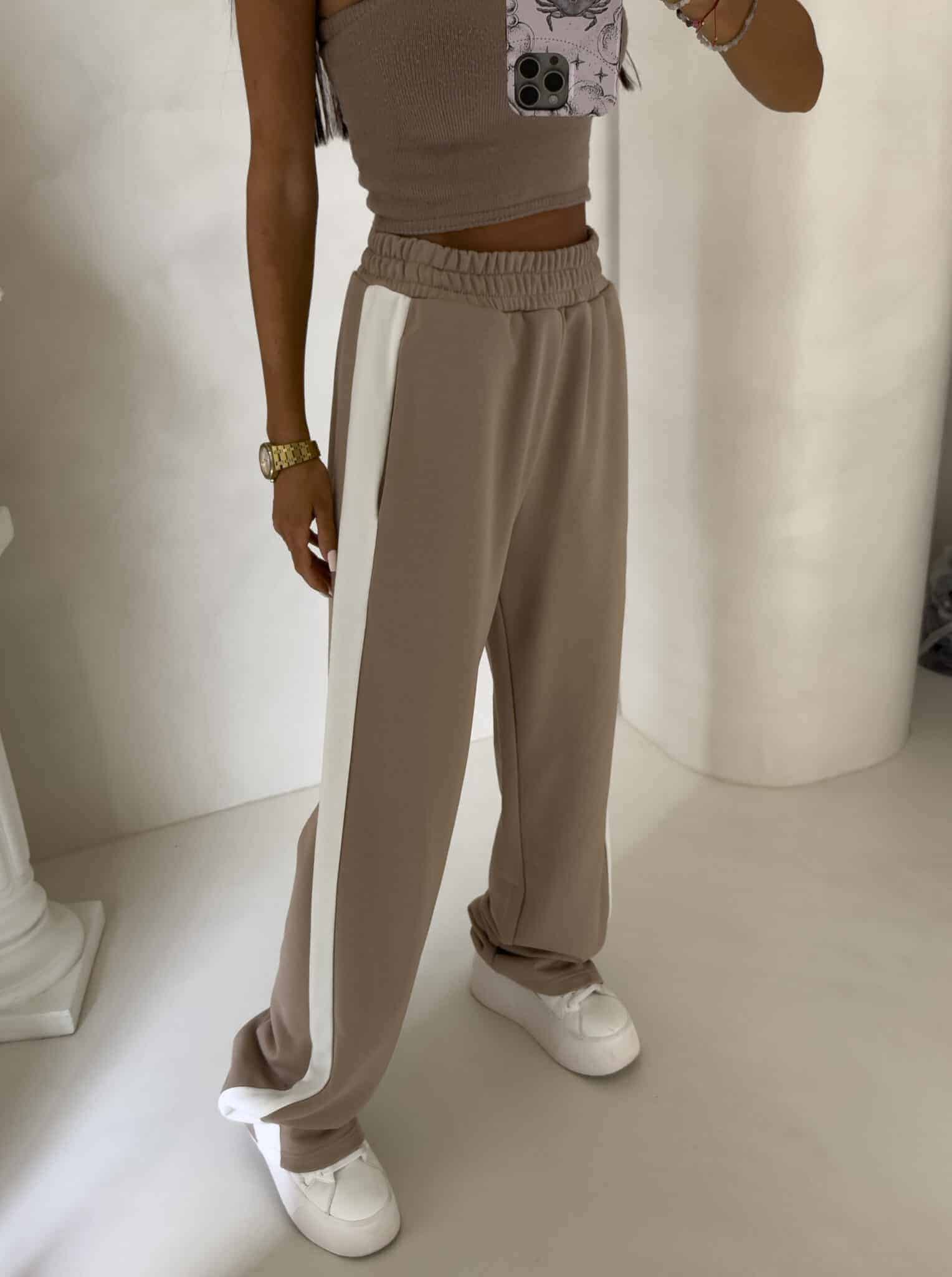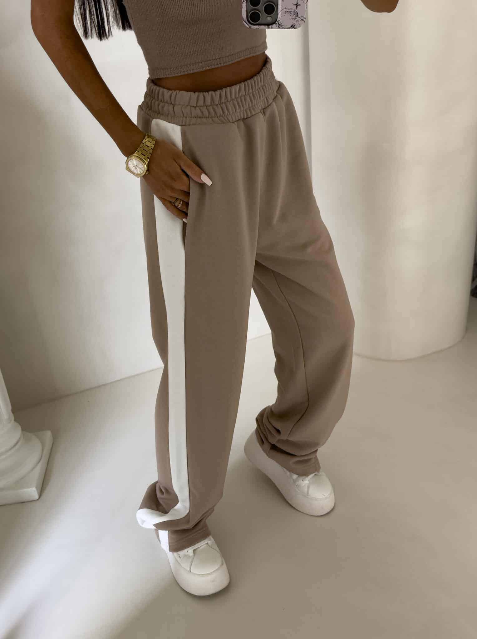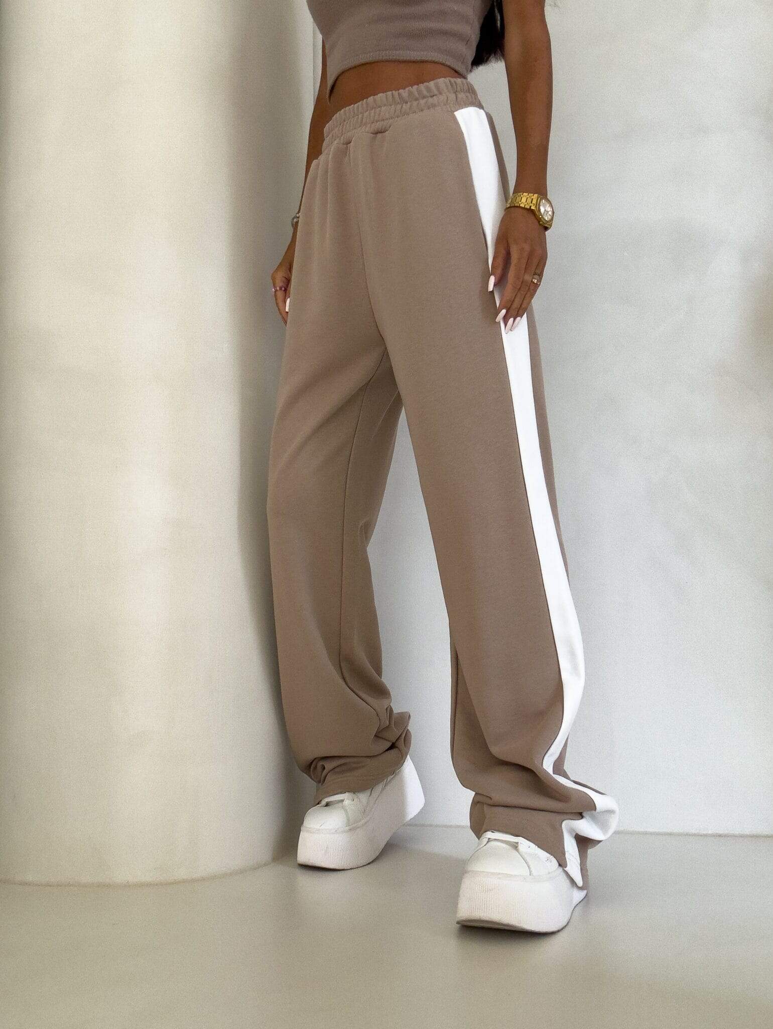 Luźne spodnie dresowe z szerokimi nogawkami to idealne połączenie komfortu i swobodnego stylu. Wykonane z miękkiego materiału, mają prosty krój i szerokie nogawki, które zapewniają maksymalną wygodę i pełną swobodę ruchów. W pasie znajduje się elastyczna gumka, dzięki której spodnie dopasowują się do sylwetki, nie uciskając. Dodatkowym detalem jest lampas biegnący wzdłuż obu zewnętrznych stron nogawek, który nadaje spodniom sportowego, a zarazem nowoczesnego charakteru.
