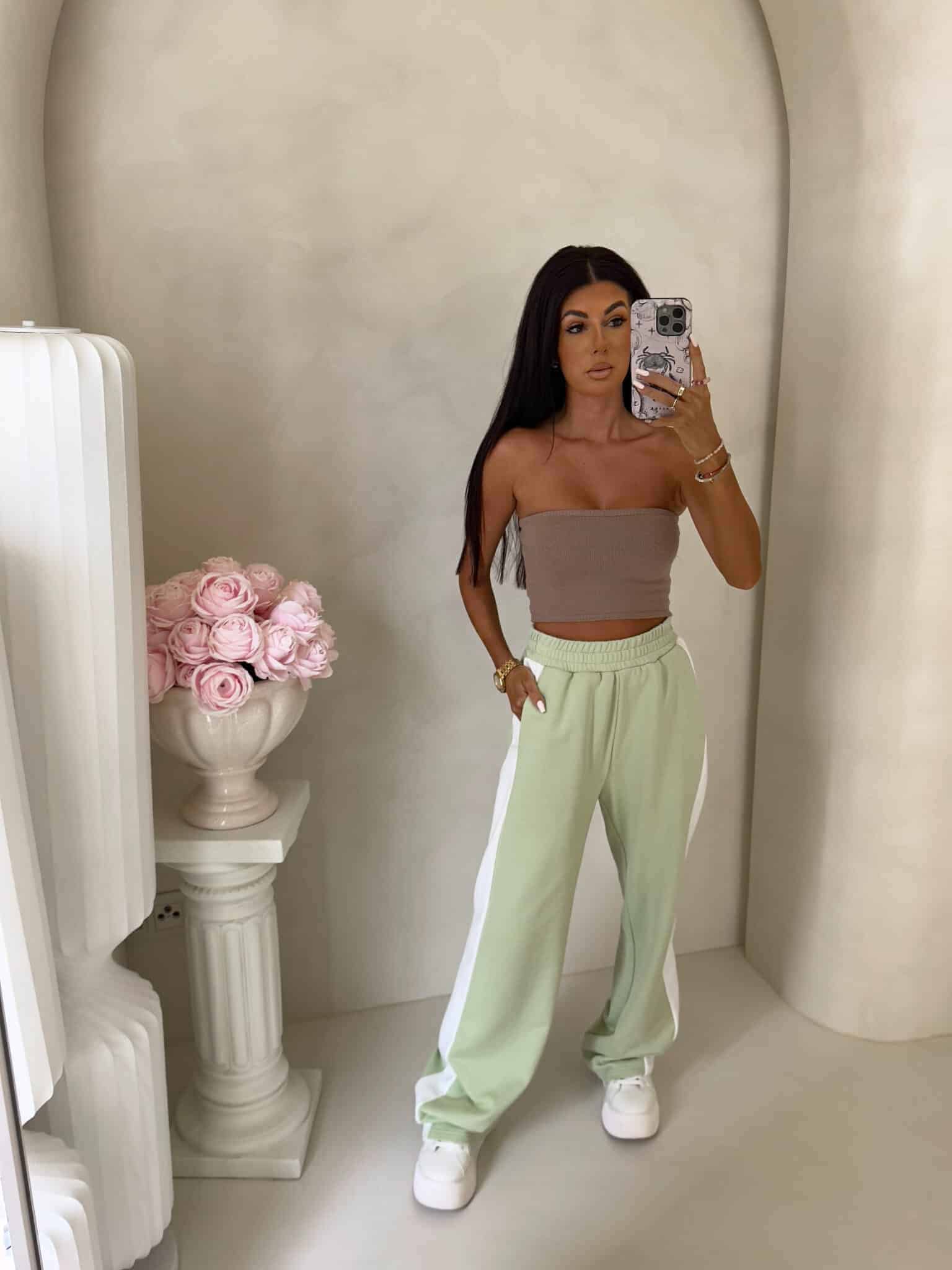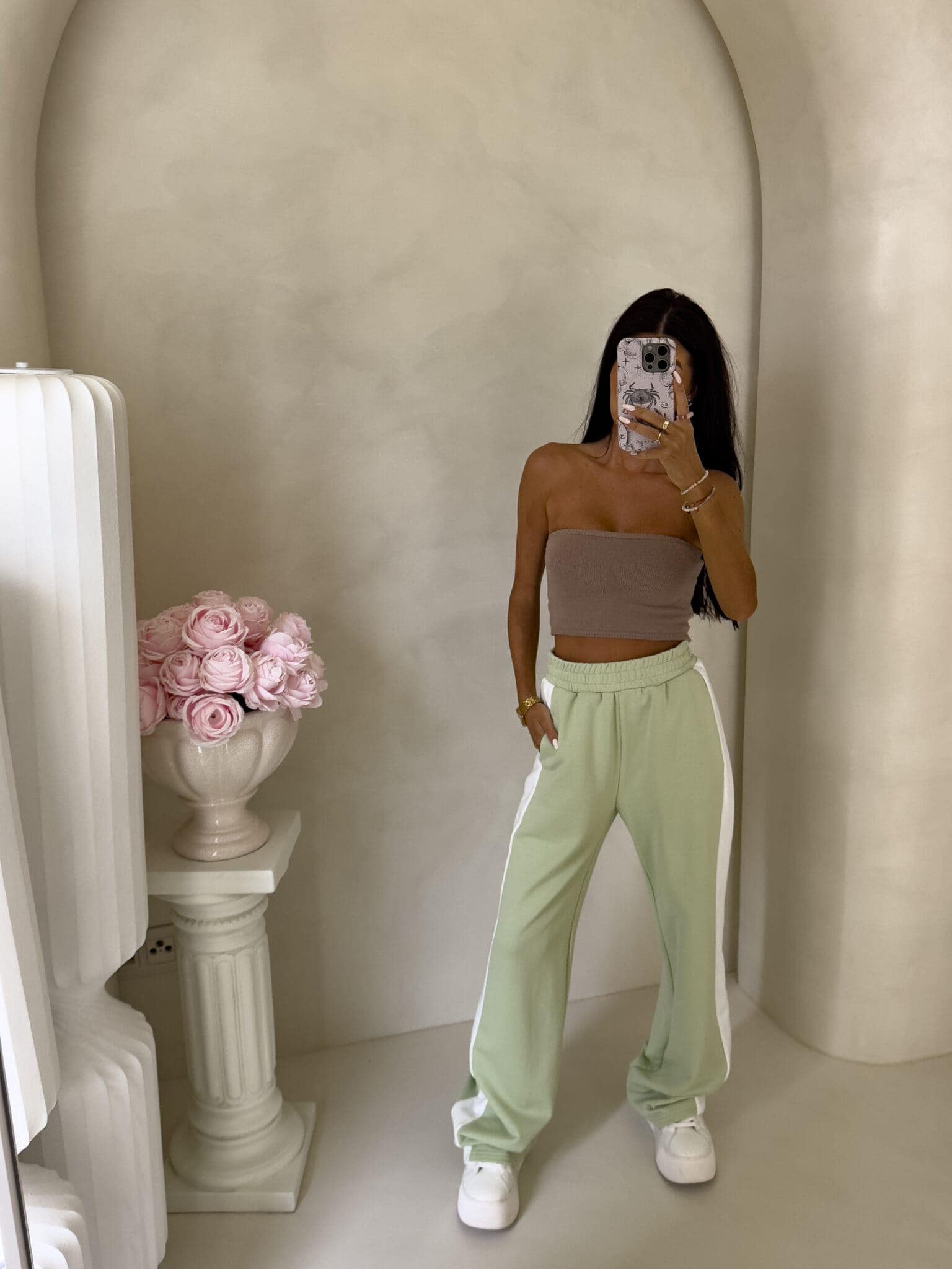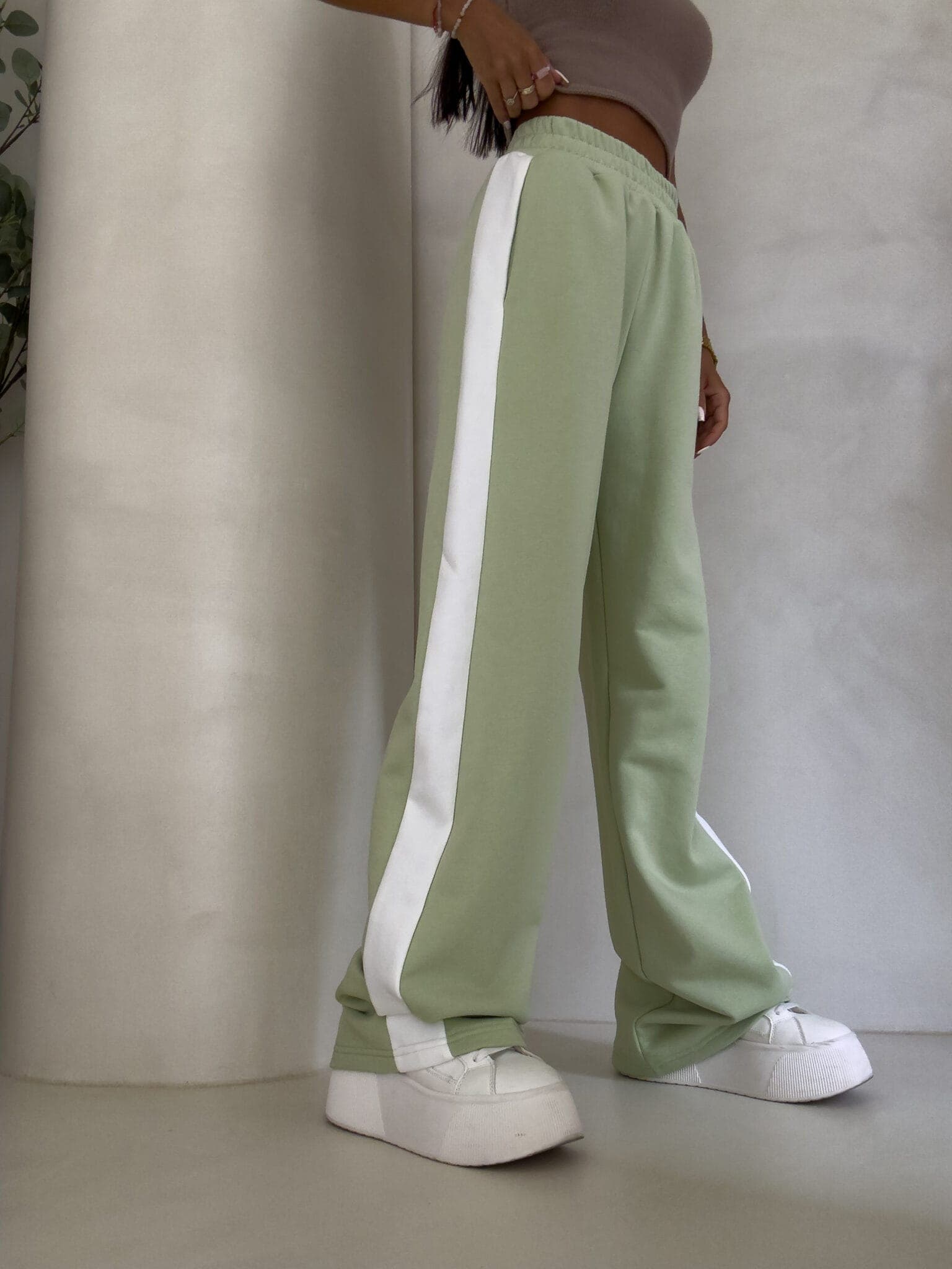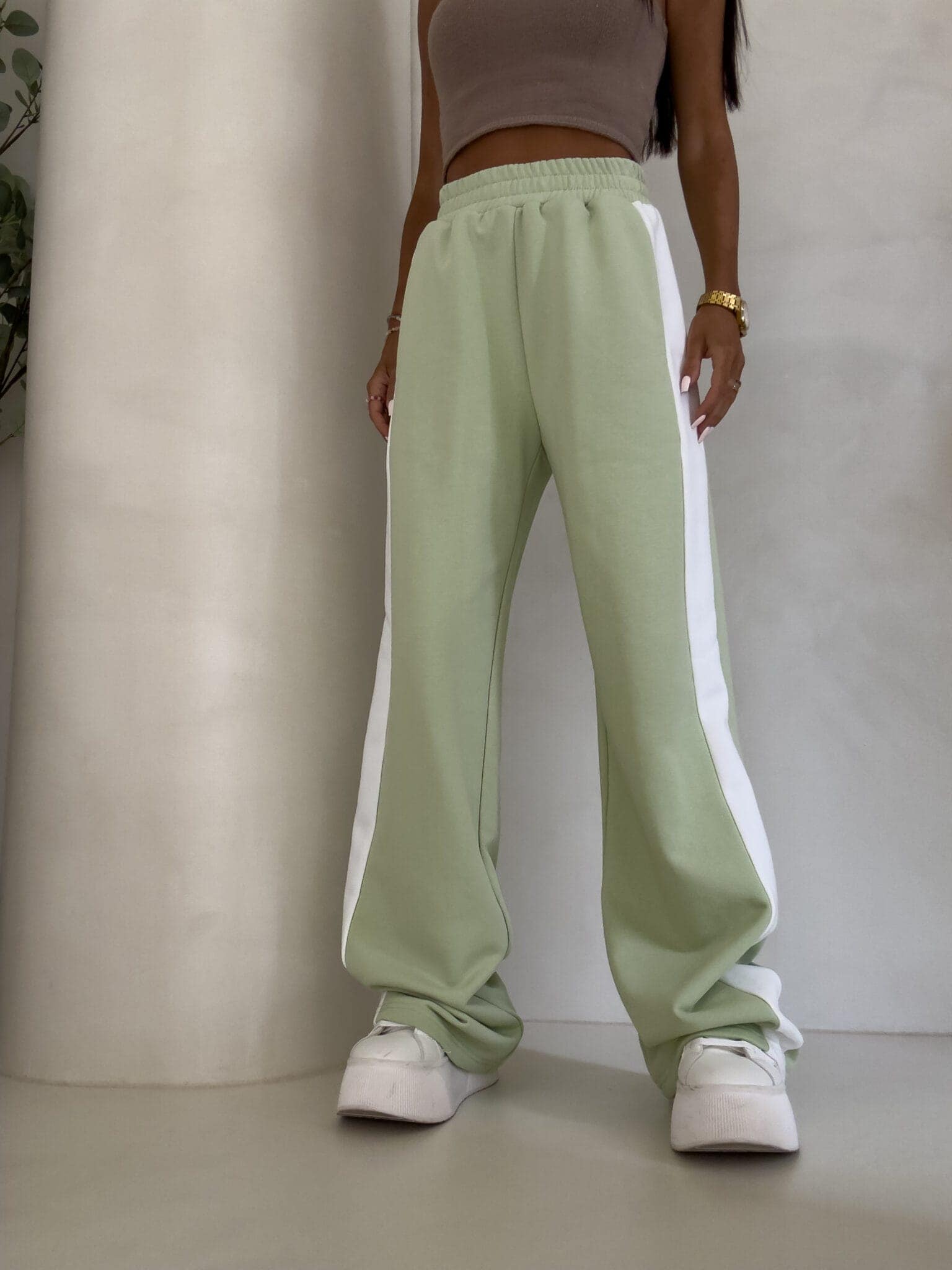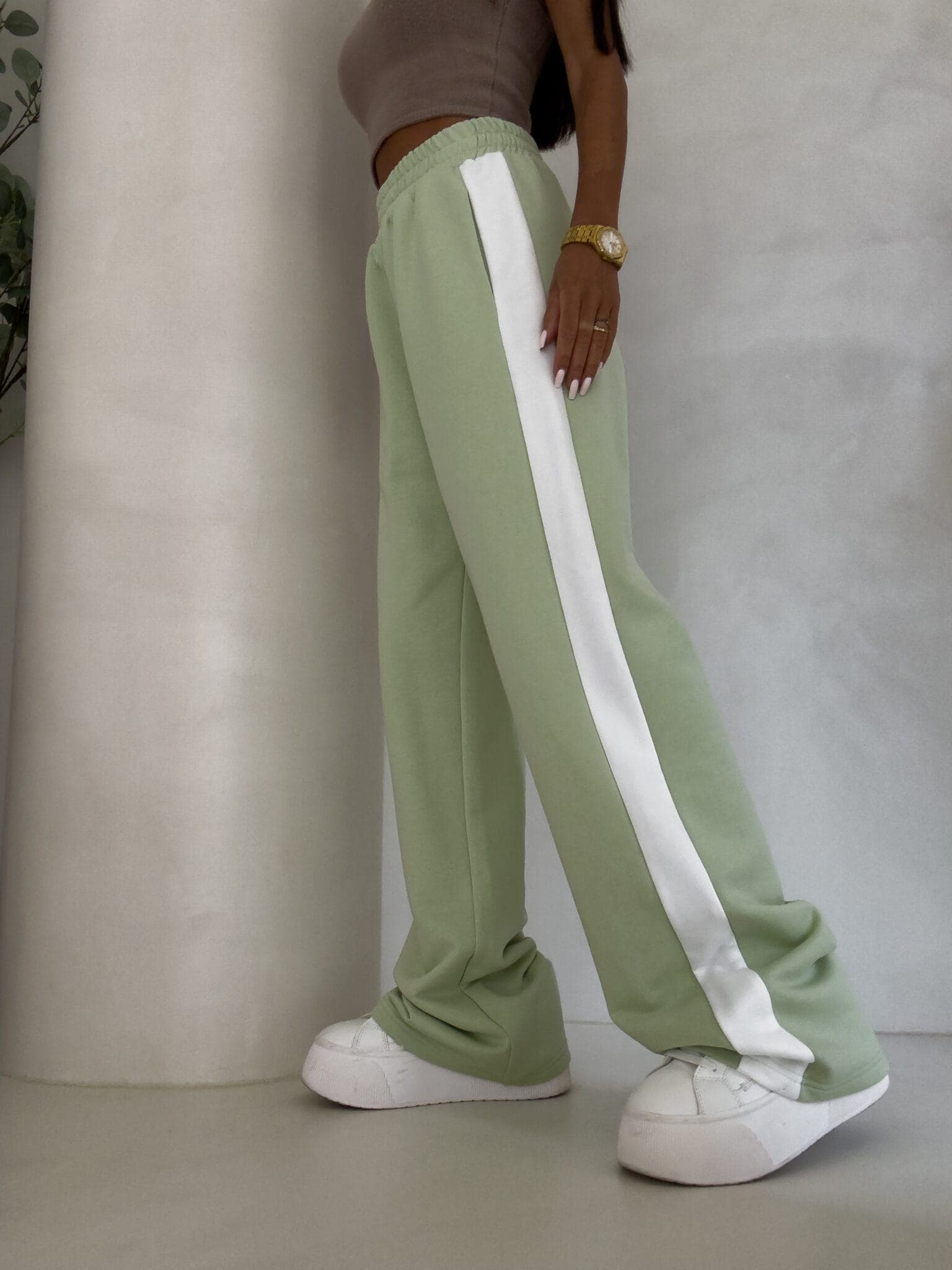 Luźne spodnie dresowe z szerokimi nogawkami to idealne połączenie komfortu i swobodnego stylu. Wykonane z miękkiego materiału, mają prosty krój i szerokie nogawki, które zapewniają maksymalną wygodę i pełną swobodę ruchów. W pasie znajduje się elastyczna gumka, dzięki której spodnie dopasowują się do sylwetki, nie uciskając. Dodatkowym detalem jest lampas biegnący wzdłuż obu zewnętrznych stron nogawek, który nadaje spodniom sportowego, a zarazem nowoczesnego charakteru.