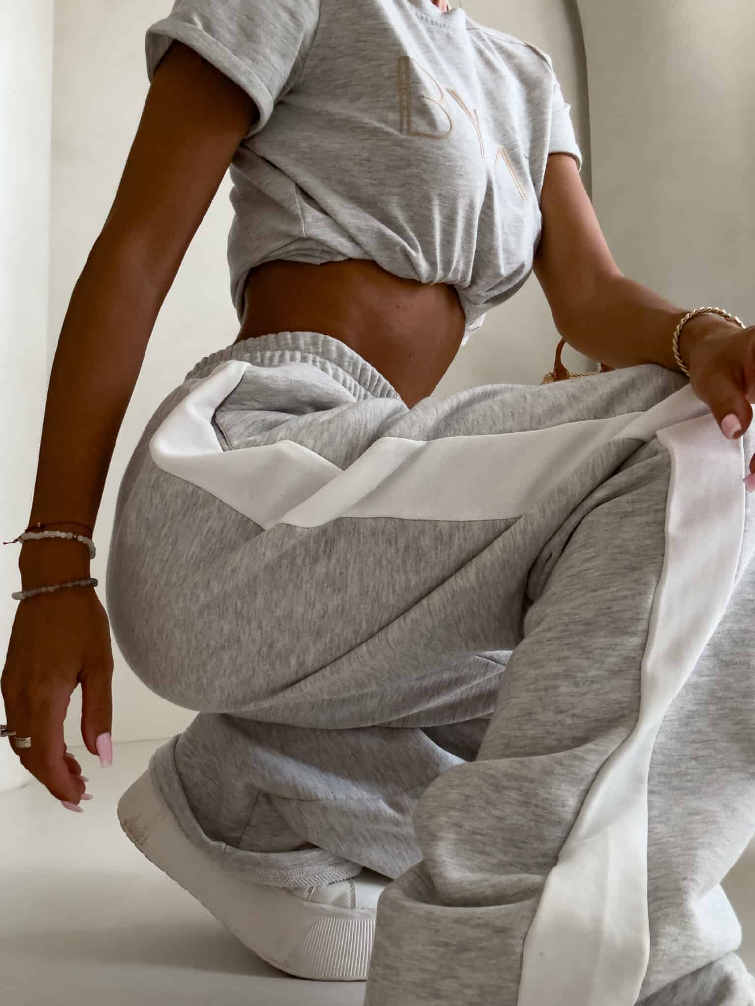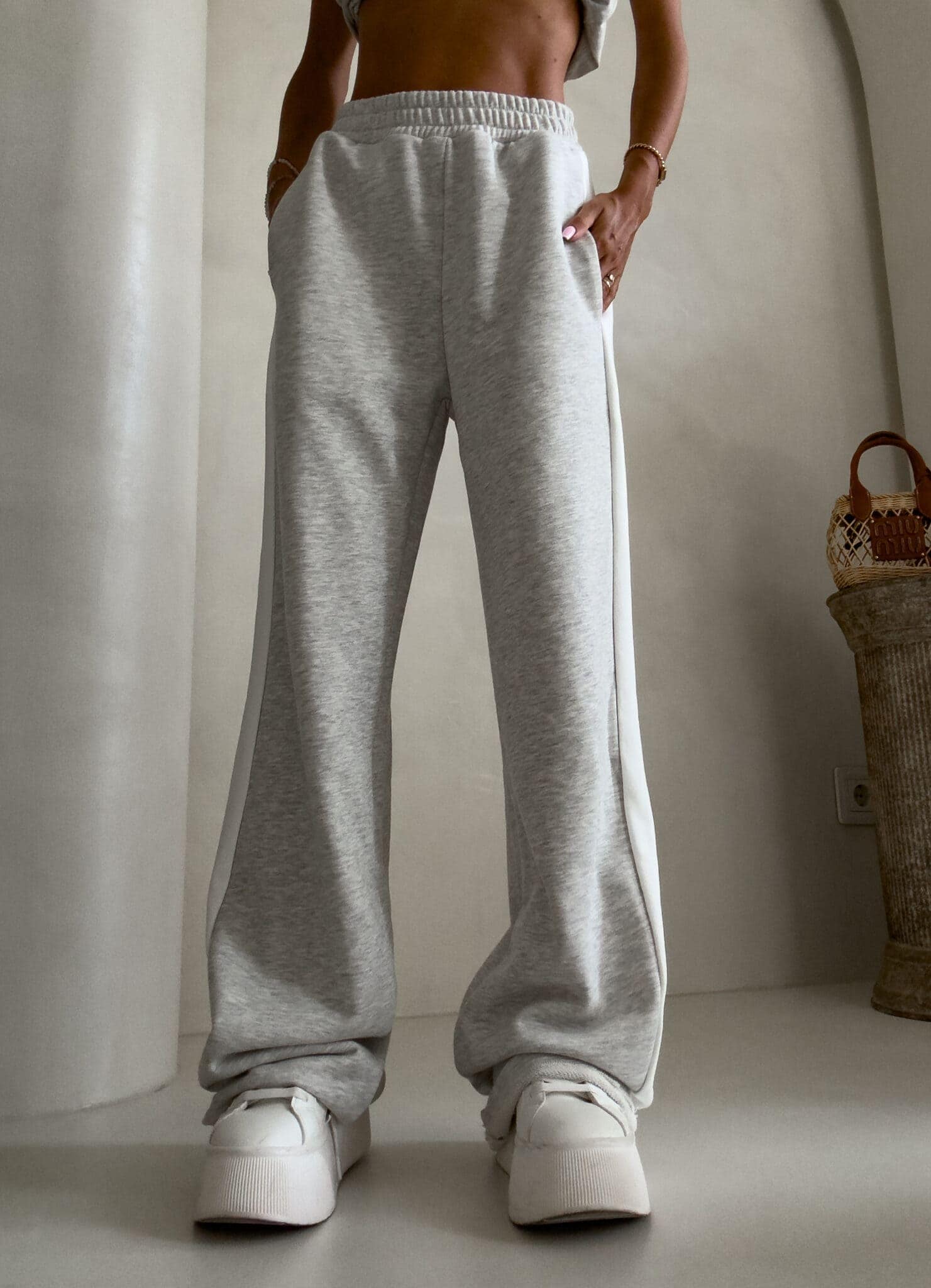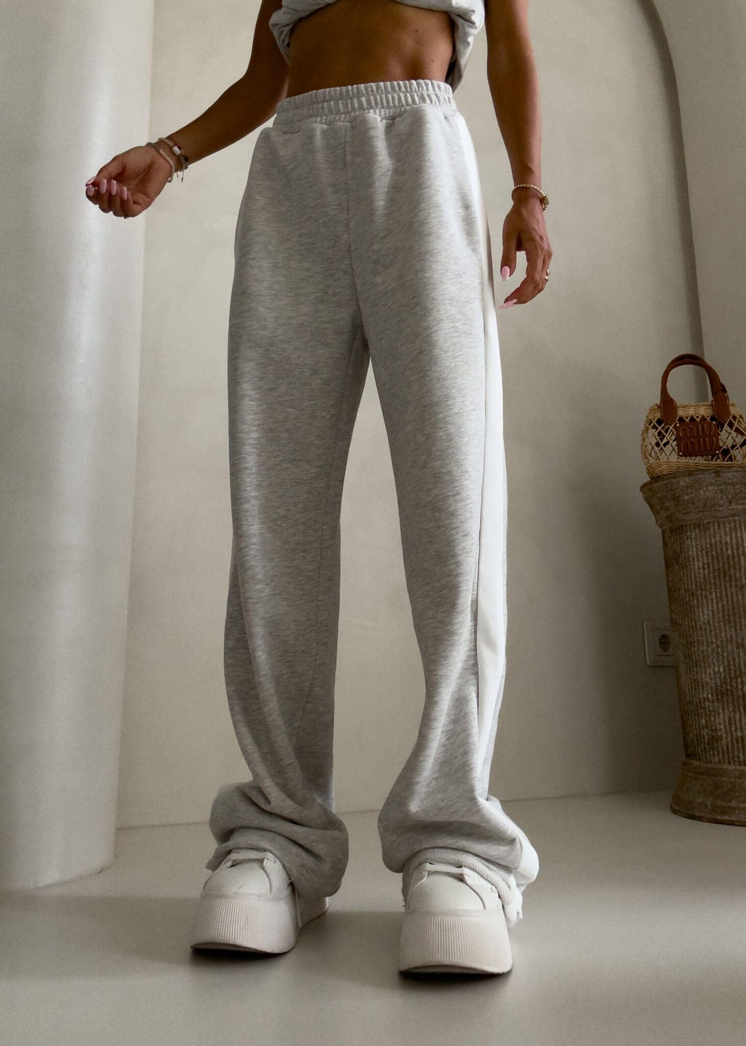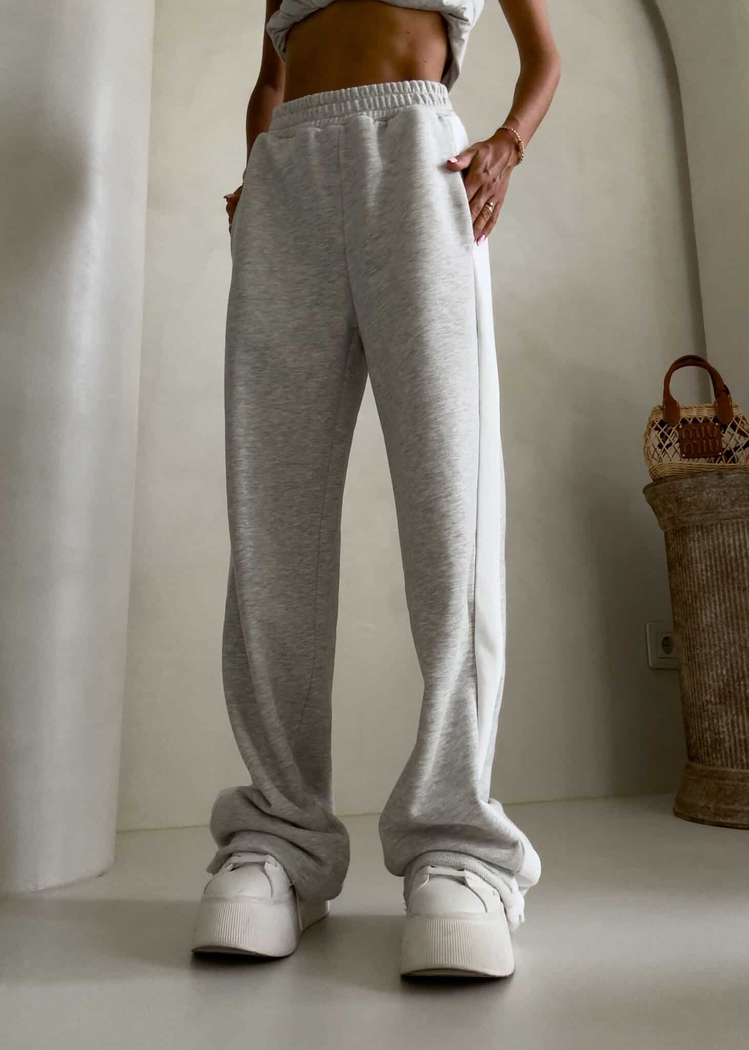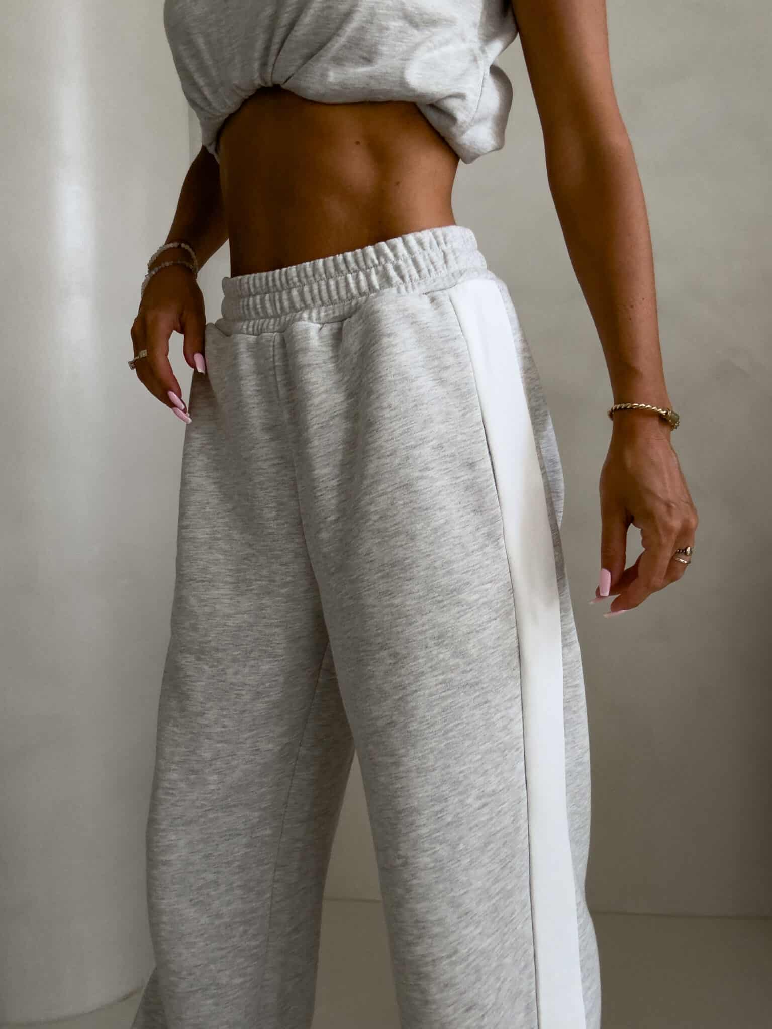 Luźne spodnie dresowe z szerokimi nogawkami to idealne połączenie komfortu i swobodnego stylu. Wykonane z miękkiego materiału, mają prosty krój i szerokie nogawki, które zapewniają maksymalną wygodę i pełną swobodę ruchów. W pasie znajduje się elastyczna gumka, dzięki której spodnie dopasowują się do sylwetki, nie uciskając. Dodatkowym detalem jest lampas biegnący wzdłuż obu zewnętrznych stron nogawek, który nadaje spodniom sportowego, a zarazem nowoczesnego charakteru.