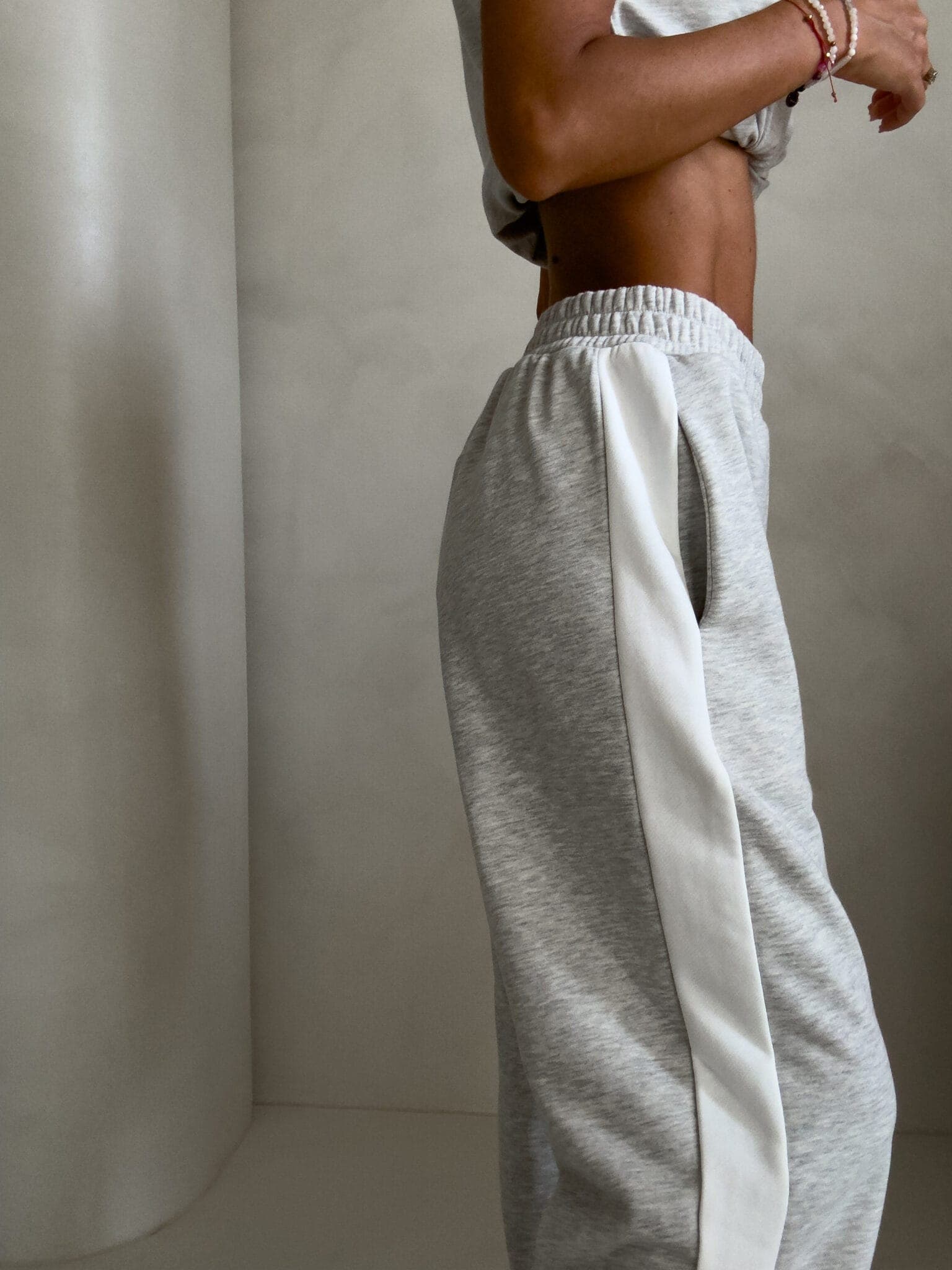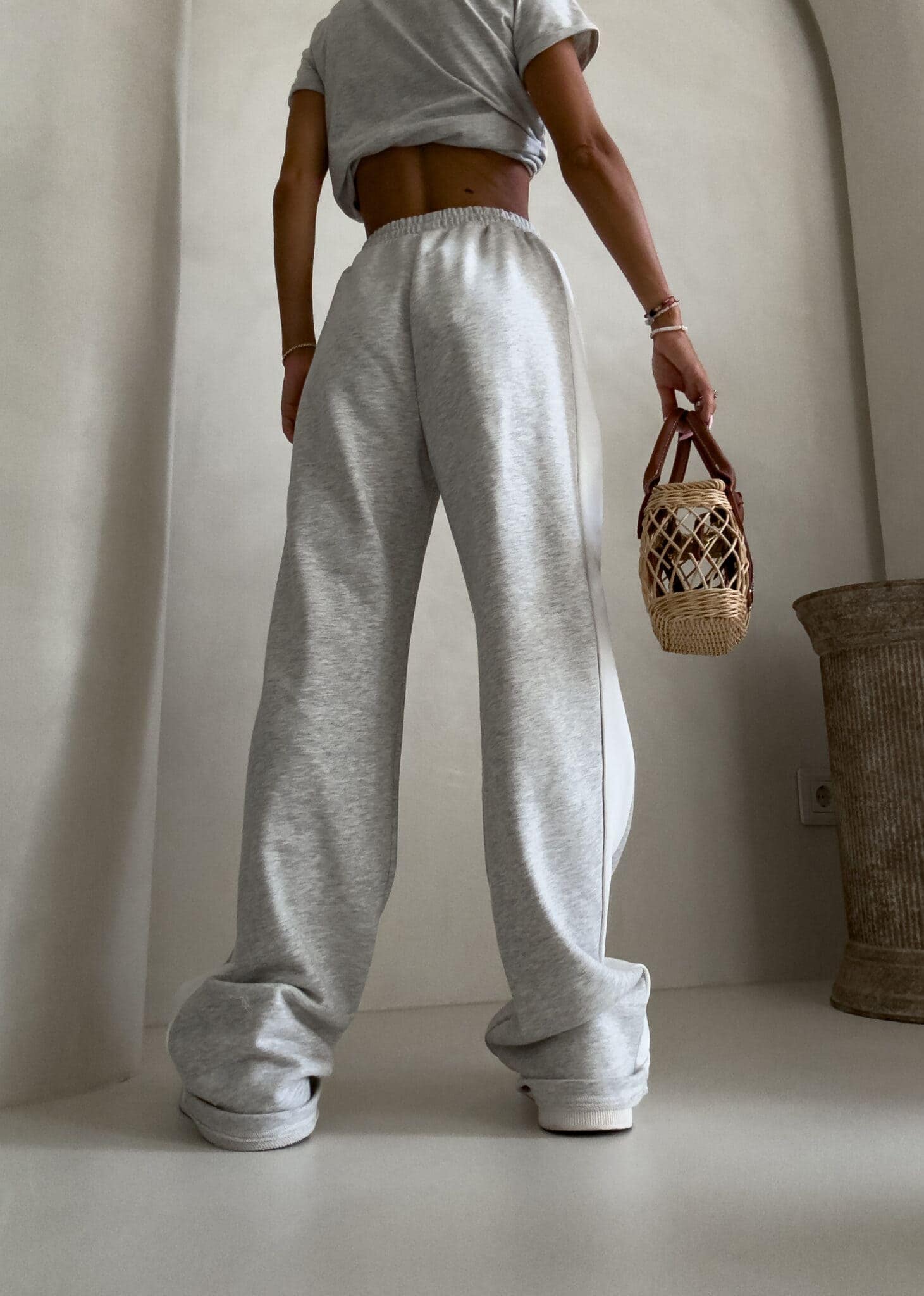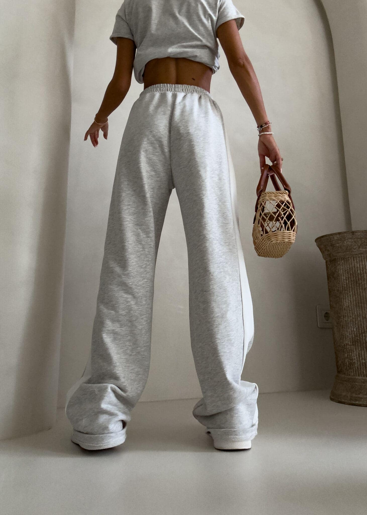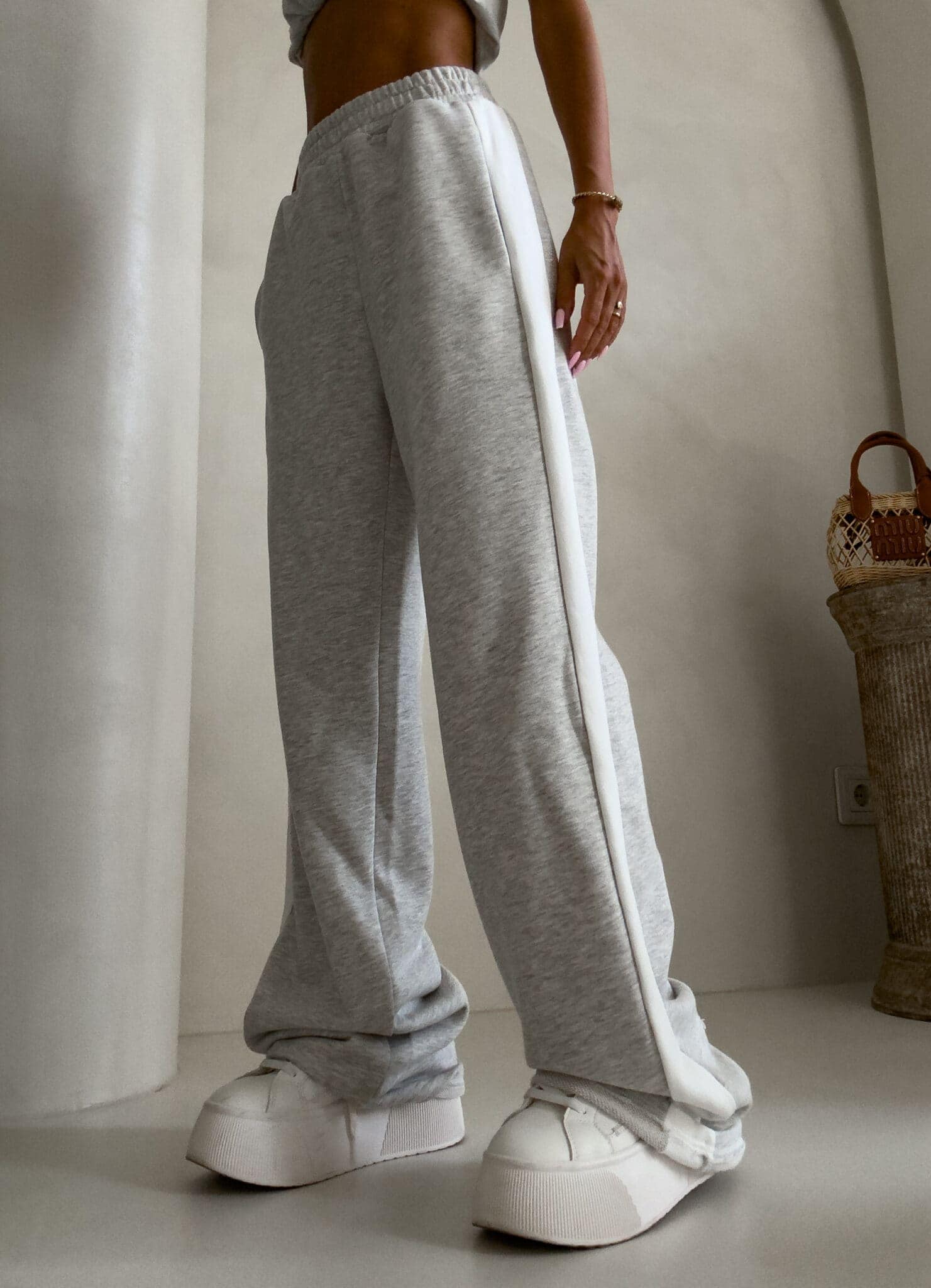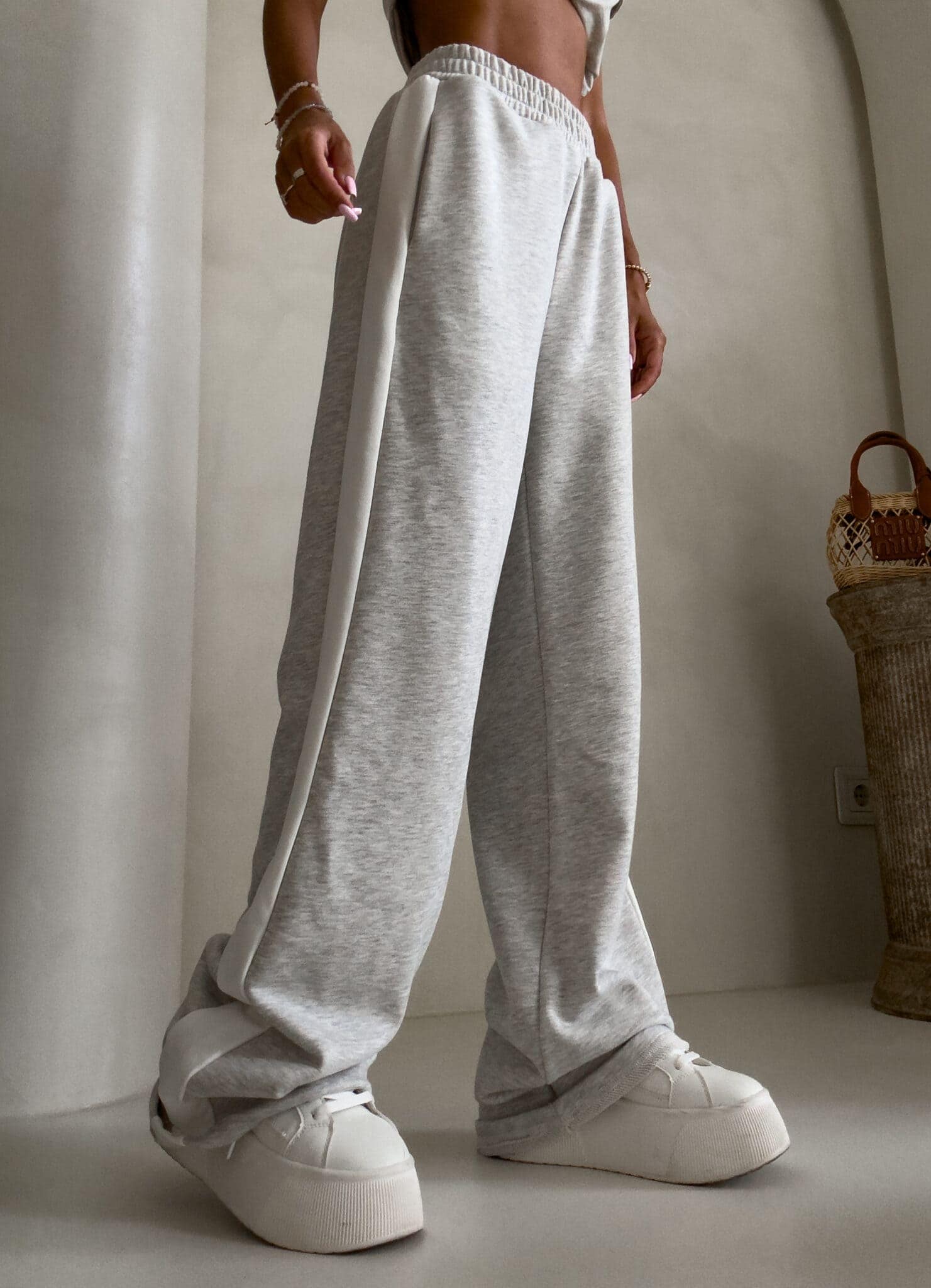 Luźne spodnie dresowe z szerokimi nogawkami to idealne połączenie komfortu i swobodnego stylu. Wykonane z miękkiego materiału, mają prosty krój i szerokie nogawki, które zapewniają maksymalną wygodę i pełną swobodę ruchów. W pasie znajduje się elastyczna gumka, dzięki której spodnie dopasowują się do sylwetki, nie uciskając. Dodatkowym detalem jest lampas biegnący wzdłuż obu zewnętrznych stron nogawek, który nadaje spodniom sportowego, a zarazem nowoczesnego charakteru.
